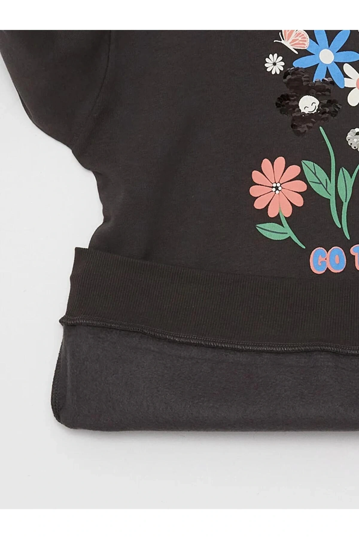 LCW Kids Bisiklet Yaka Baskılı Uzun Kollu Kız Çocuk Sweatshirt