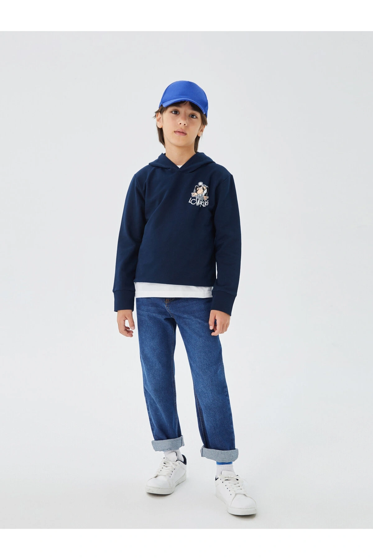 Nostaljik Maymun Baskılı Uzun Kollu Erkek Çocuk Hoodie
