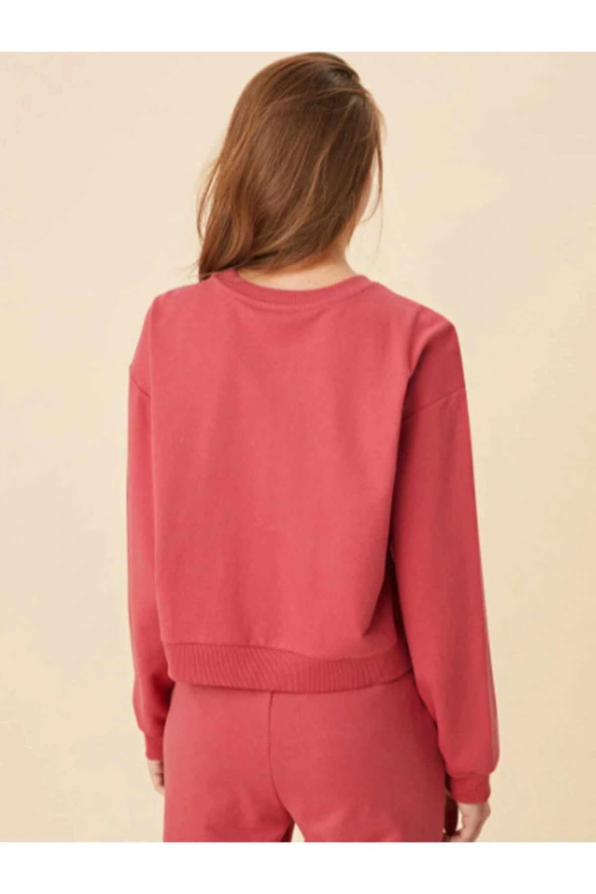 Bisiklet Yaka Baskılı Uzun Kollu Kadın Sweatshirt