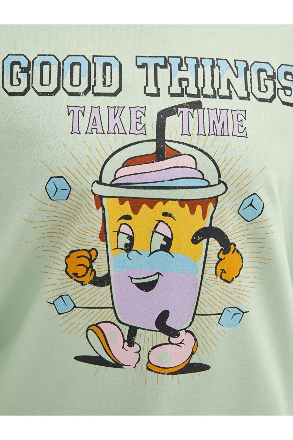 LCW Vision Yeşil Kapüşonlu Baskılı Uzun Kollu Kadın Sweatshirt