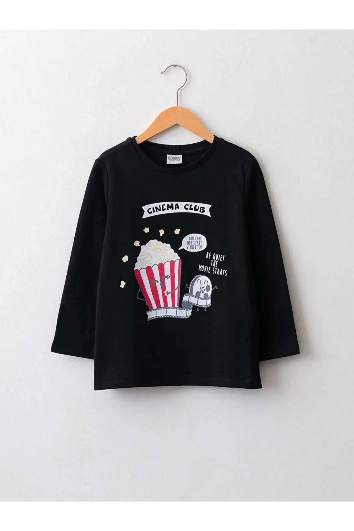 LCW Kids Siyah Bisiklet Yaka Baskılı Uzun Kollu Erkek Çocuk Sweatshirt