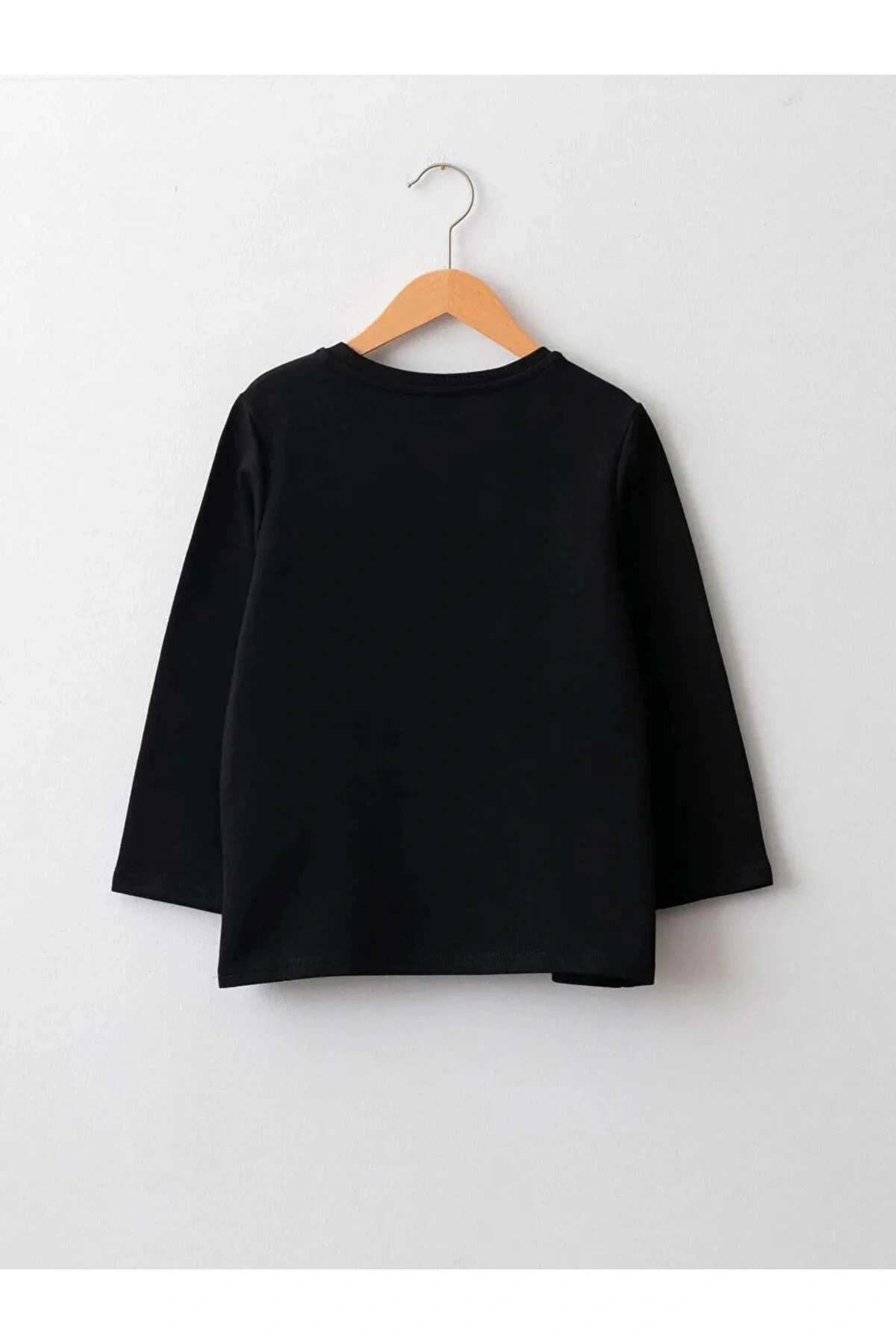LCW ECO Siyah Bisiklet Yaka Baskılı Uzun Kollu Kız Çocuk Tişört