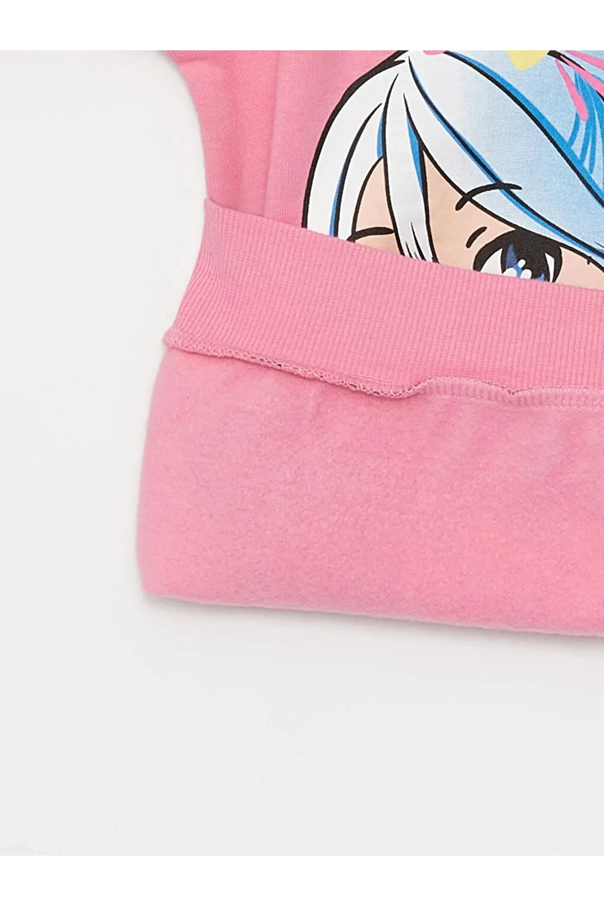 LCW Kids Pembe Bisiklet Yaka Baskılı Uzun Kollu Kız Çocuk Sweatshirt