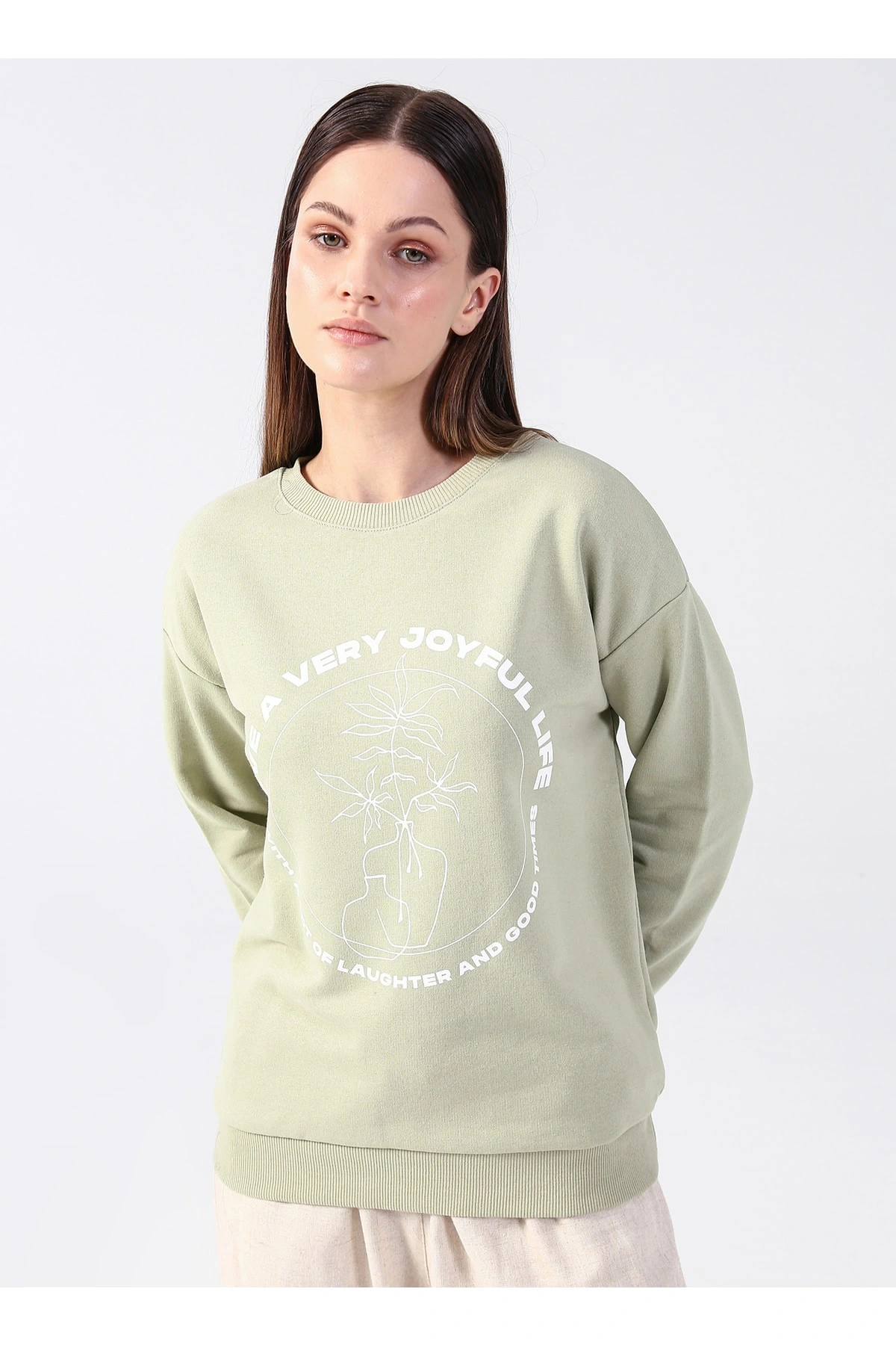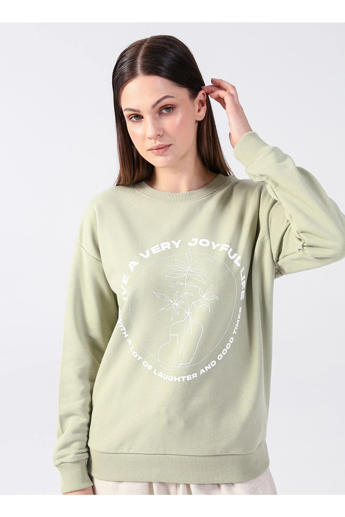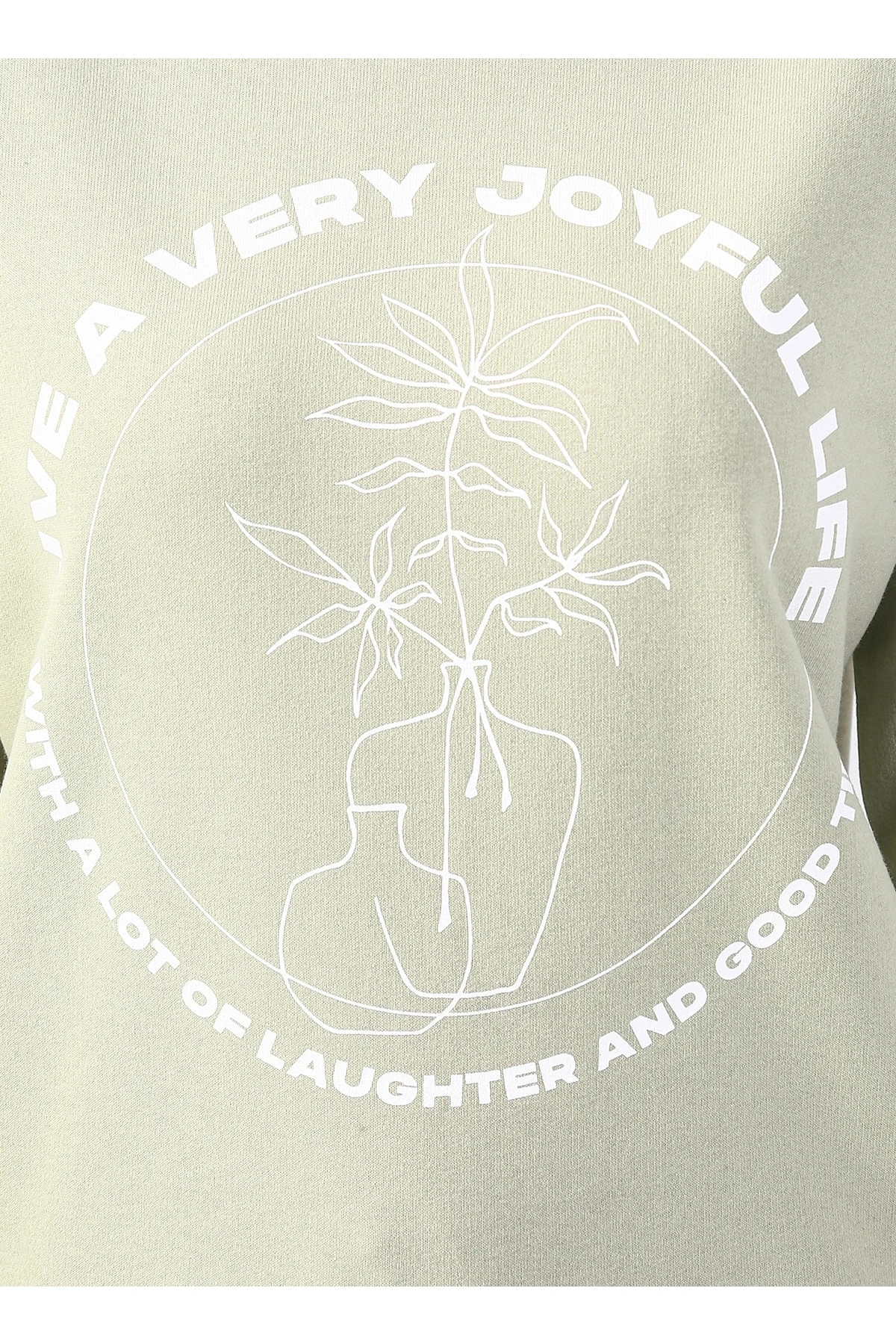 Bisiklet Yaka Baskılı Çağla Kadın Sweatshırt 22k0572k1
