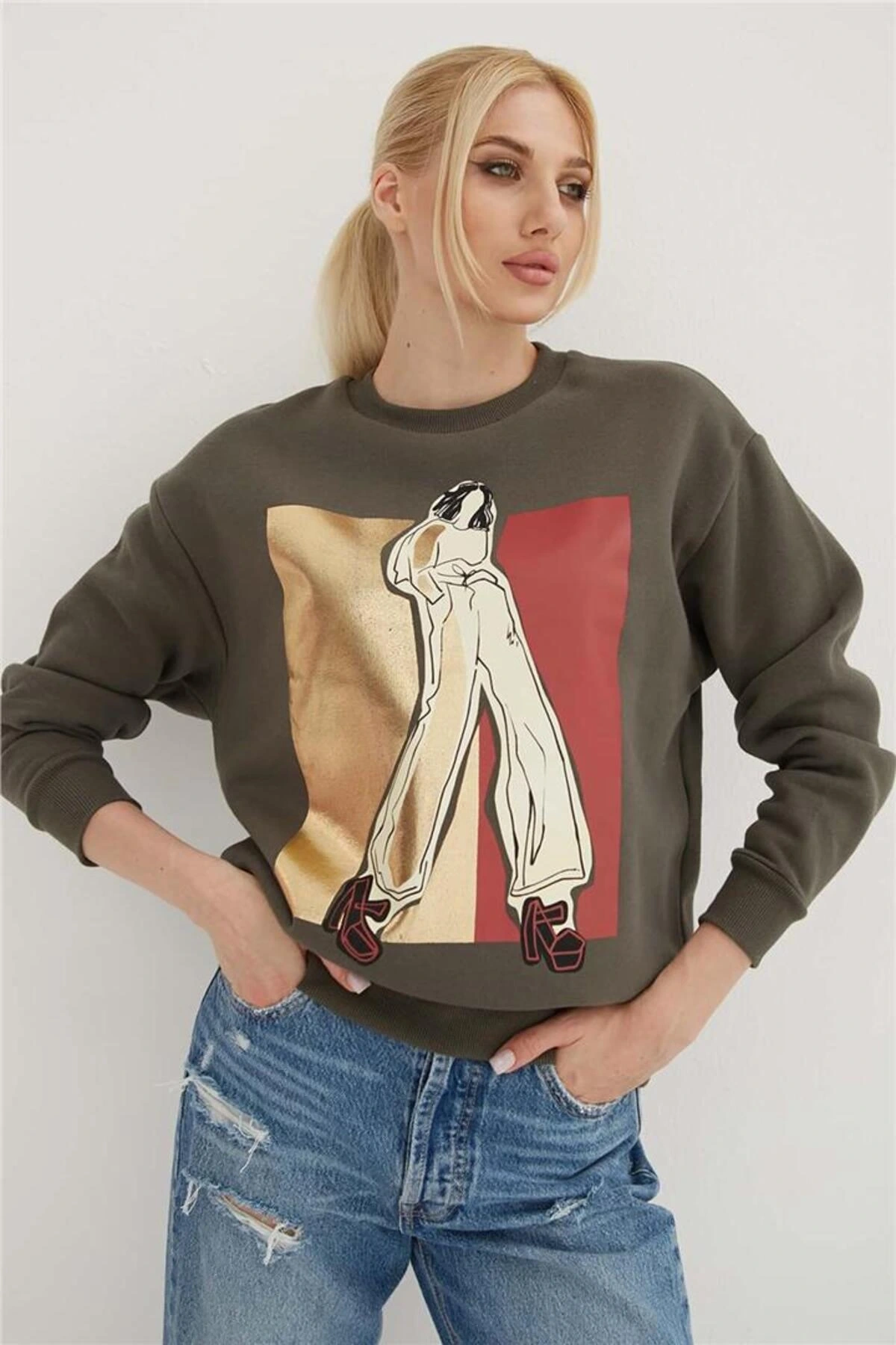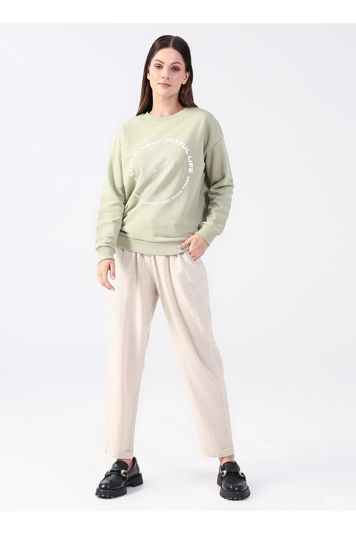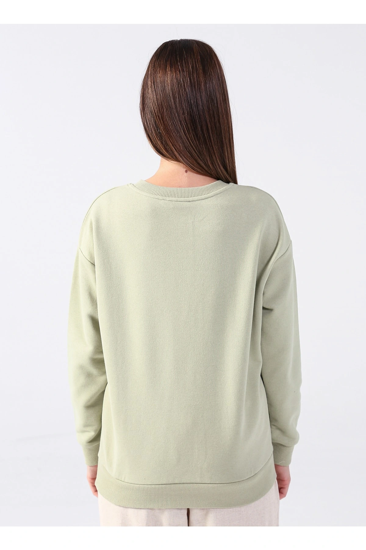 Bisiklet Yaka Baskılı Çağla Kadın Sweatshırt 22k0572k1