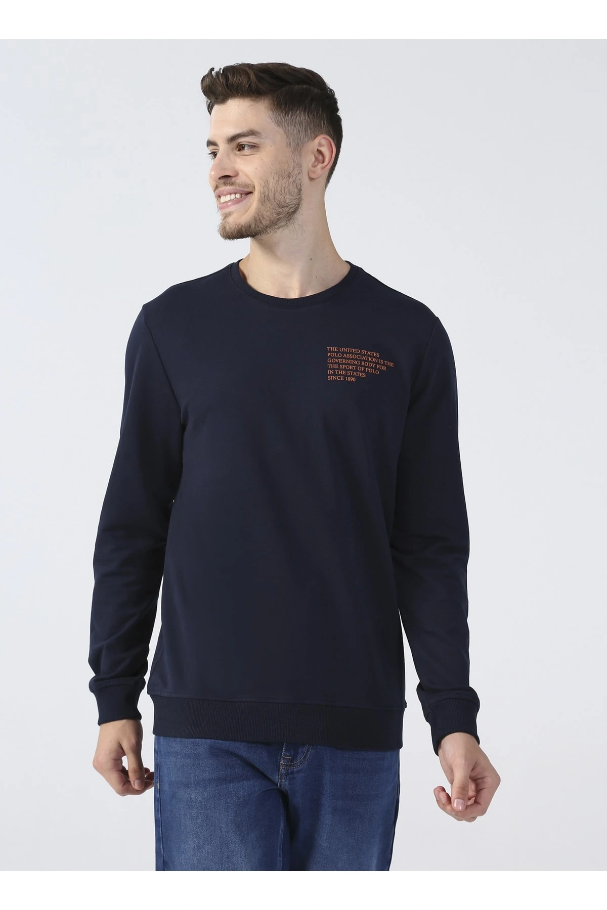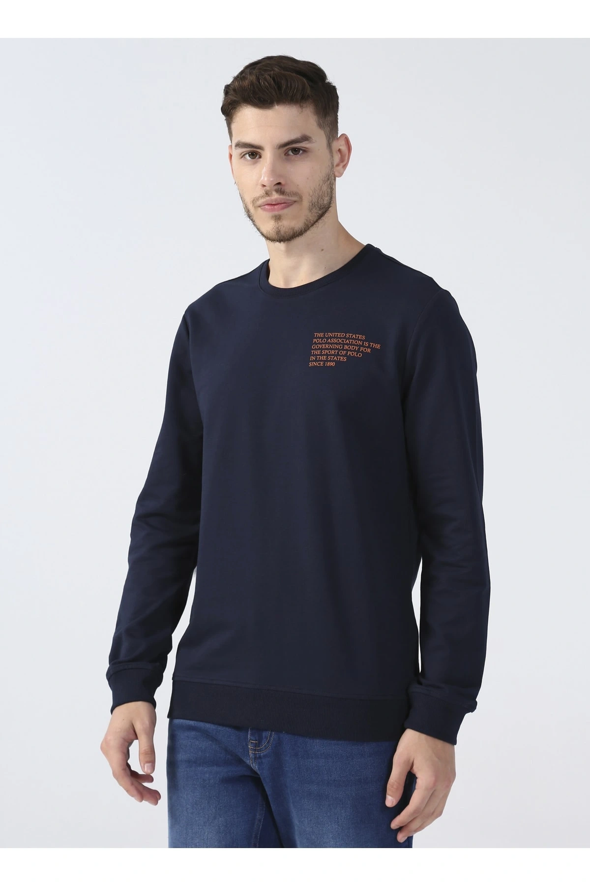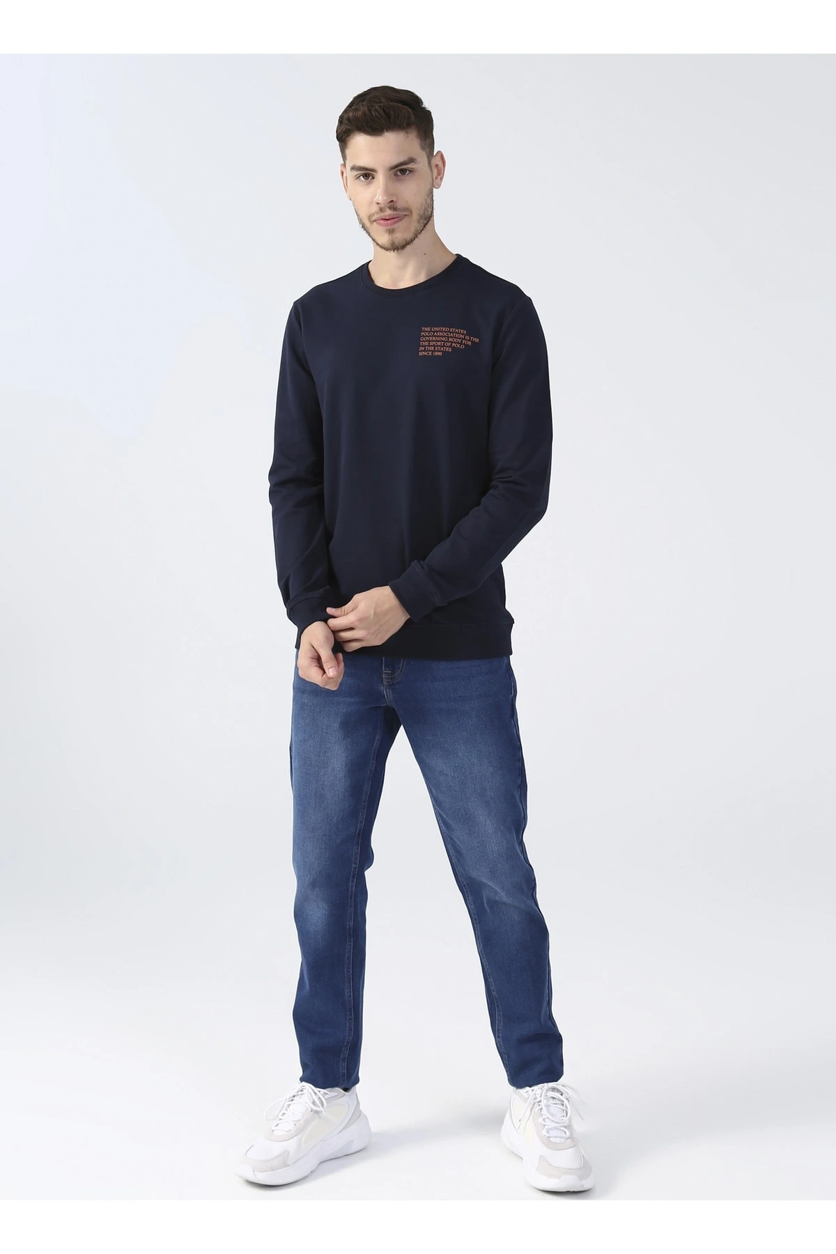 Bisiklet Yaka Lacivert Erkek Sweatshırt Gambı