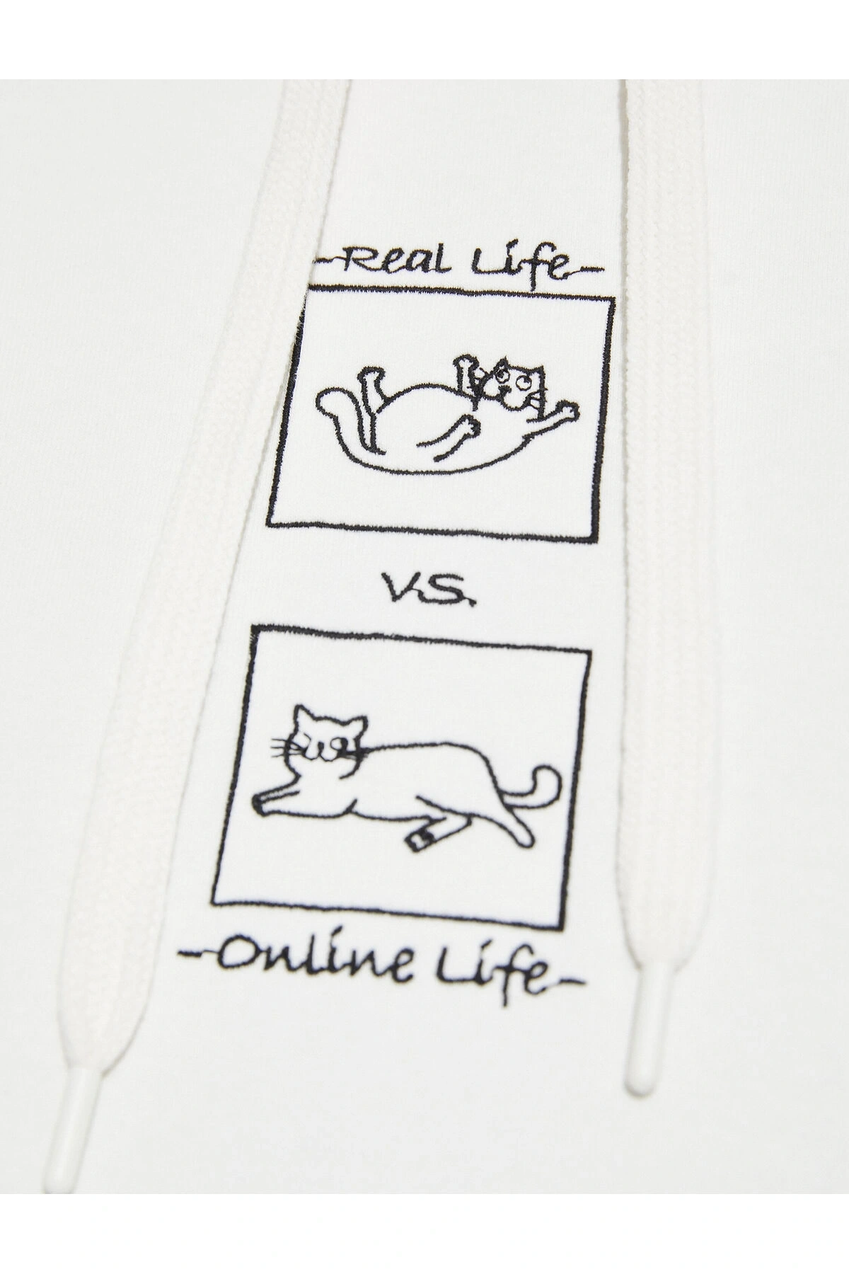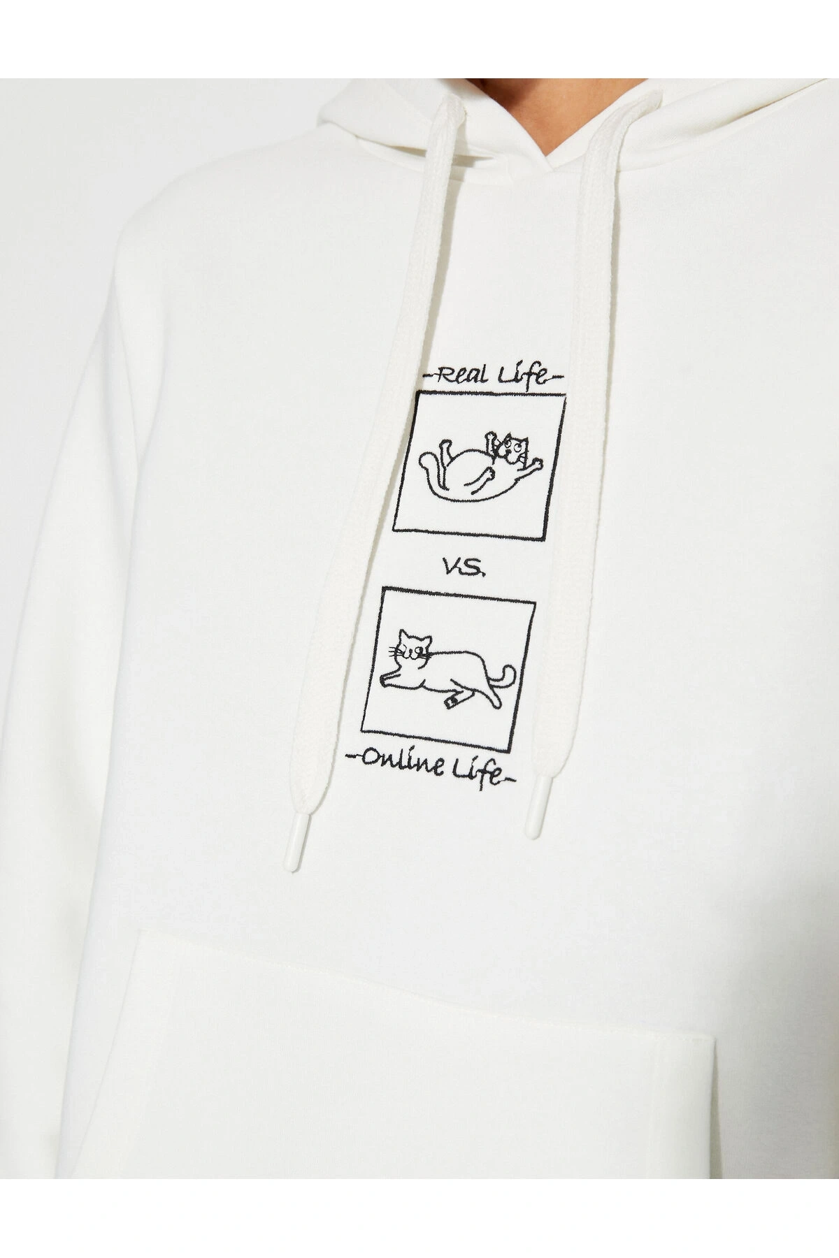 Kapüşonlu Sweatshirt Nakışlı Kanguru Cepli Uzun Kollu
