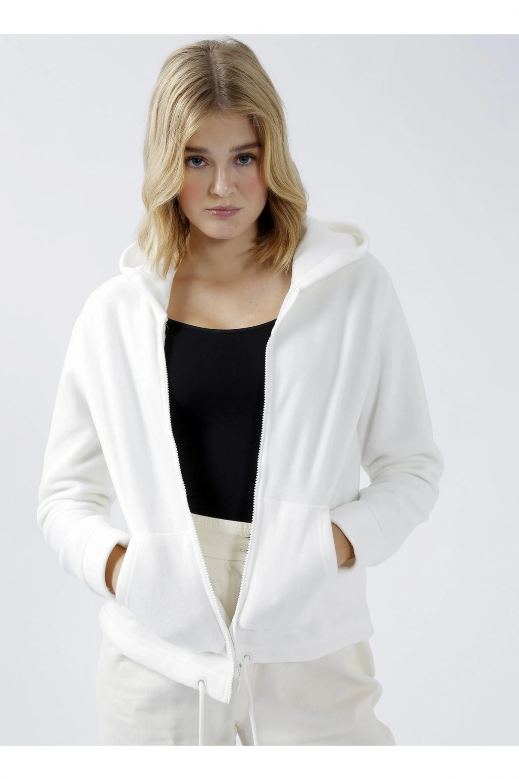 Siyah Kadın Koşu Fermuarlı Kapüşonlu Sweatshirt 22b-2001