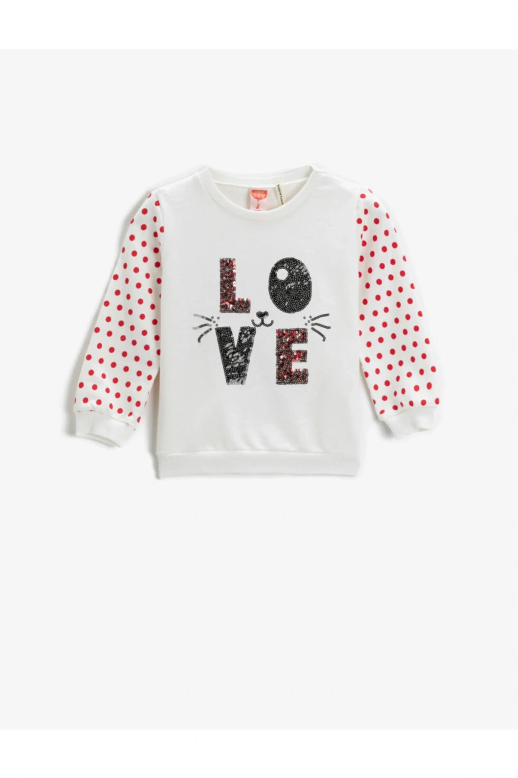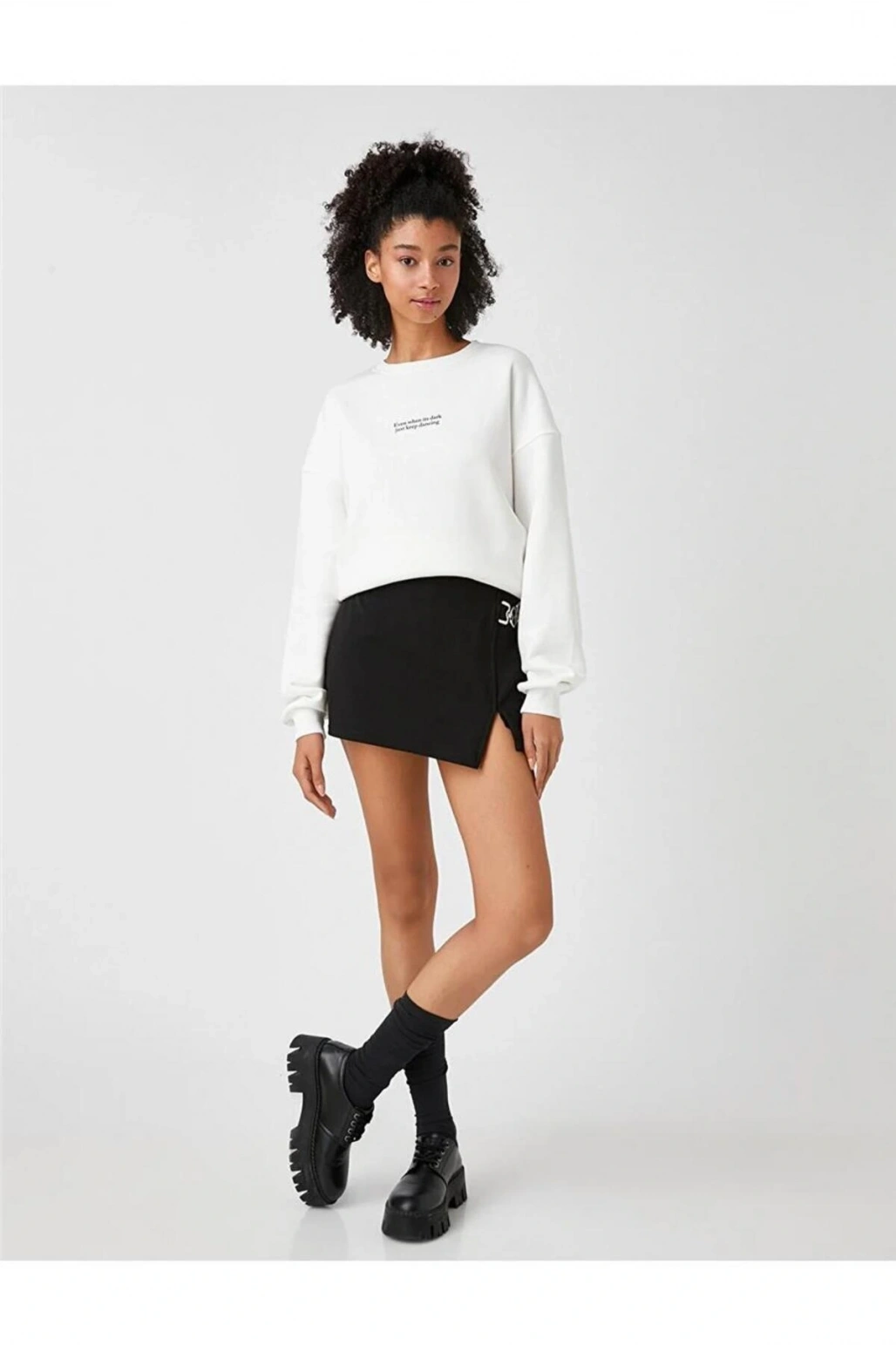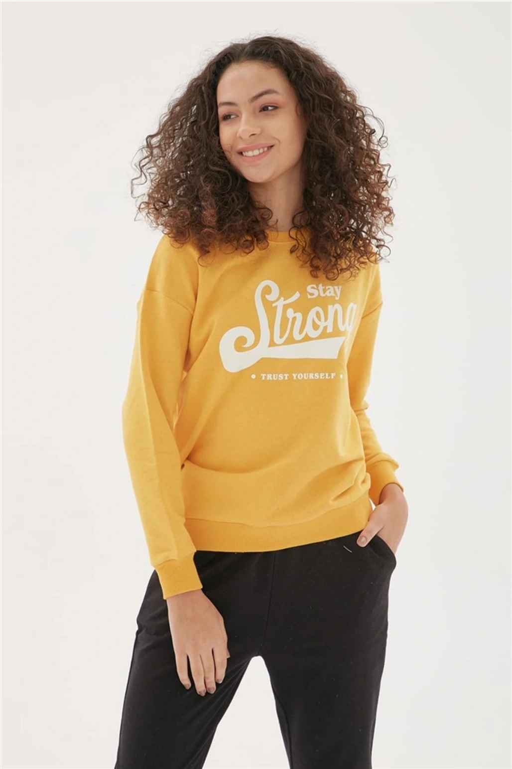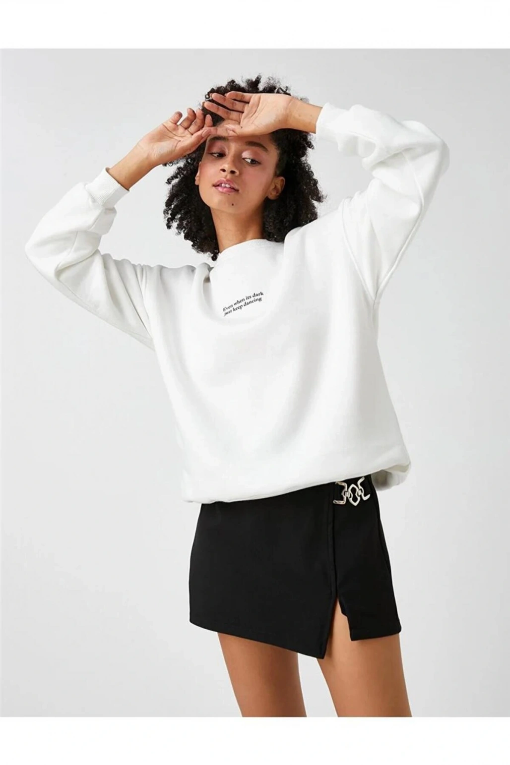 Slogan Baskılı Sweatshirt Bisiklet Yaka Uzun Kollu Içi Polarlı