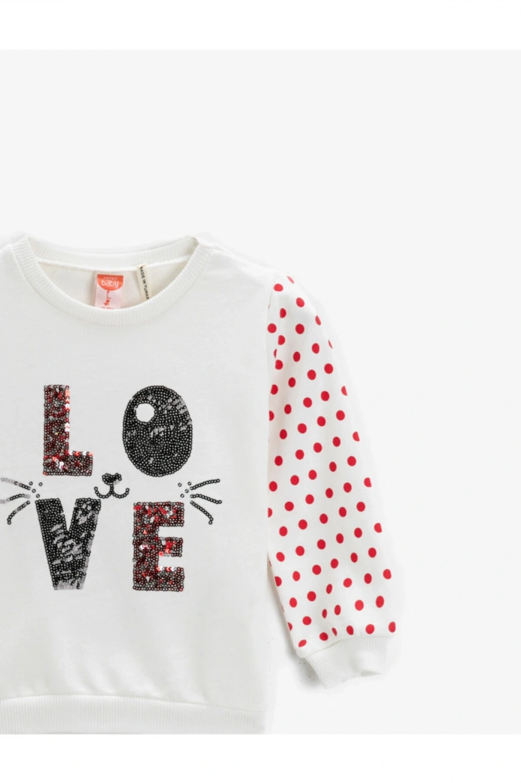 Bisiklet Yaka Uzun Kol Baskılı Kız Bebek Sweathirt