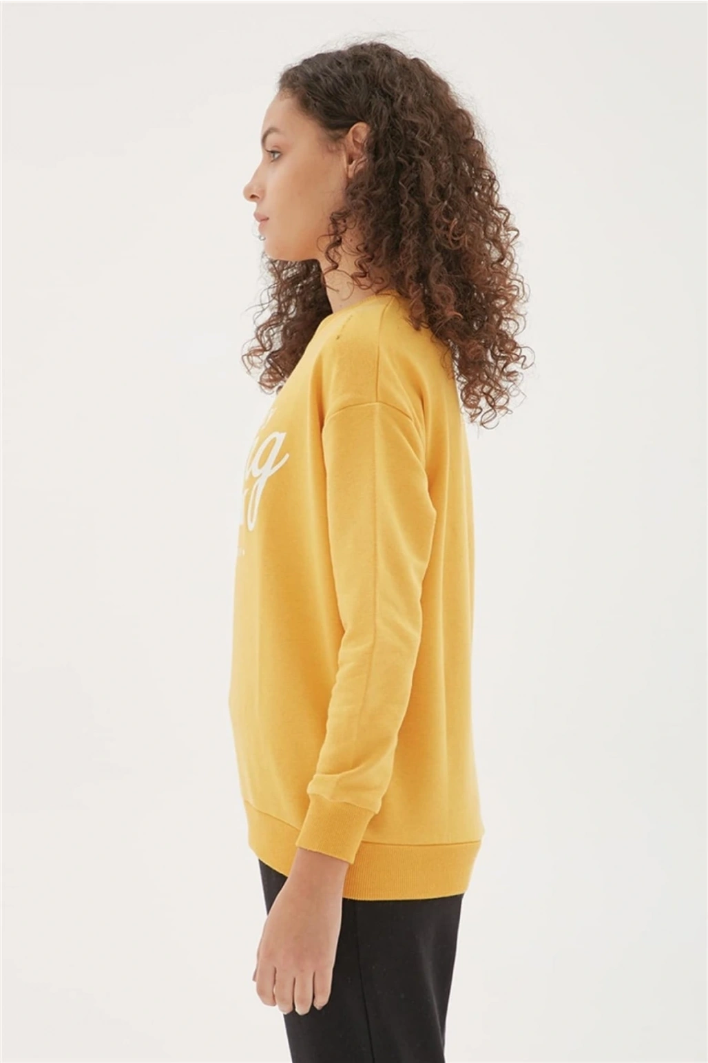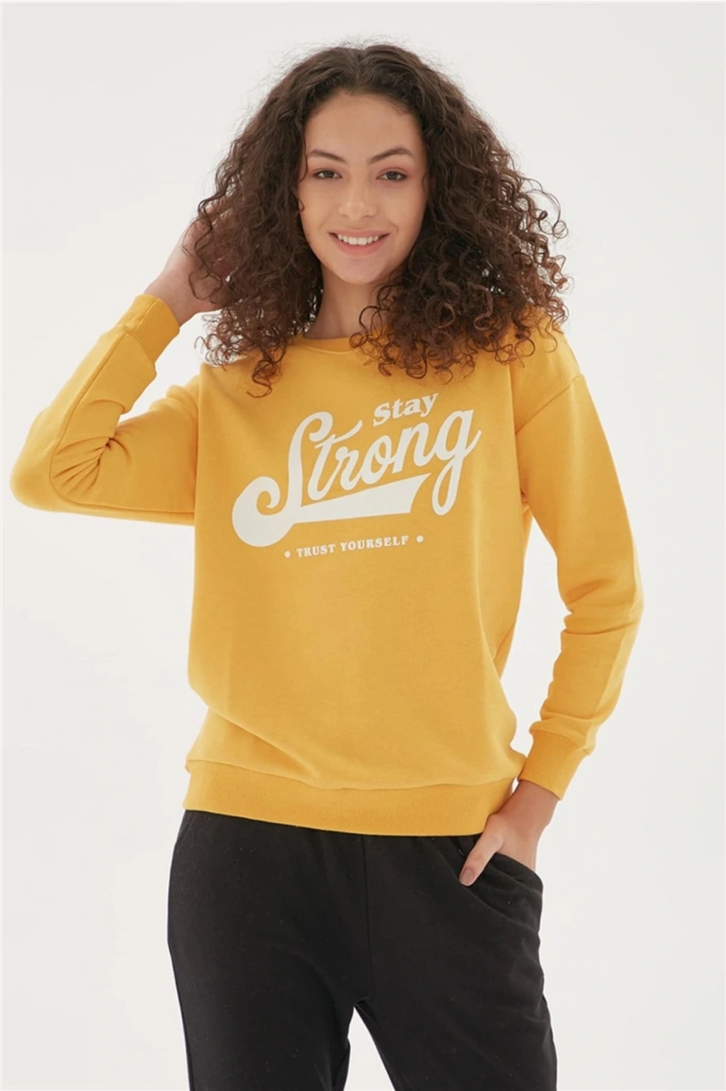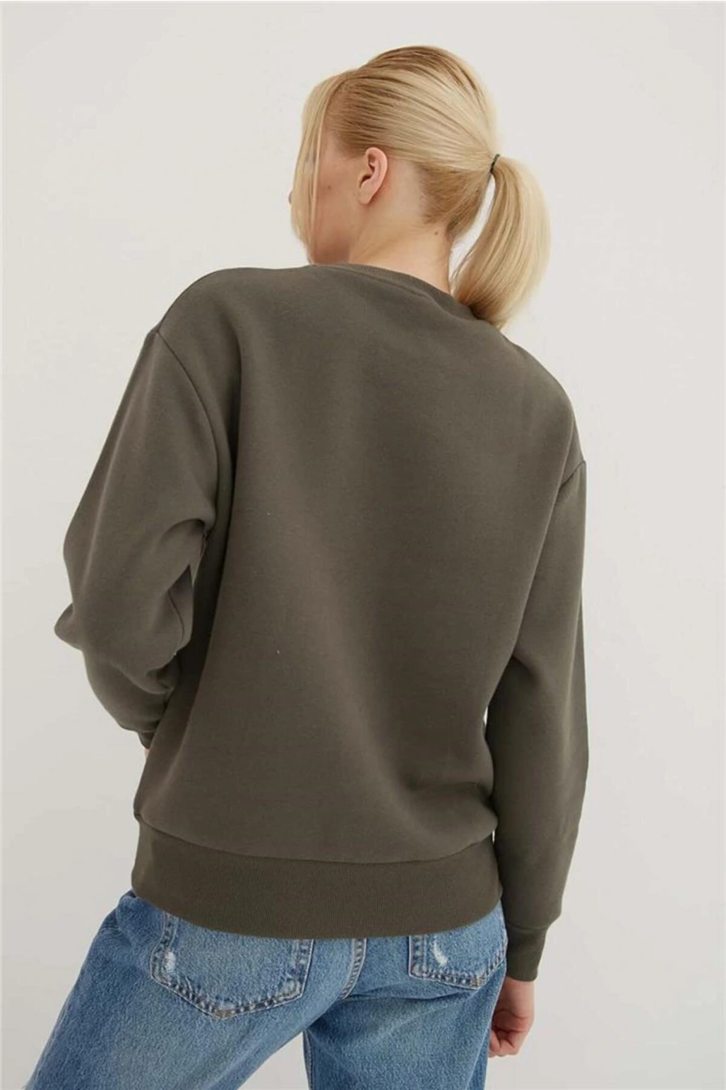 Bisiklet Yaka Baskılı Çağla Kadın Sweatshırt 22k0572k1