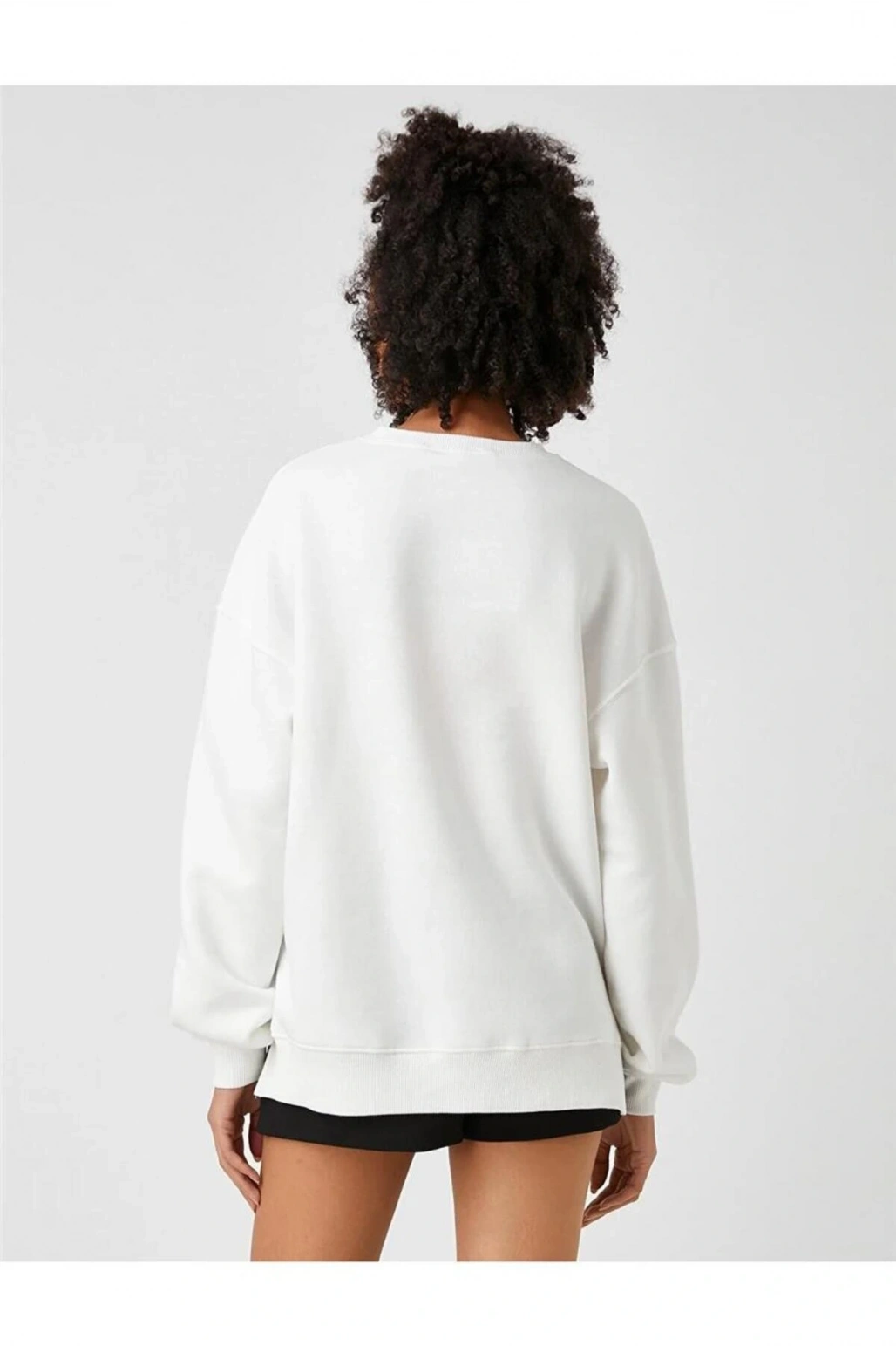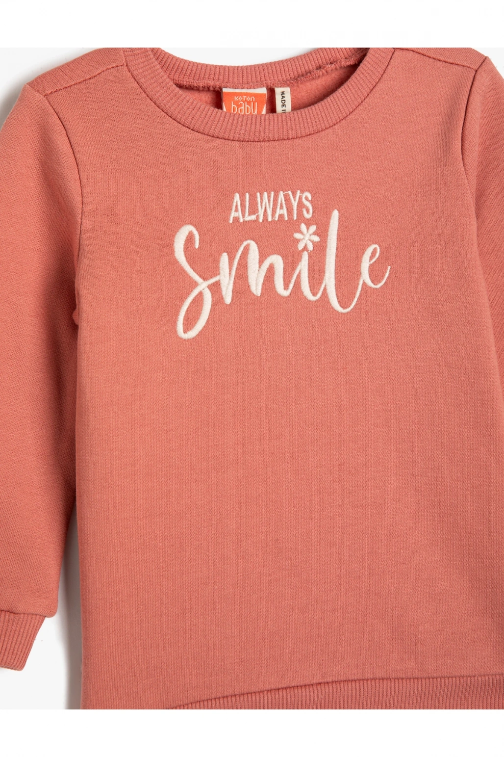 Sweatshirt Şardonlu İşlemeli Bisiklet Yaka Pamuklu