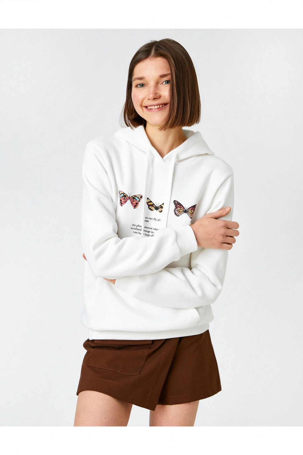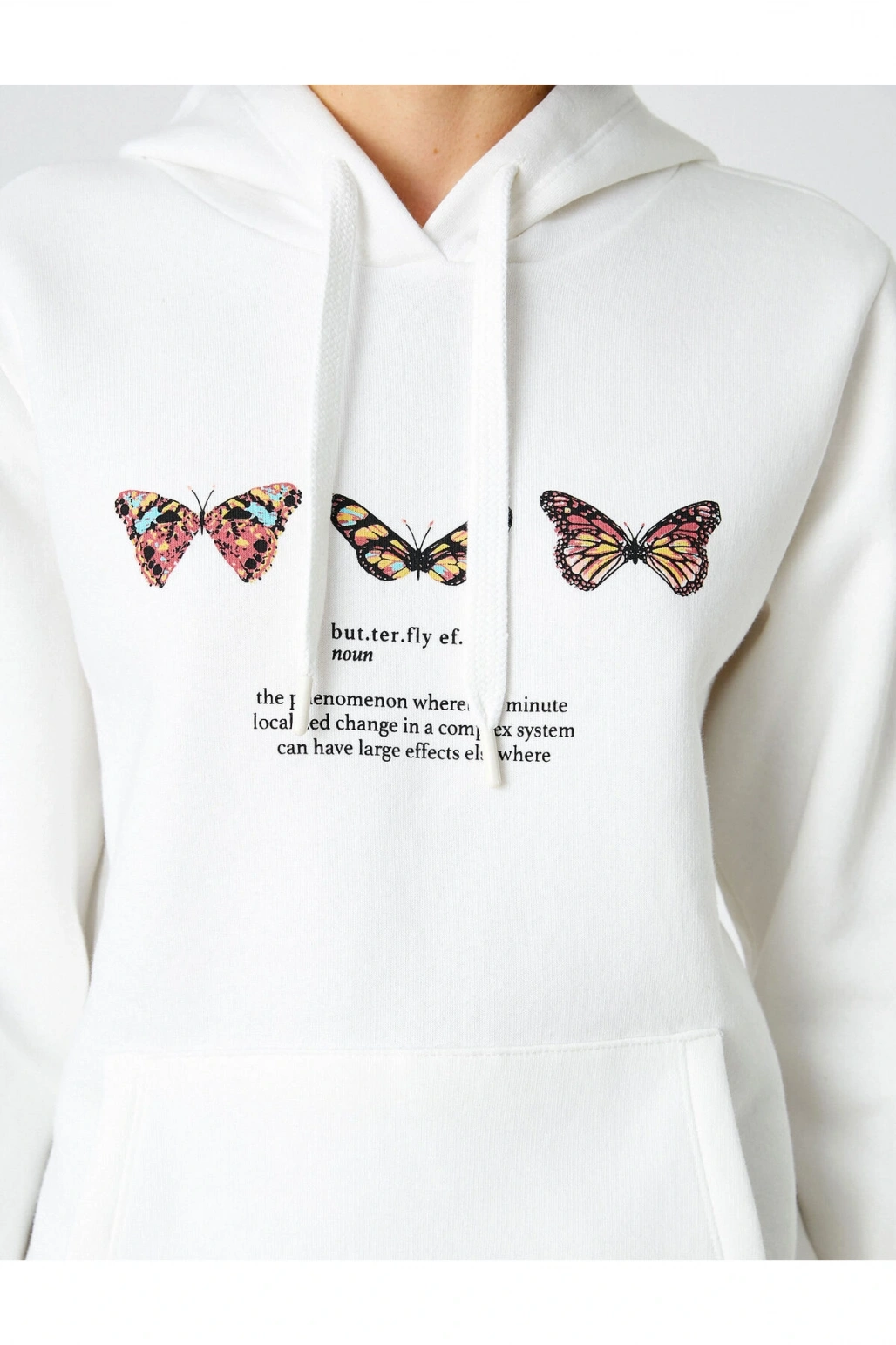 Kelebek Baskılı Sweatshirt Kapüşonlu Uzun Kollu