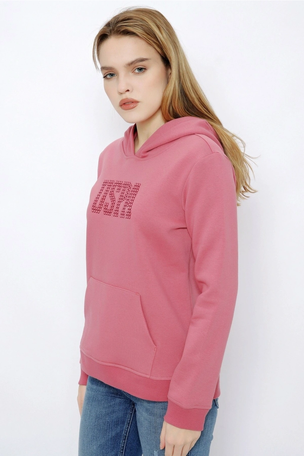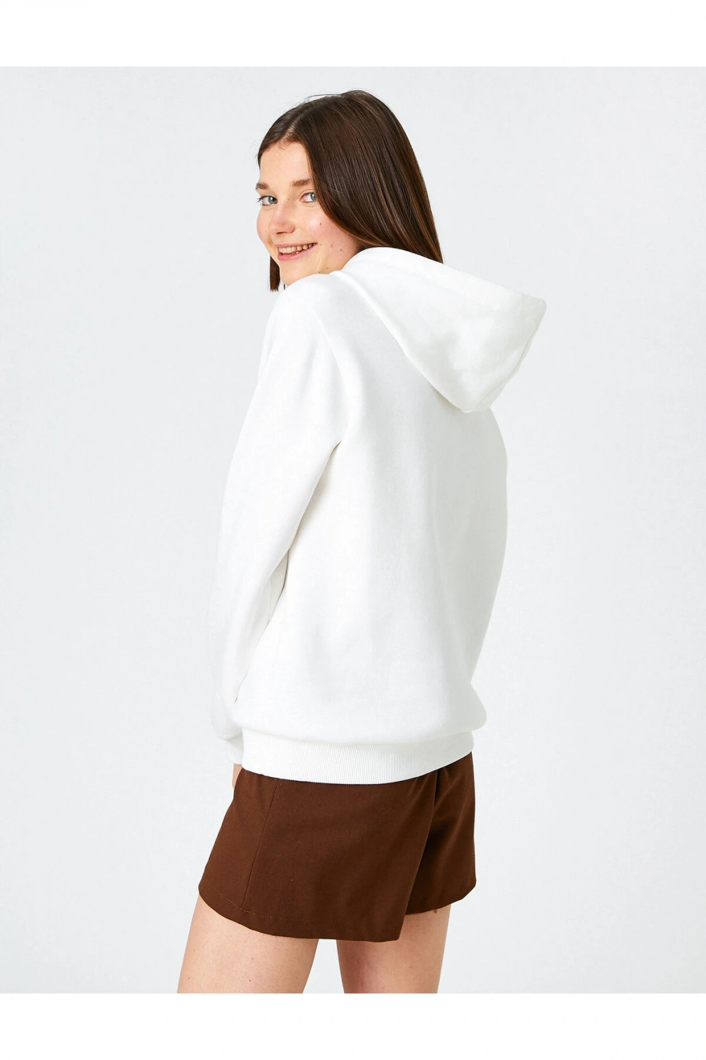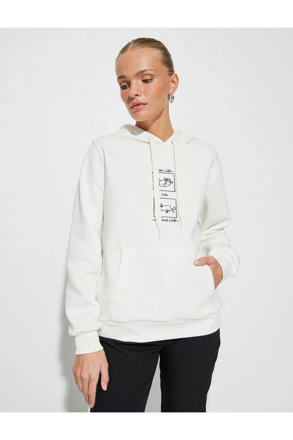Kapüşonlu Sweatshirt Nakışlı Kanguru Cepli Uzun Kollu
