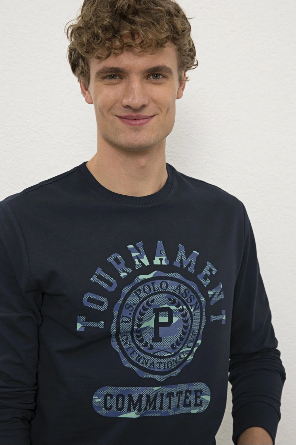 Bisiklet Yaka Baskılı Sweatshirt