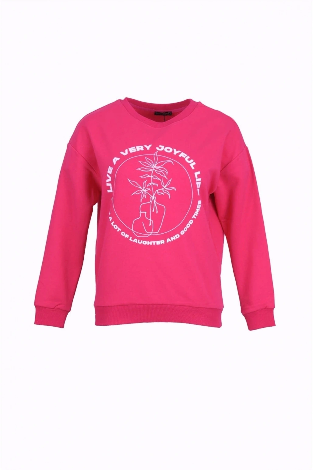 Bisiklet Yaka Baskılı Fuşya Kadın Sweatshırt 22k0572k1