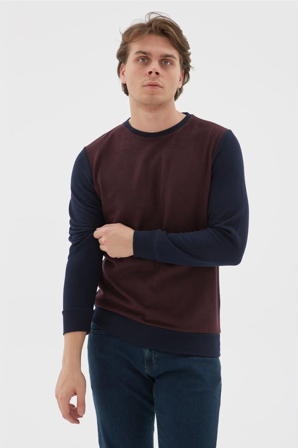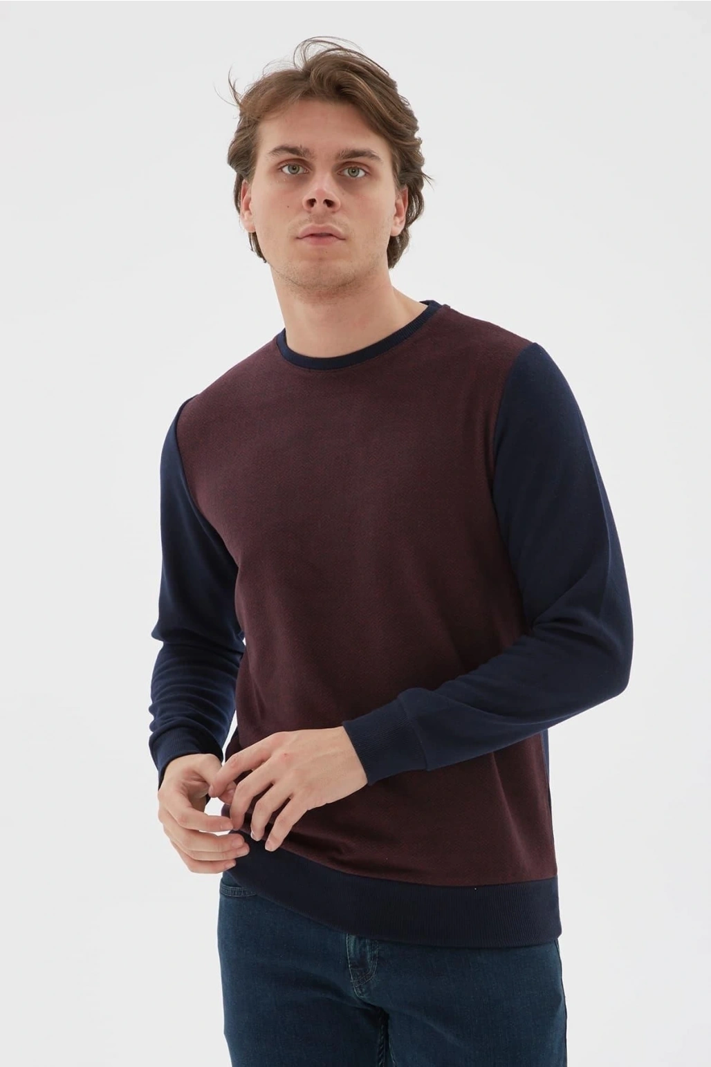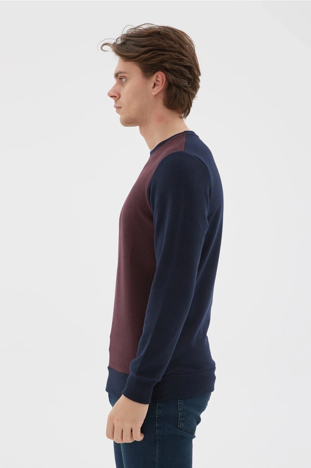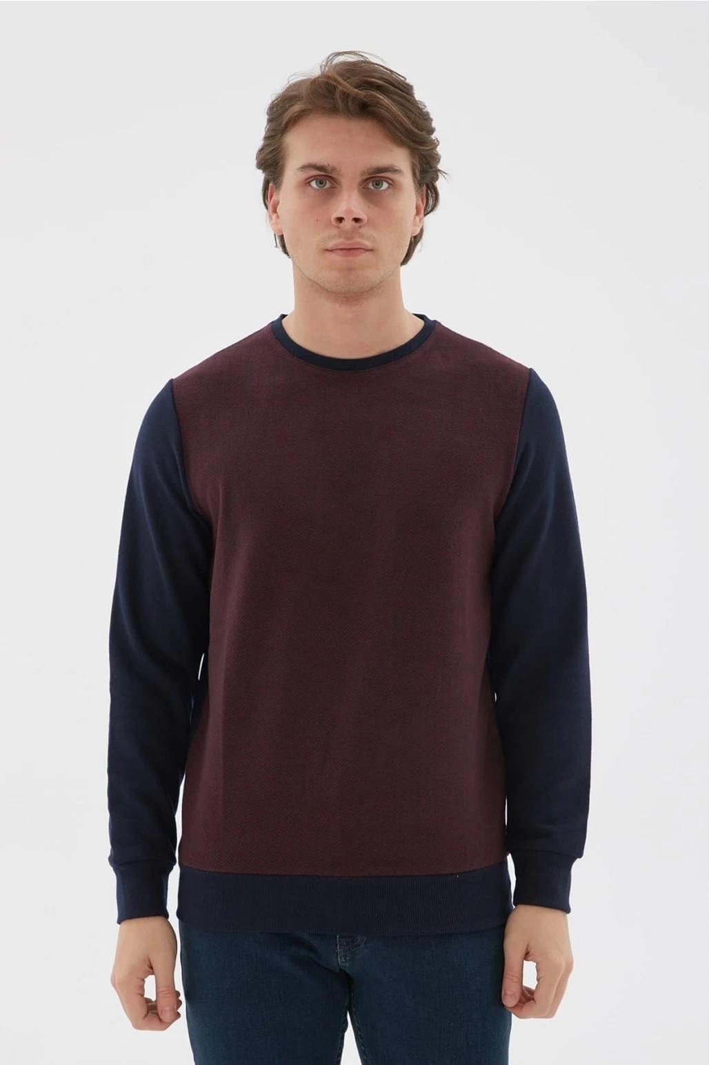 Bisiklet Yaka Desenli Sweatshirt Bordo / Burgundy