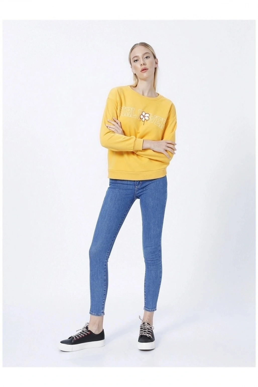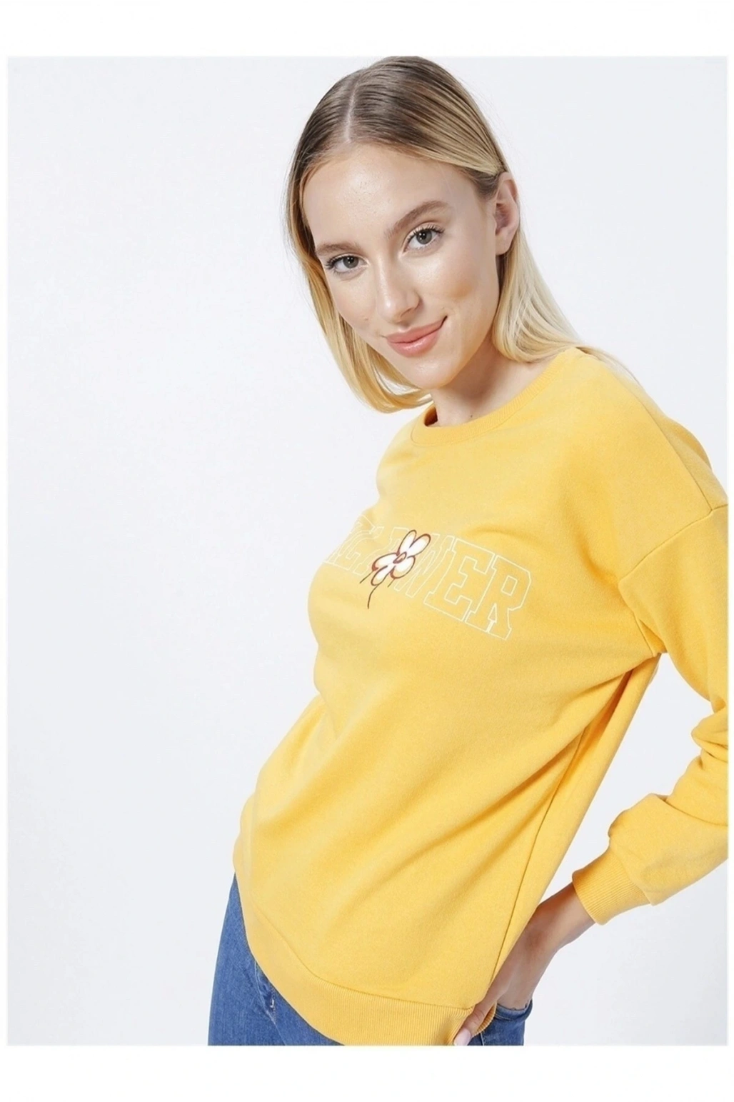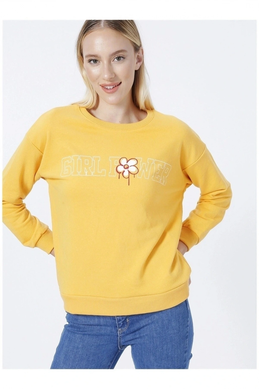 Baskılı Hardal Kadın Sweatshırt 22k0573k1