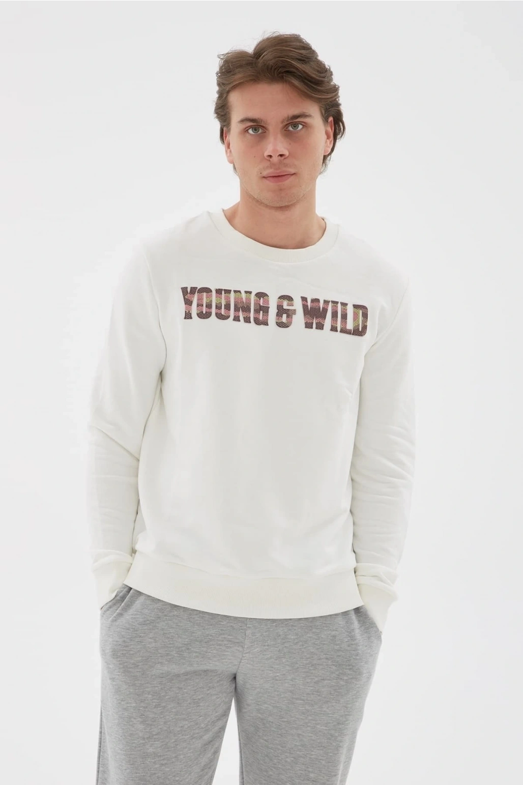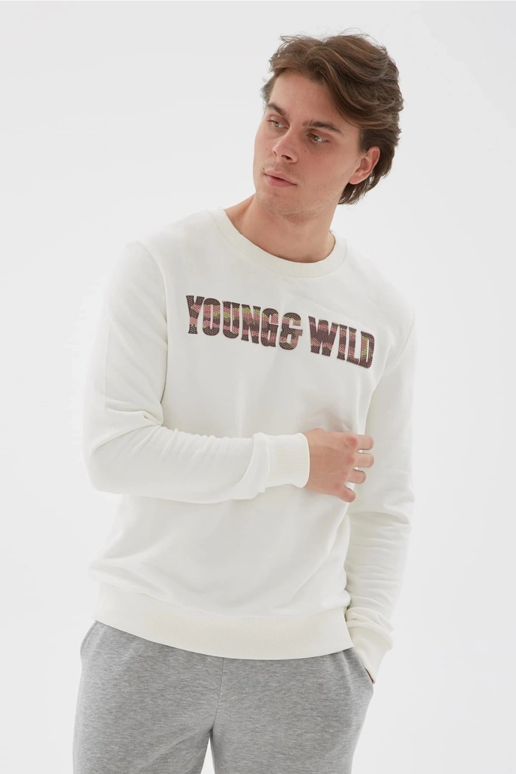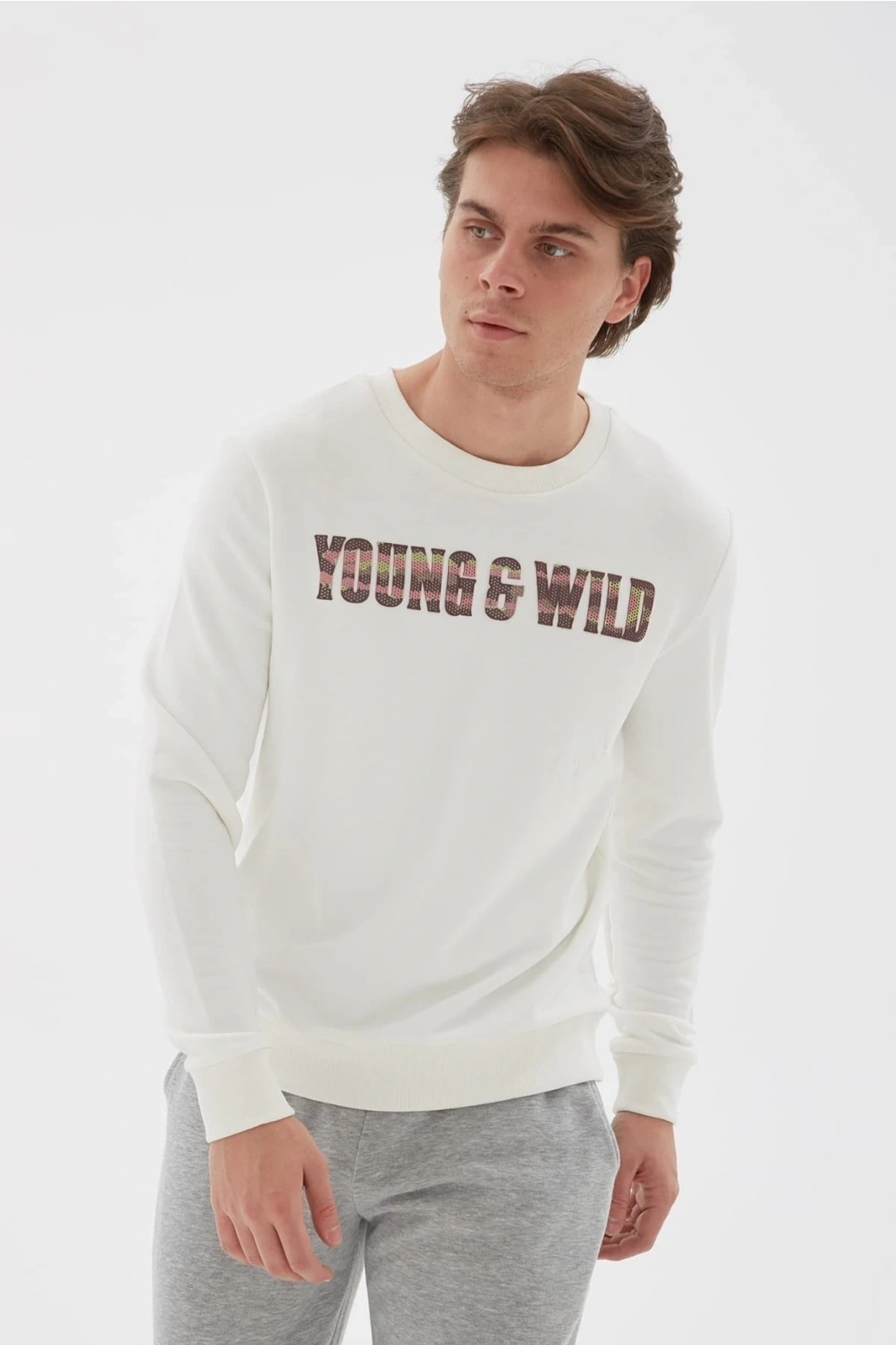 Baskılı Sweatshirt Ekru