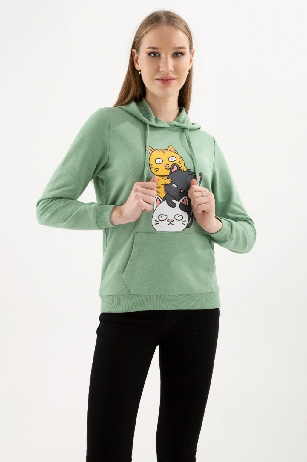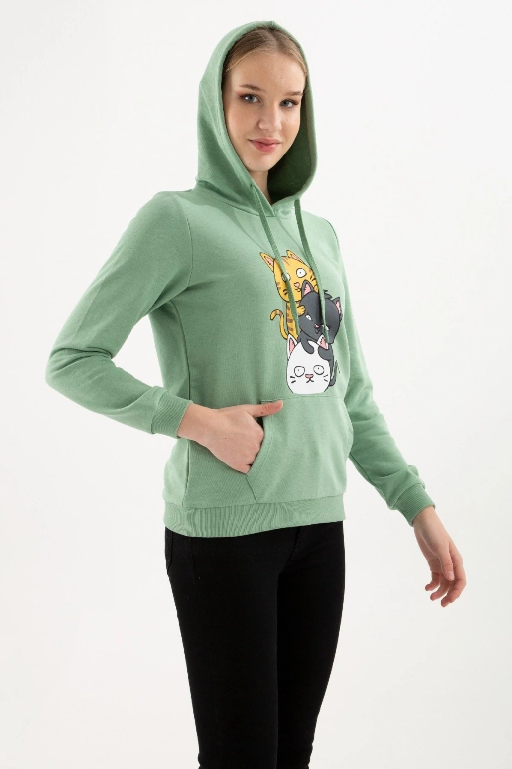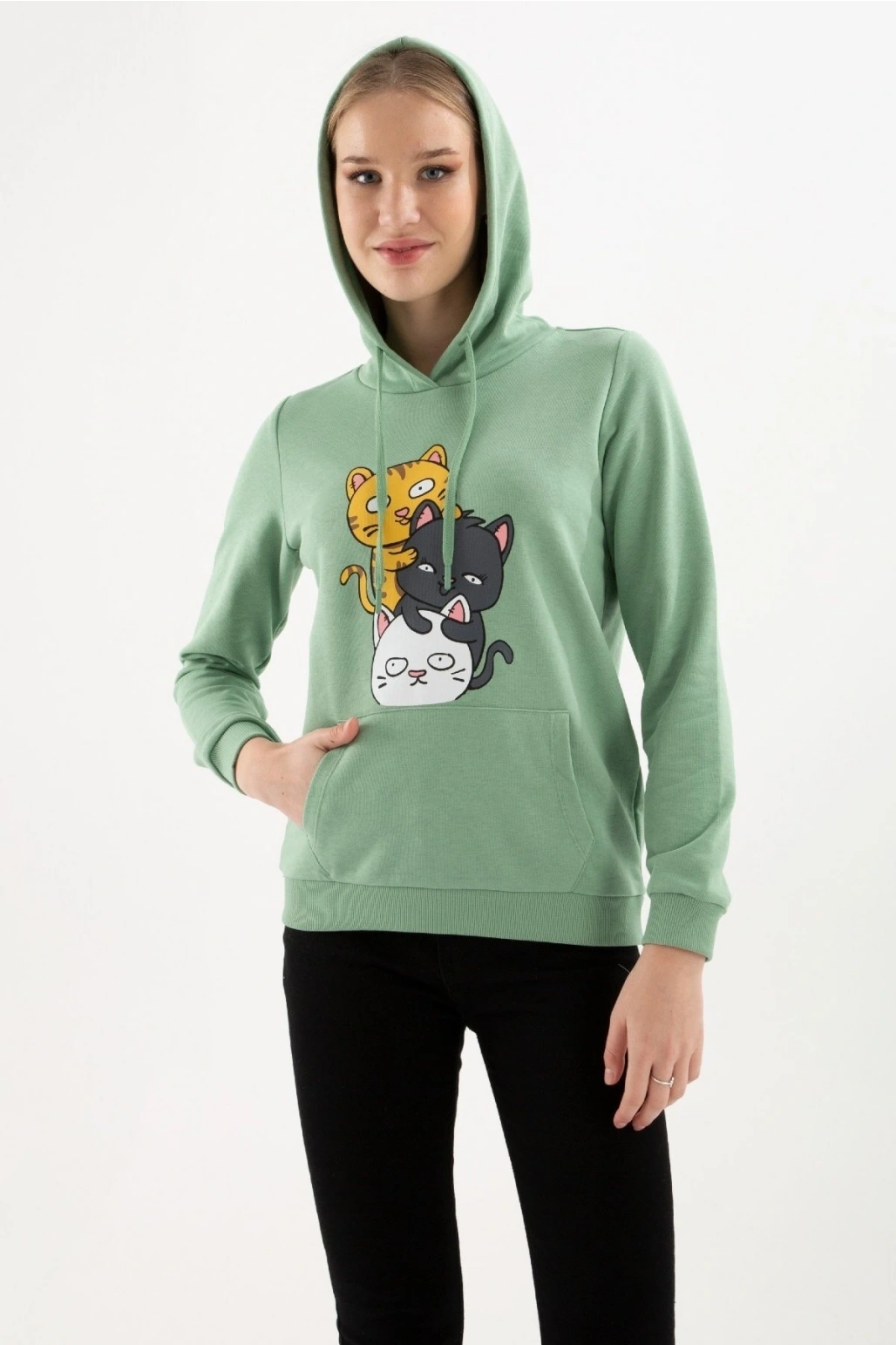 Kadın Kapüşonlu Baskılı Sweatshirt