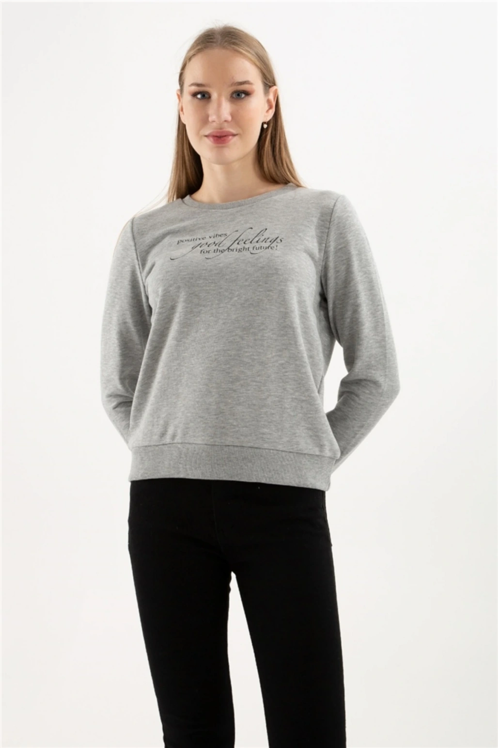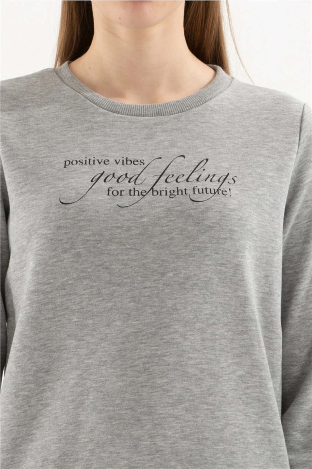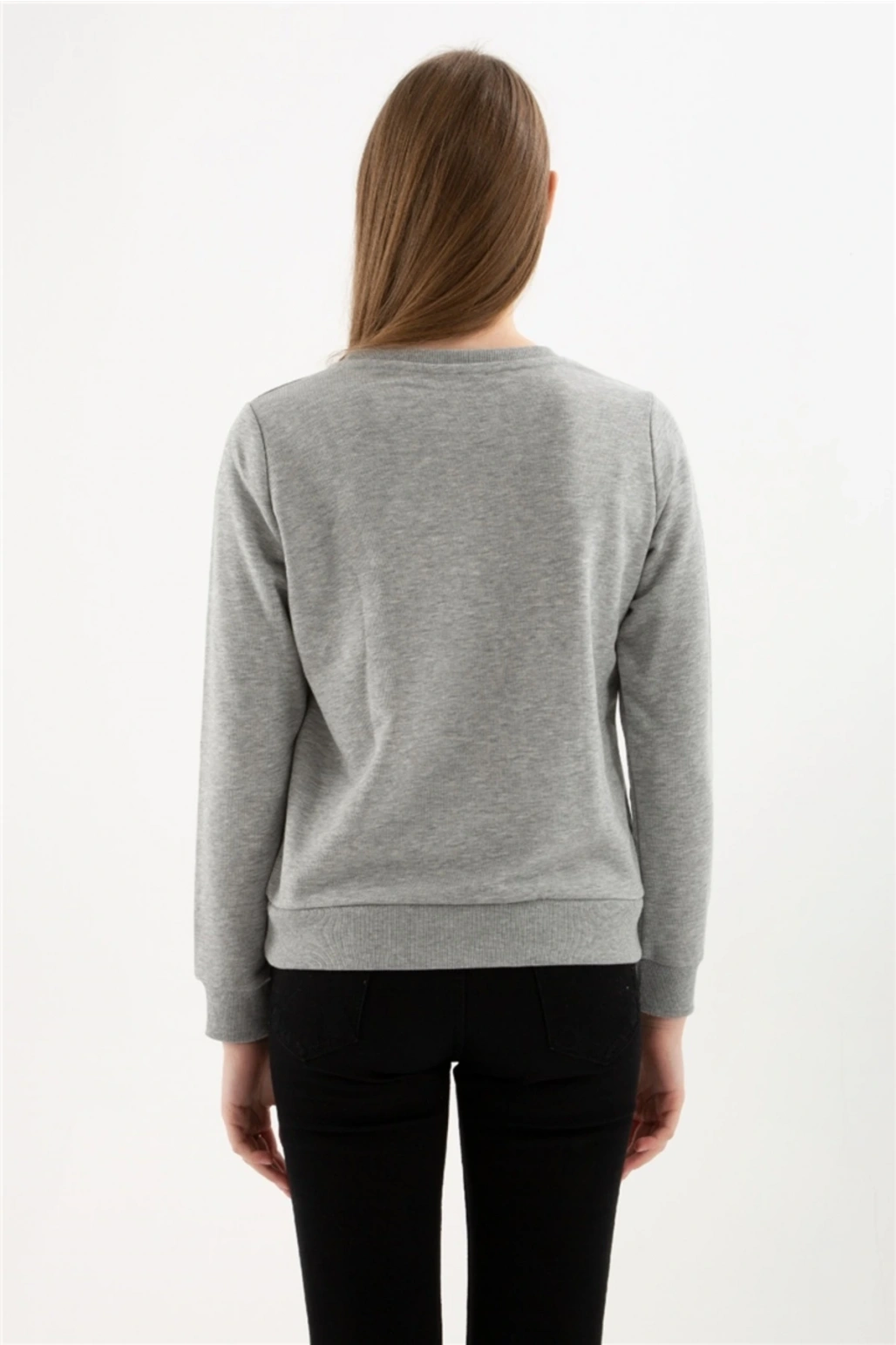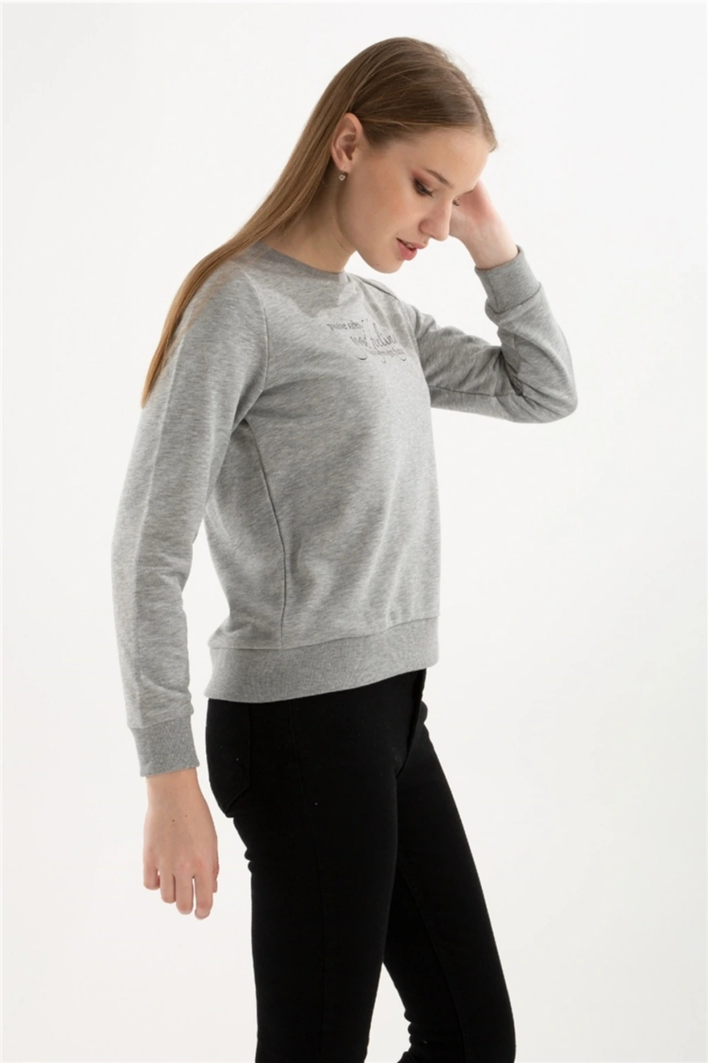 Baskılı Sweatshırt Gri Melanj / Grey Melange