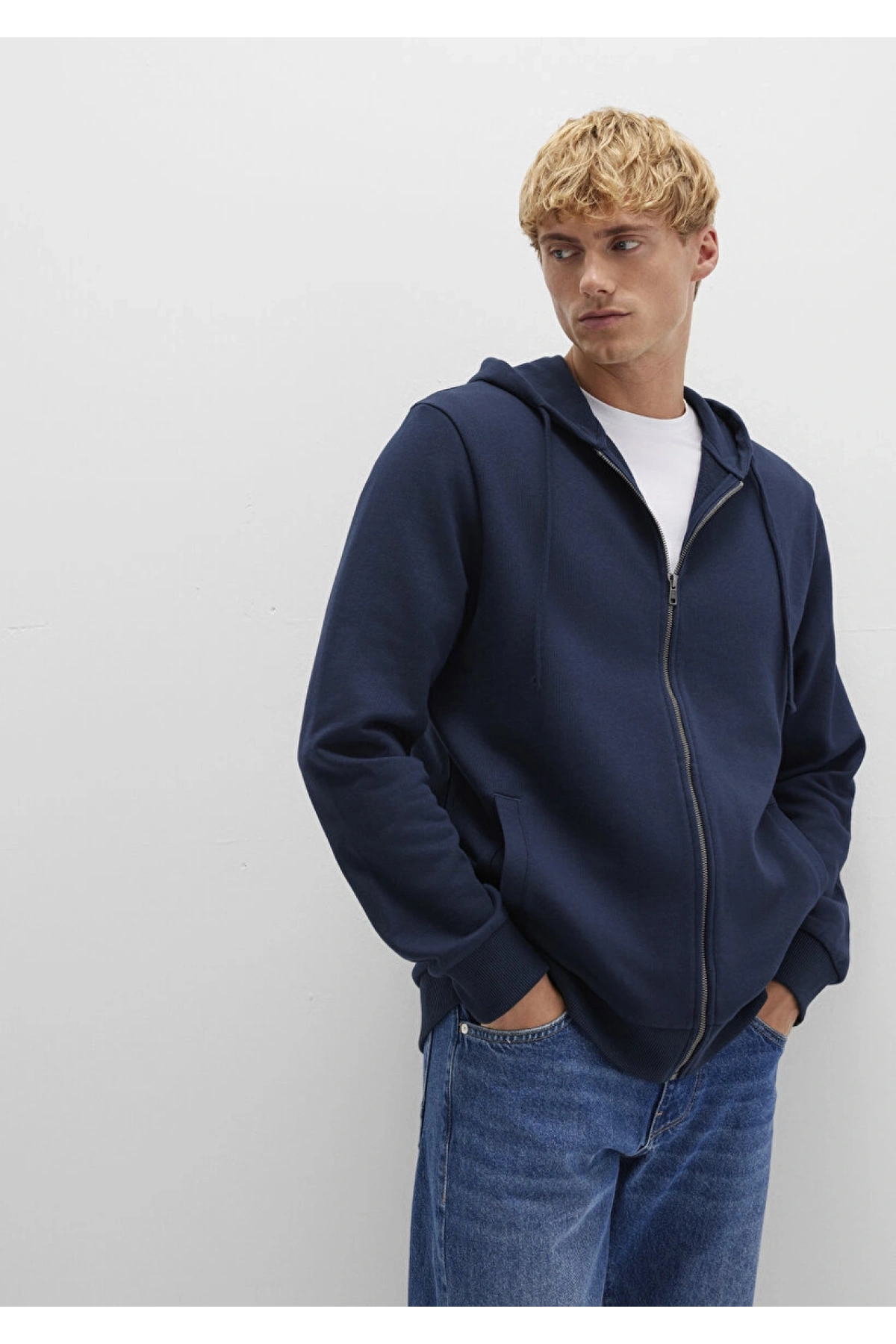 Kapüşonlu Fermuarlı Lacivert Sweatshirt