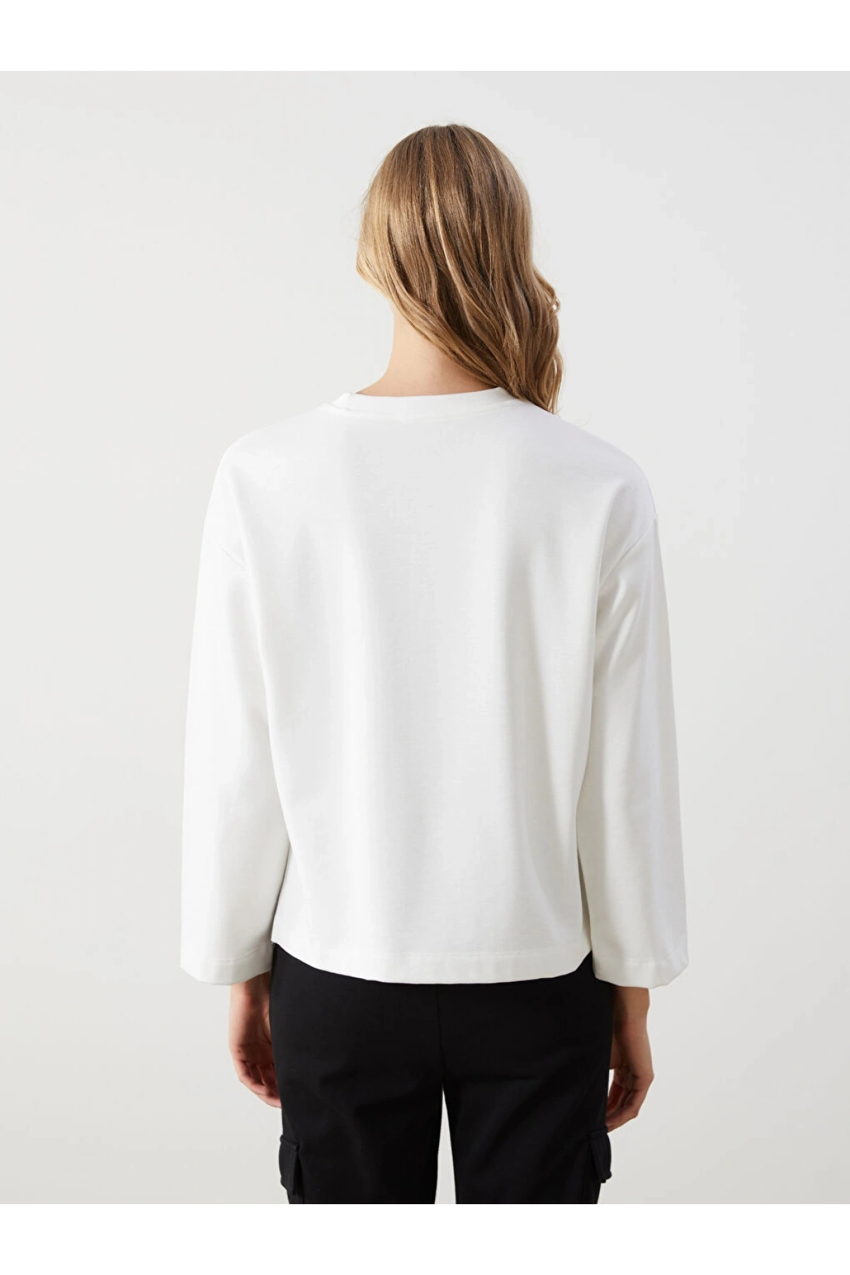 Koton Uzun Kollu Şardonlu Kumaş Detaylı Bisiklet Yaka Sweatshirt
