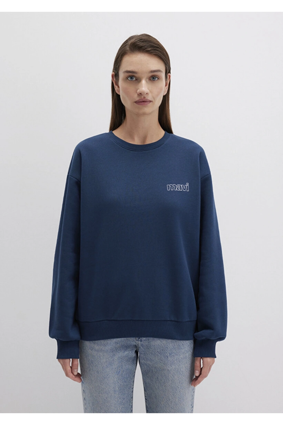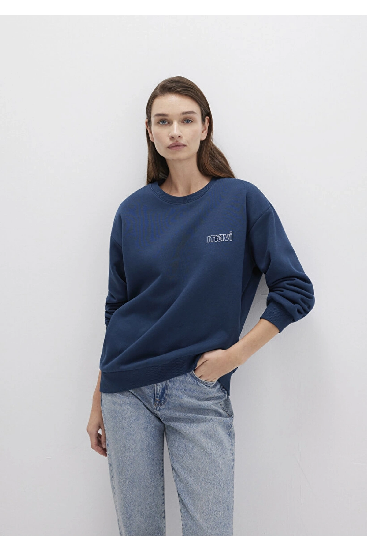 Mavi Logo Baskılı Lacivert Sweatshirt