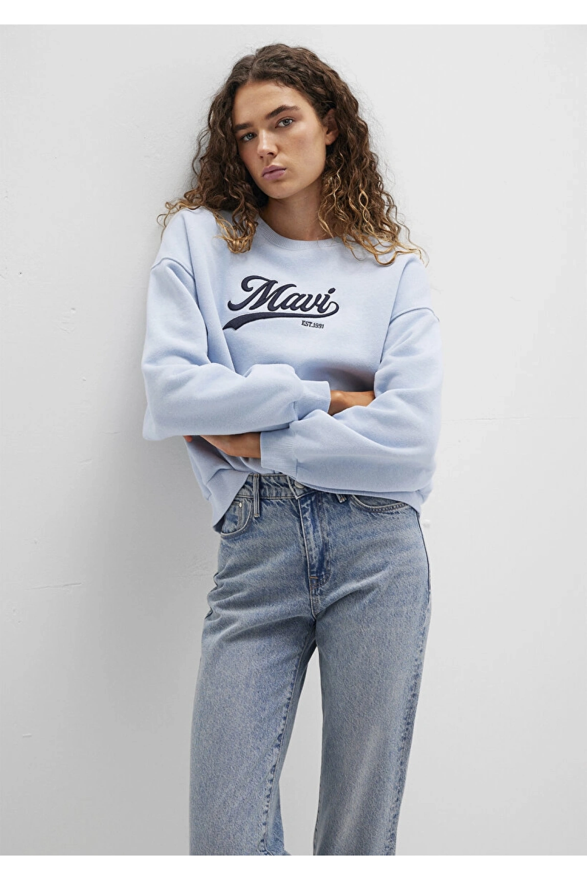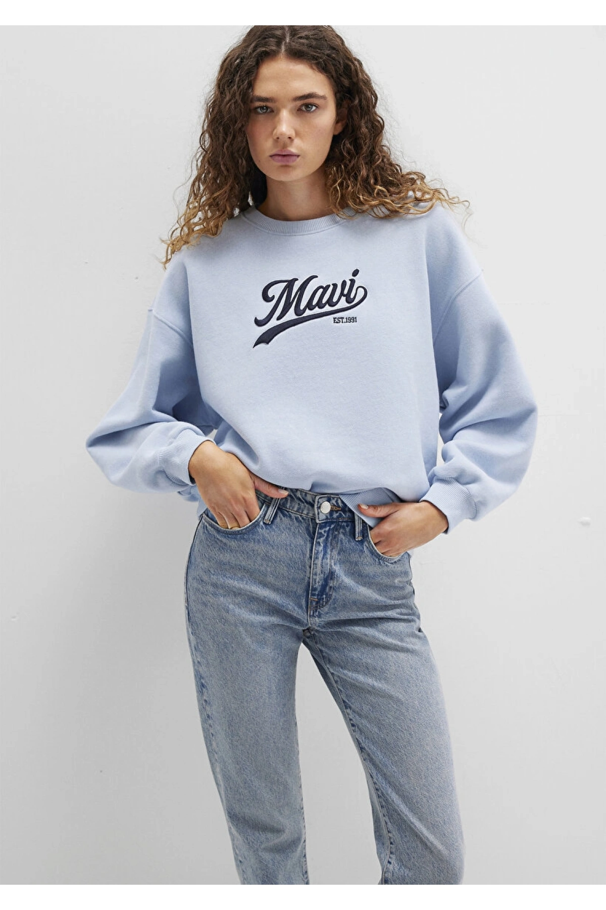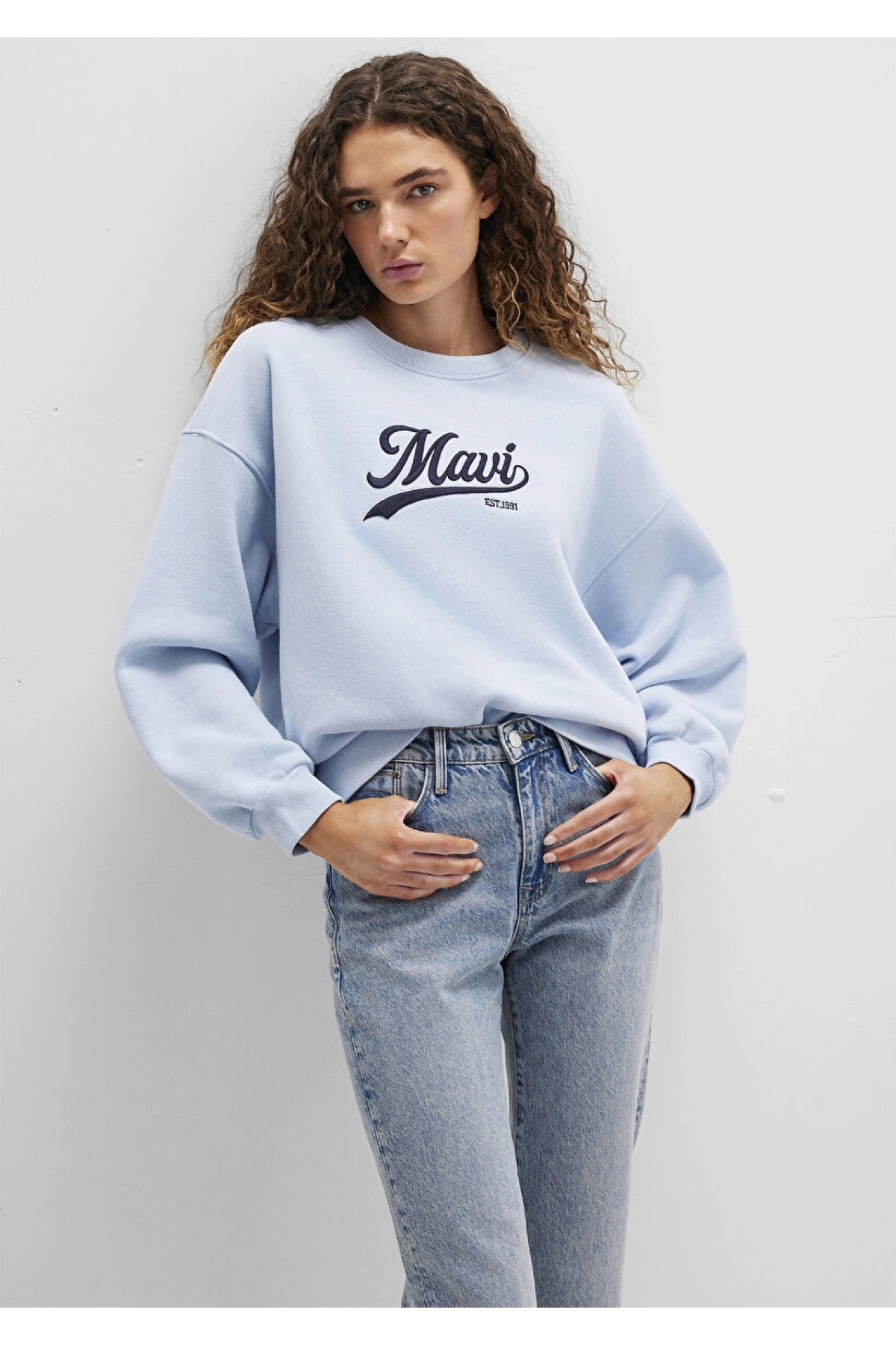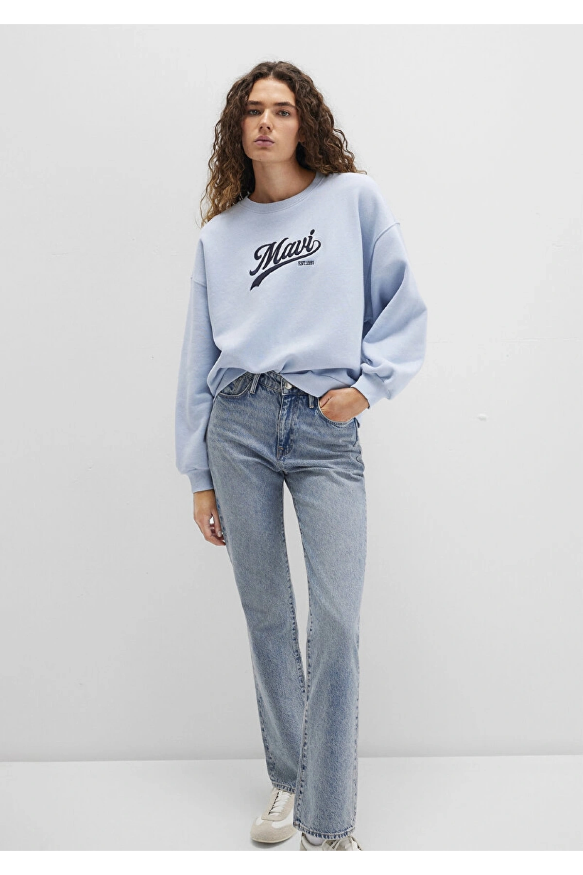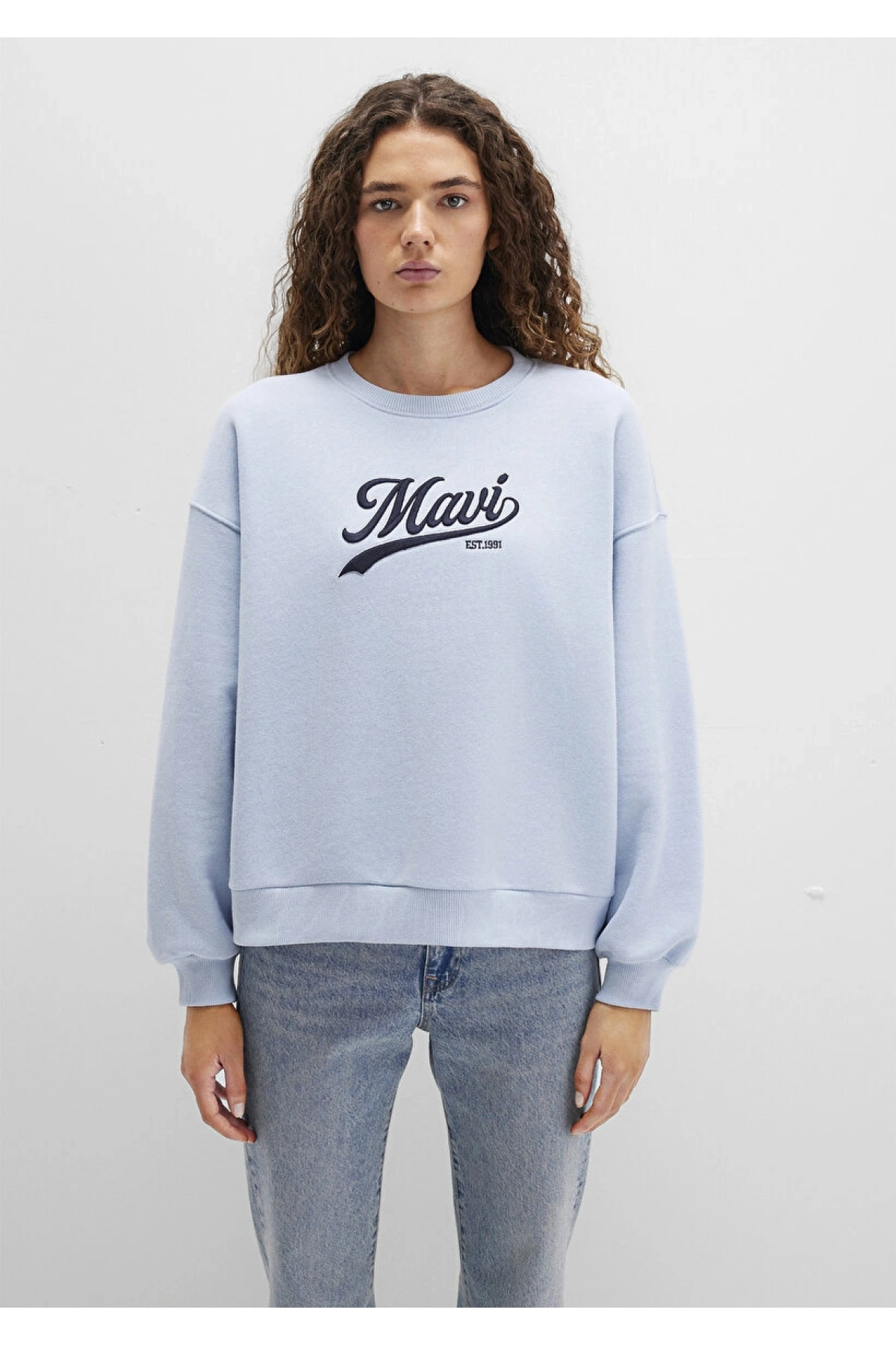 Mavi Logo Baskılı Mavi Sweatshirt