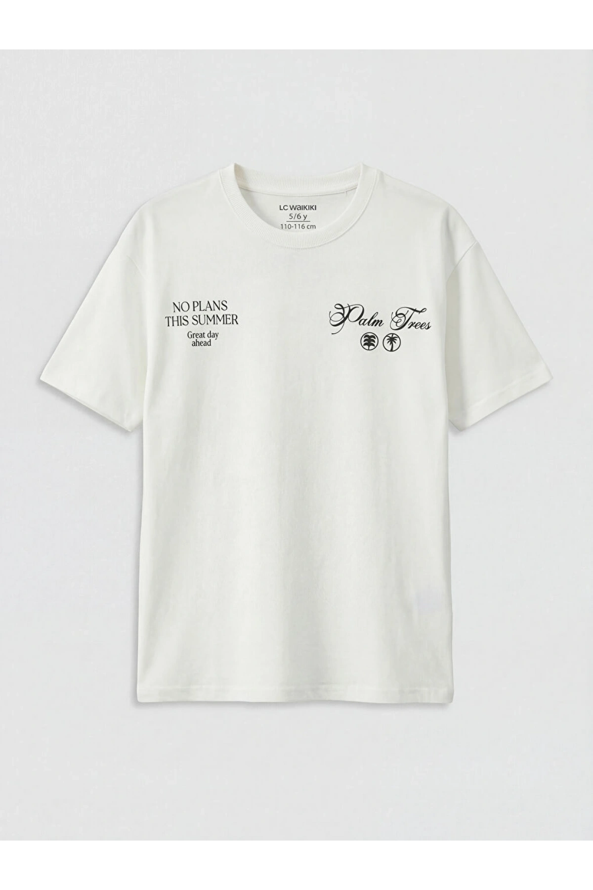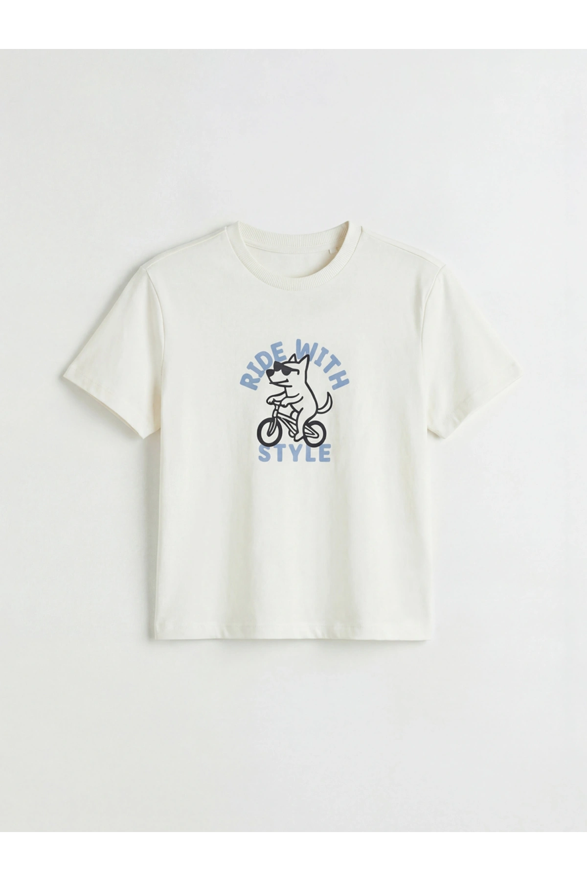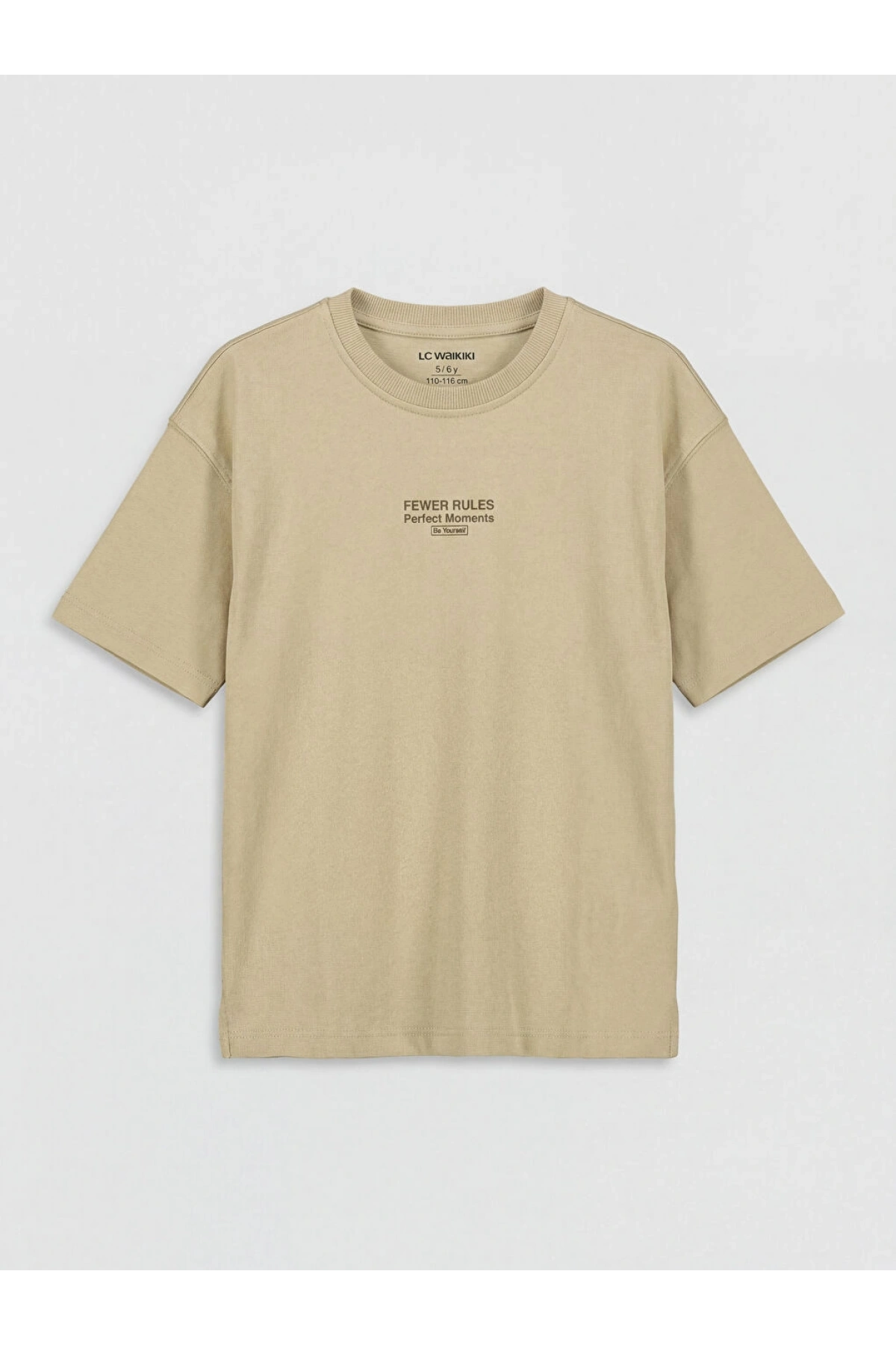 LCW Kids Ekru Bisiklet Yaka Baskılı Erkek Çocuk Tişört