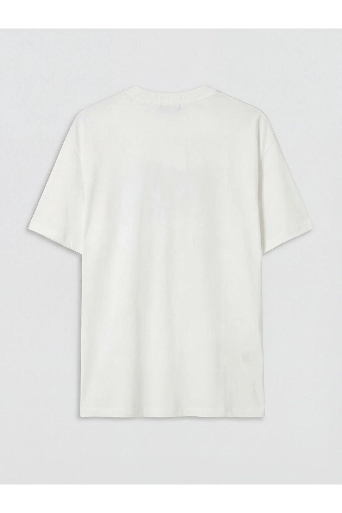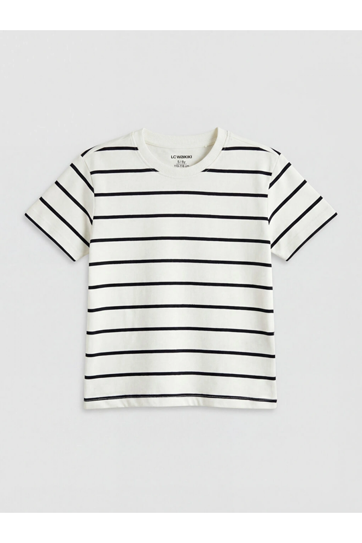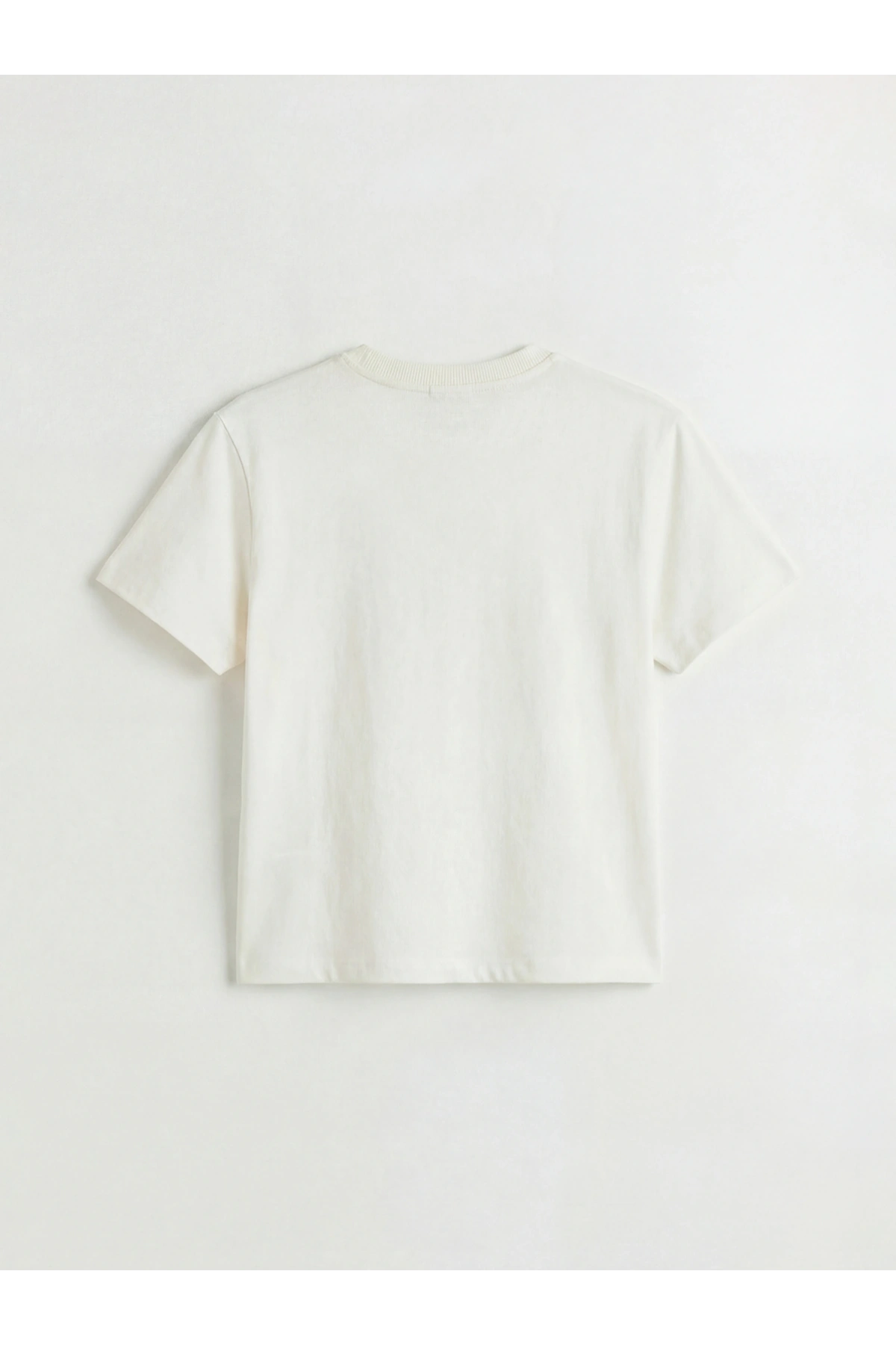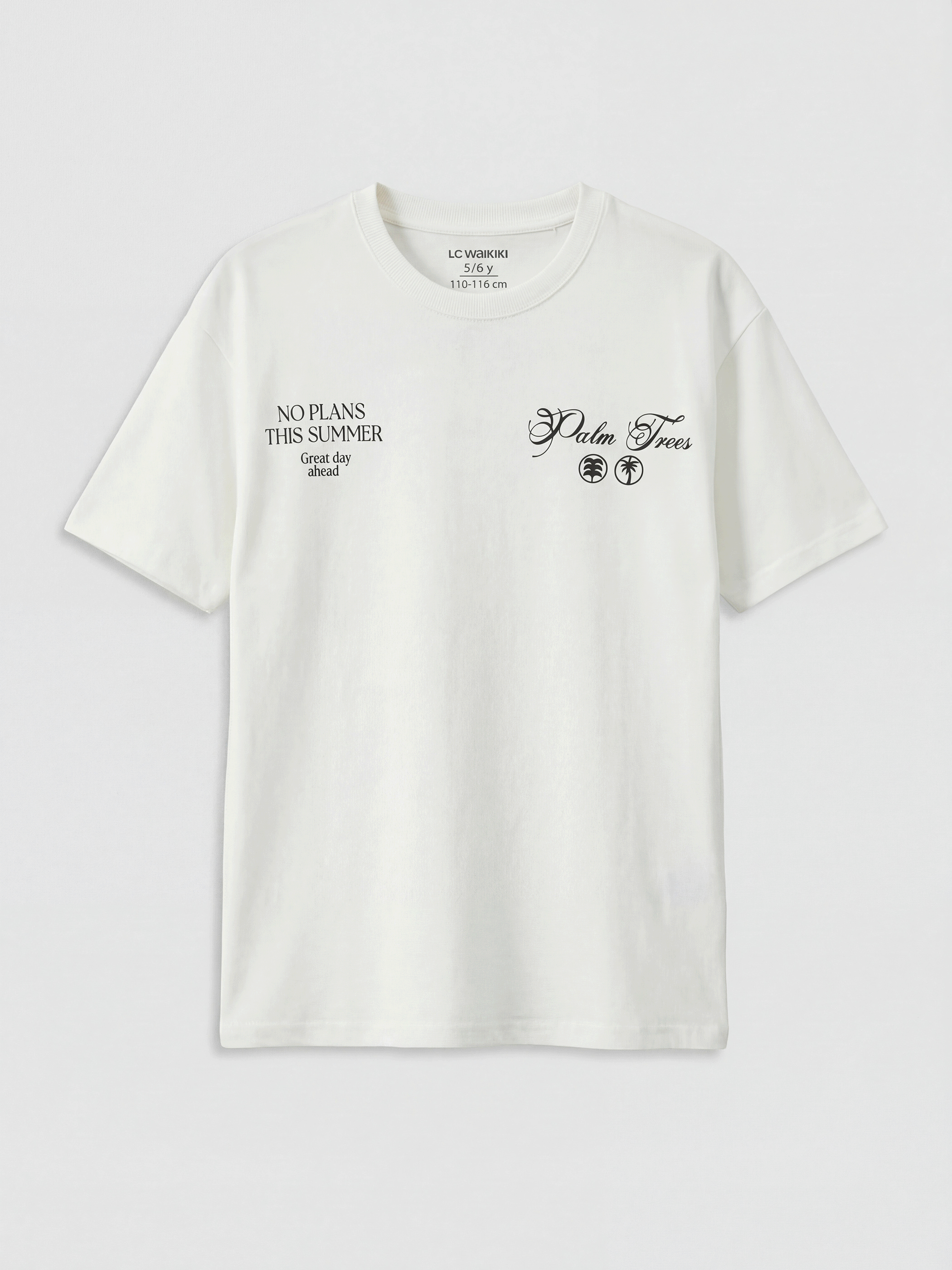 LCW Kids Ekru Bisiklet Yaka Baskılı Erkek Çocuk Tişört