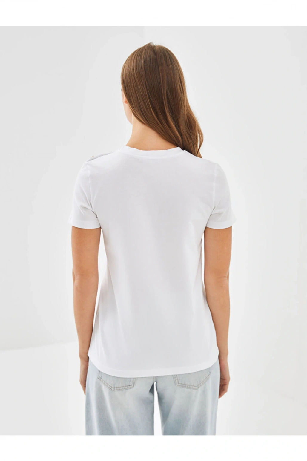 LCWAIKIKI Classic Baskılı Bisiklet Yaka Puantiyeli Kadın Tişört