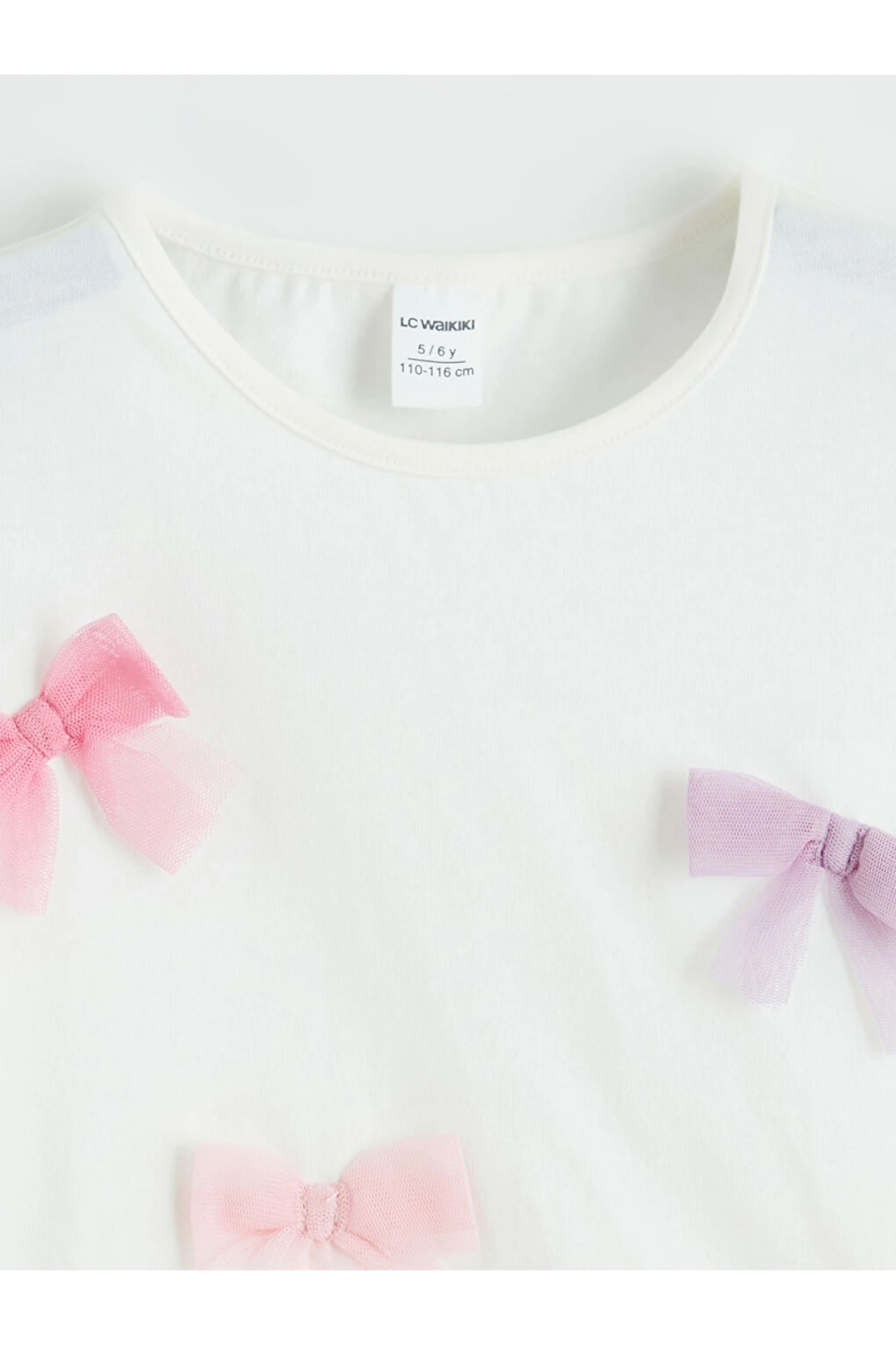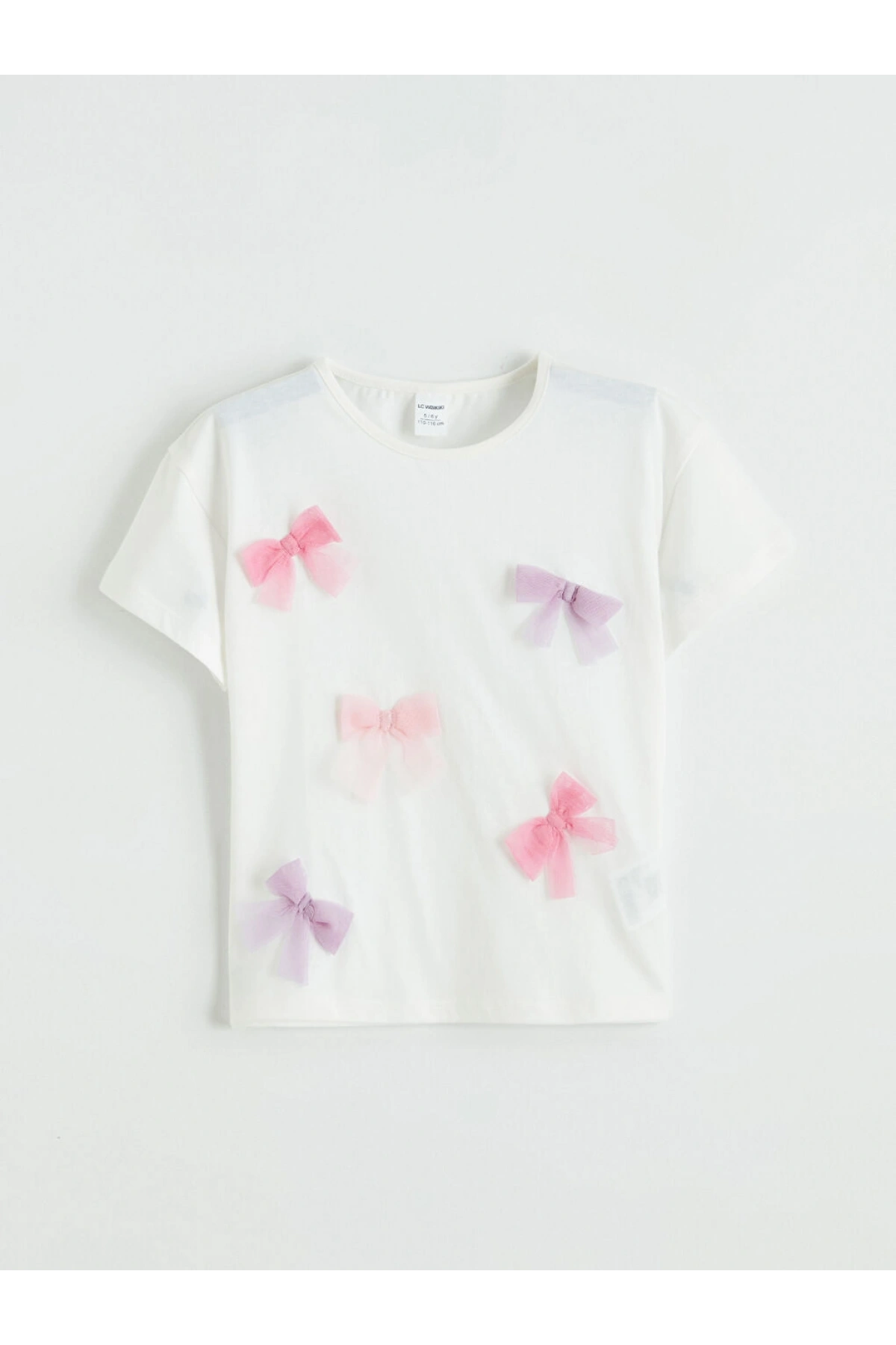 LCW Kids Ekru Kurdele Nakışlı Kız Çocuk Tişört