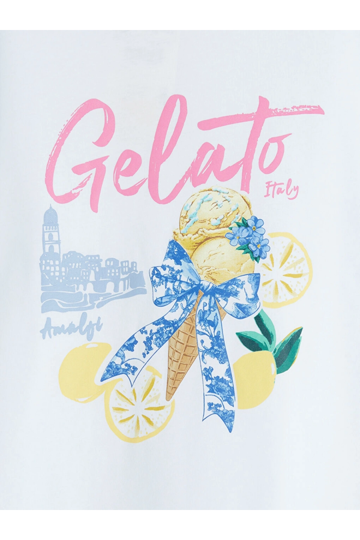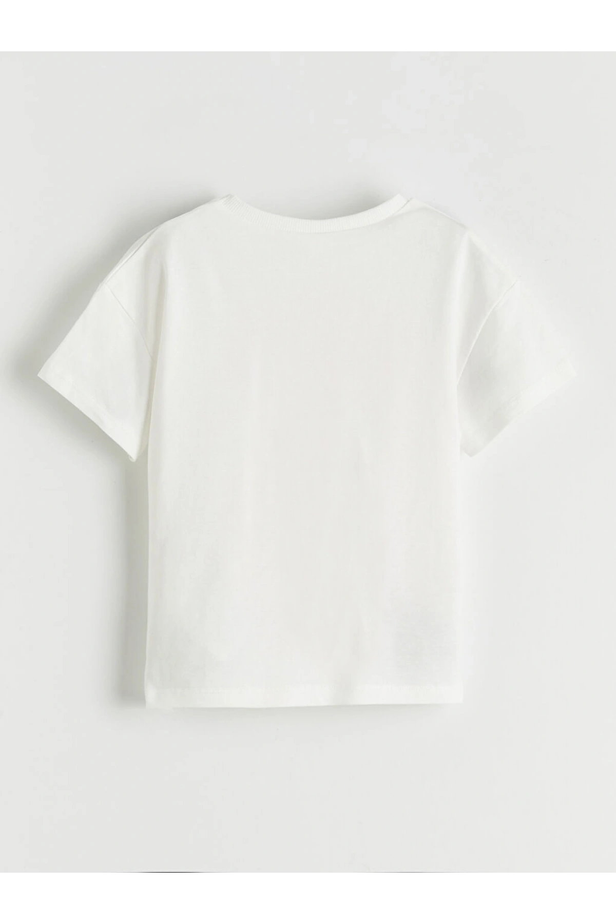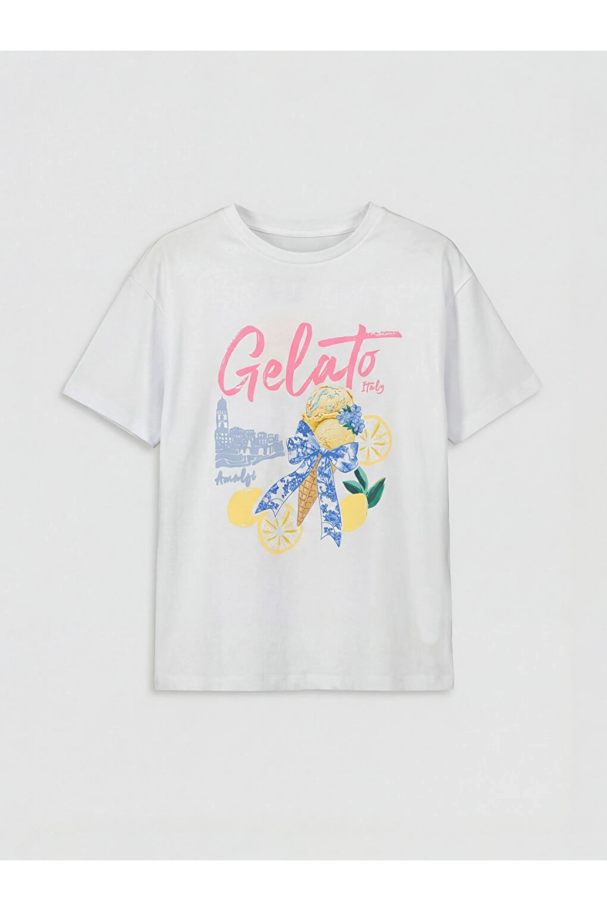 LCW Kids Beyaz Bisiklet Yaka Baskılı Kız Çocuk Tişört