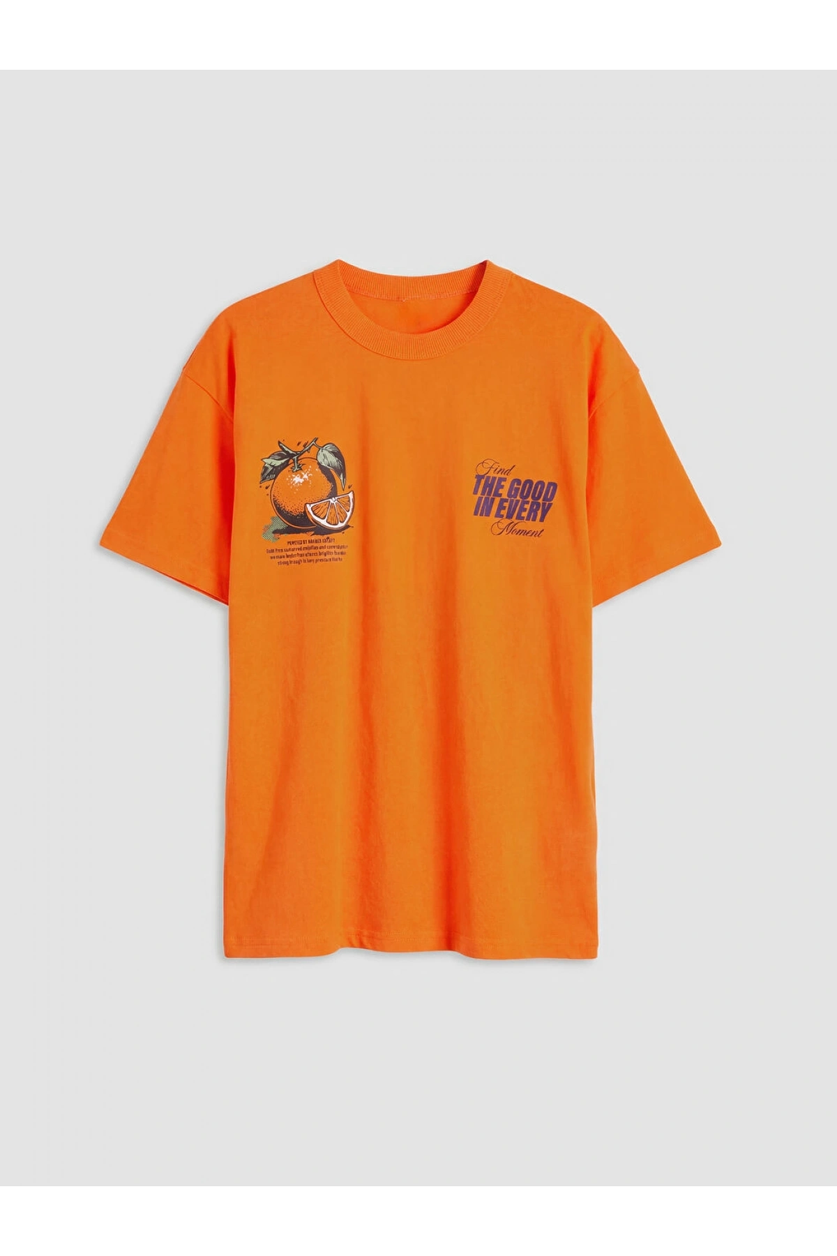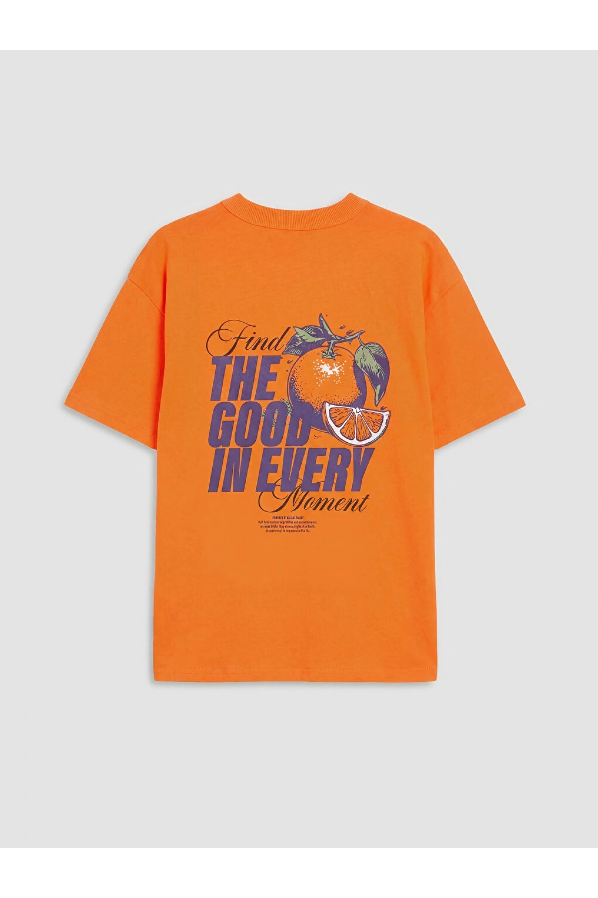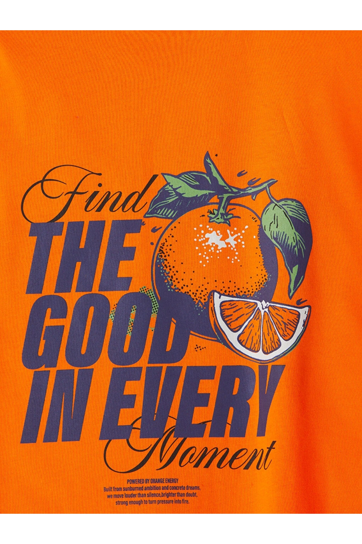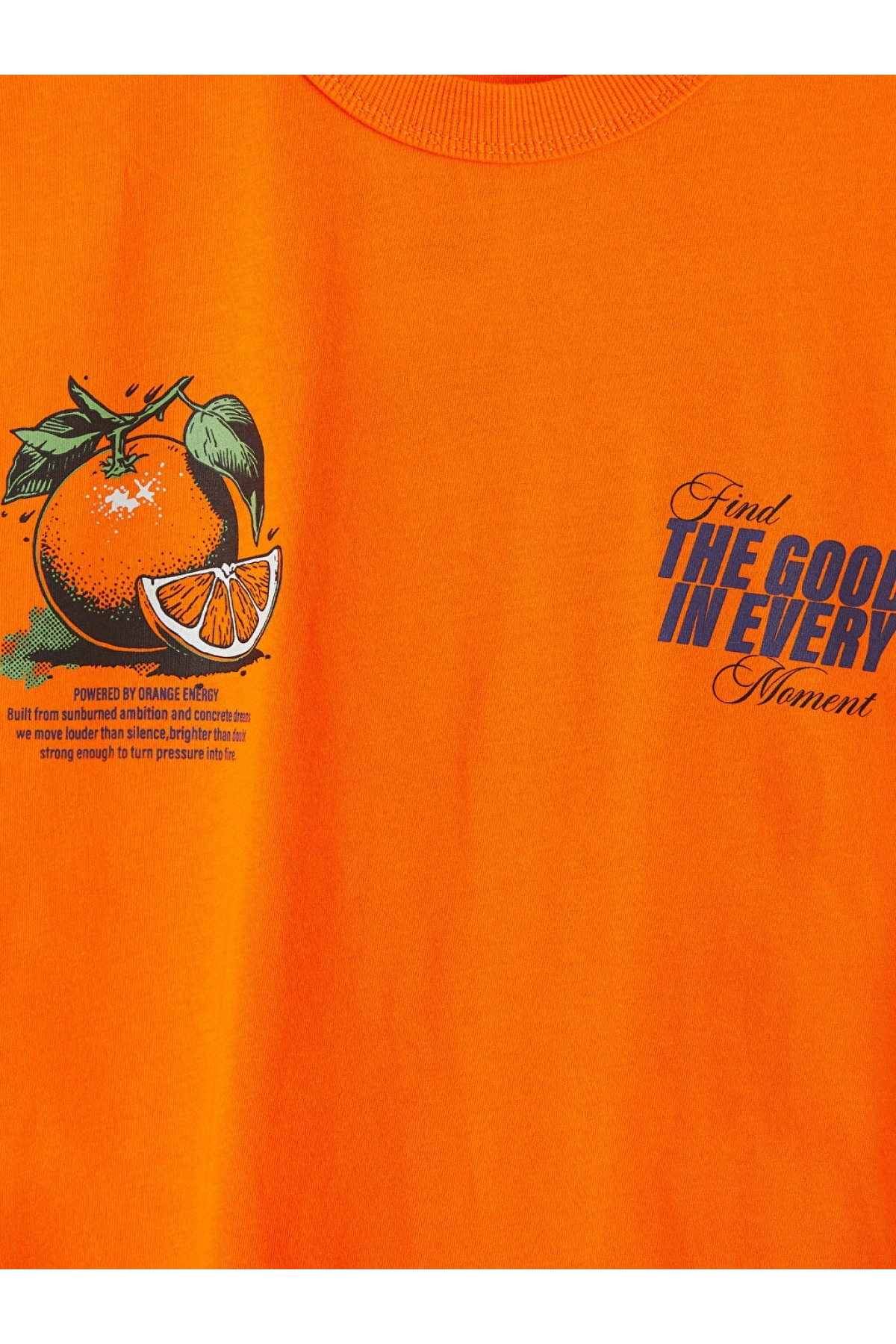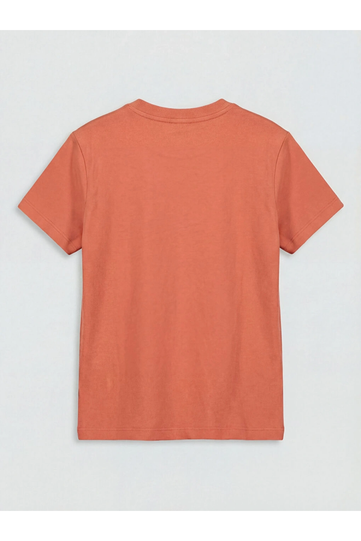 LCW Kids Turuncu Bisiklet Yaka Baskılı Erkek Çocuk Tişört