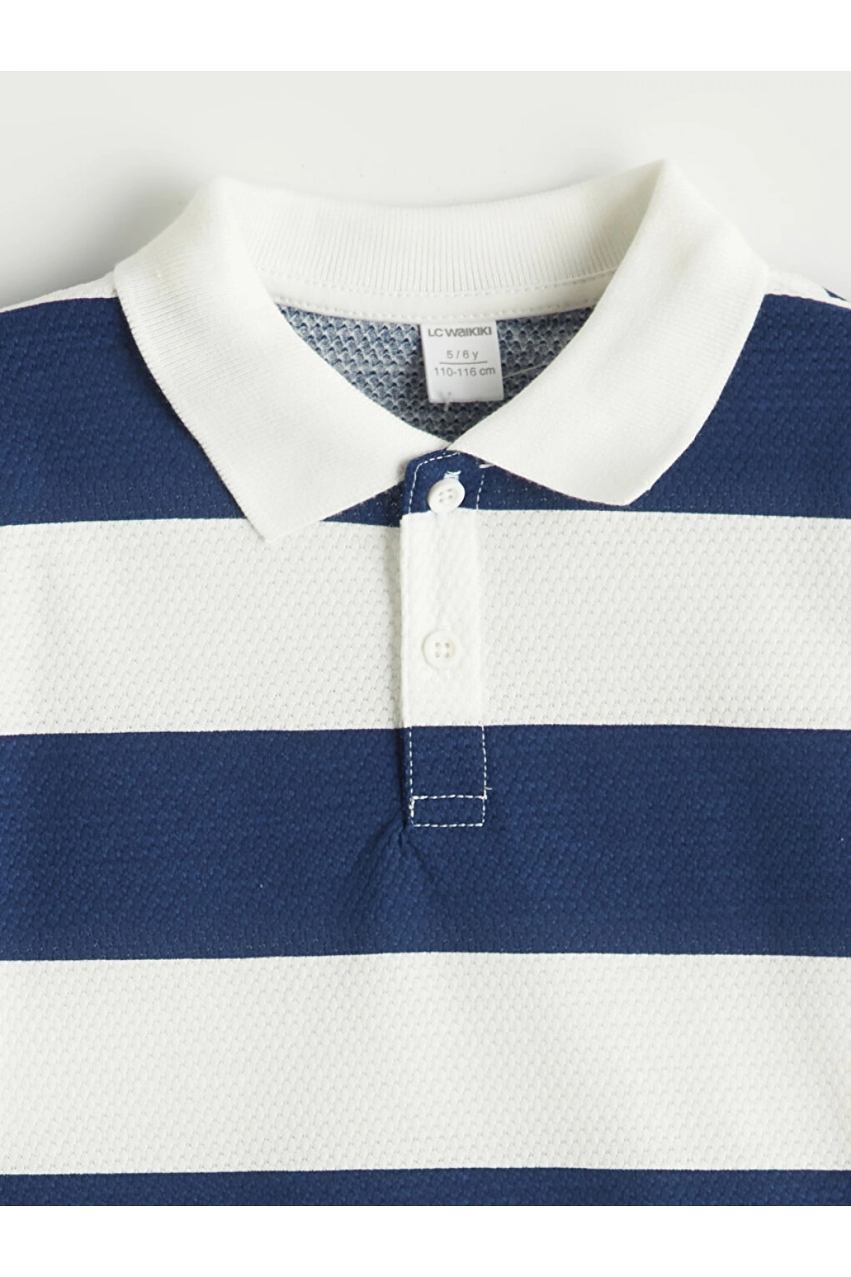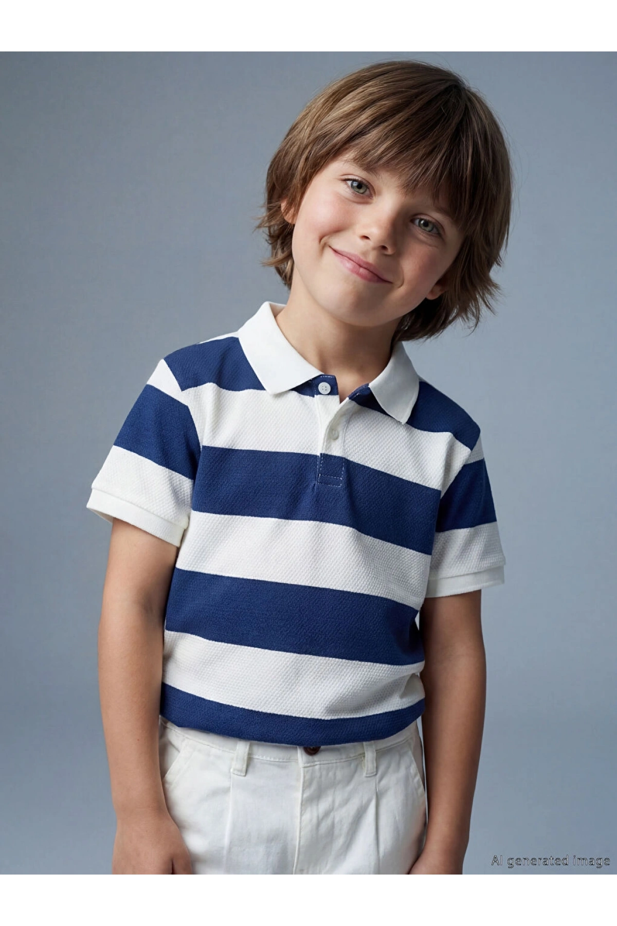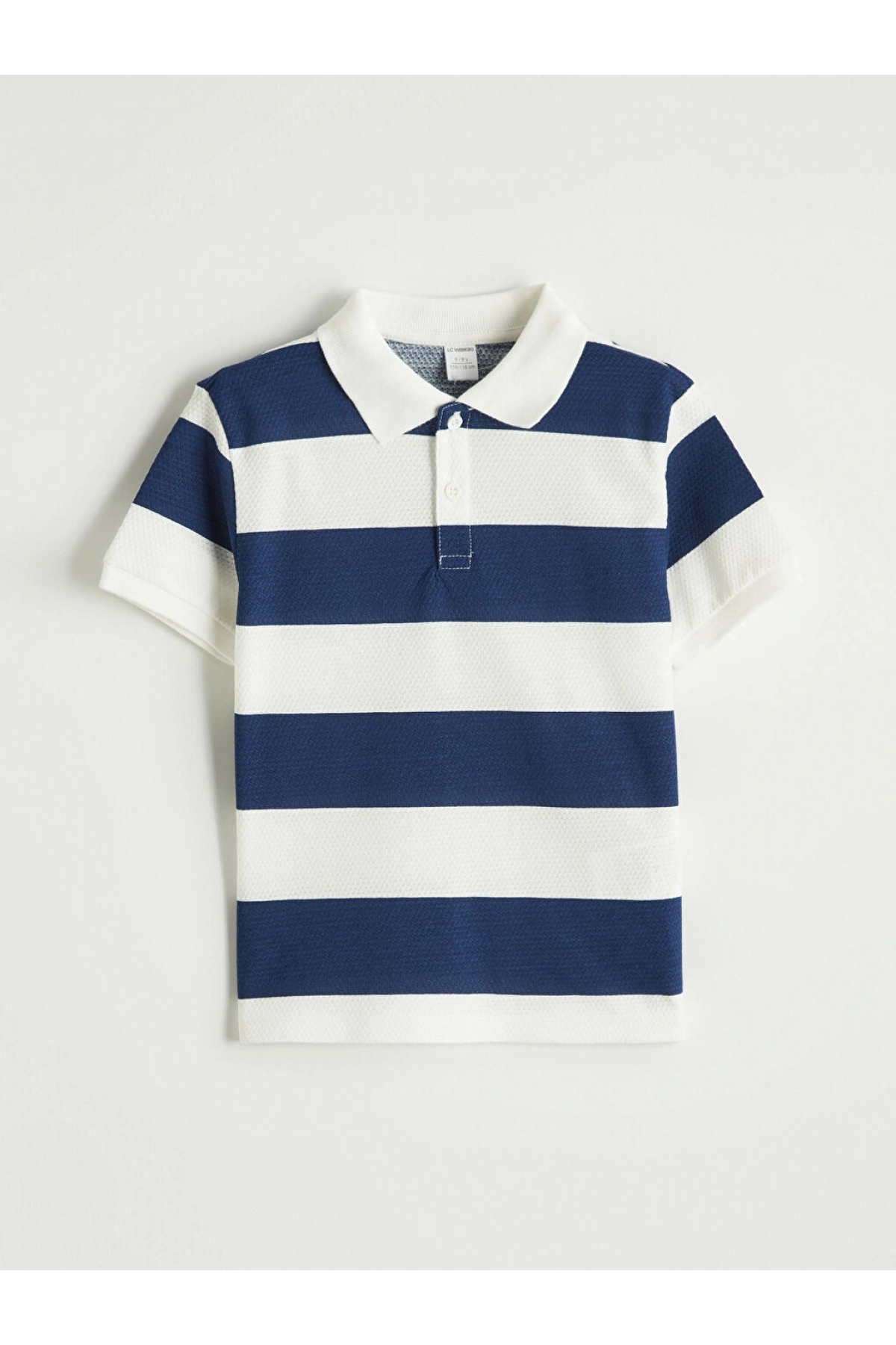 LCW Kids Indigo Polo Yaka Çizgili Erkek Çocuk Tişört