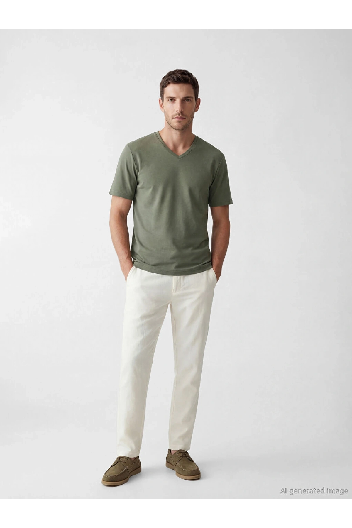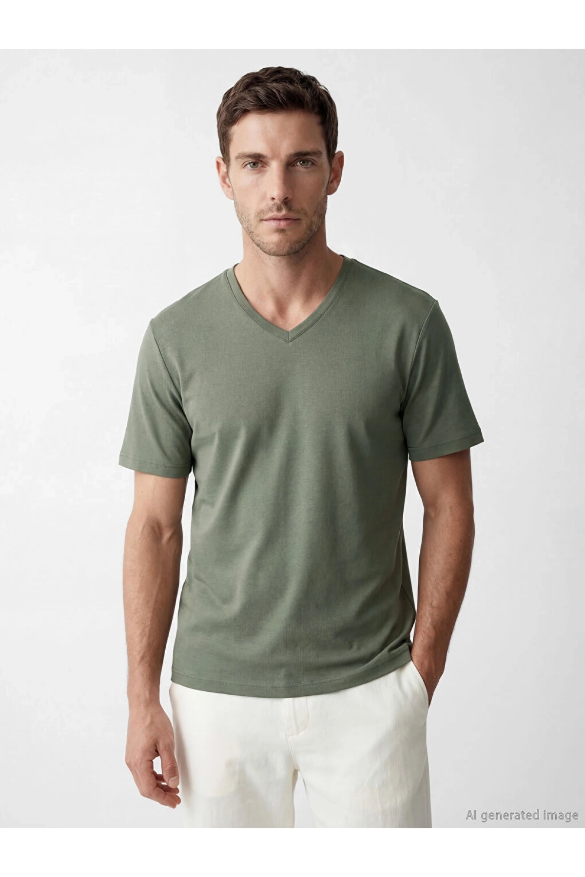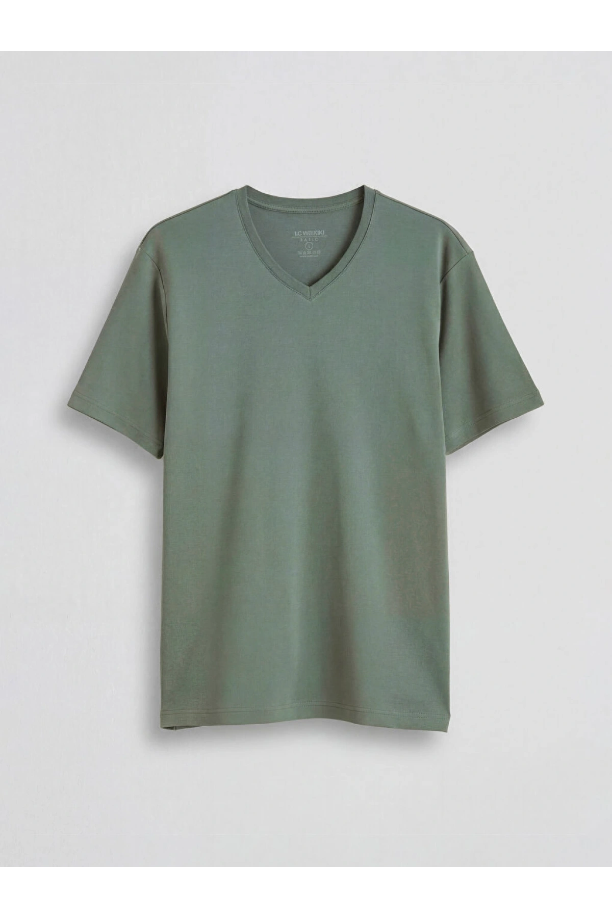 LCWAIKIKI Classic Yeşil V Yaka Erkek Tişört