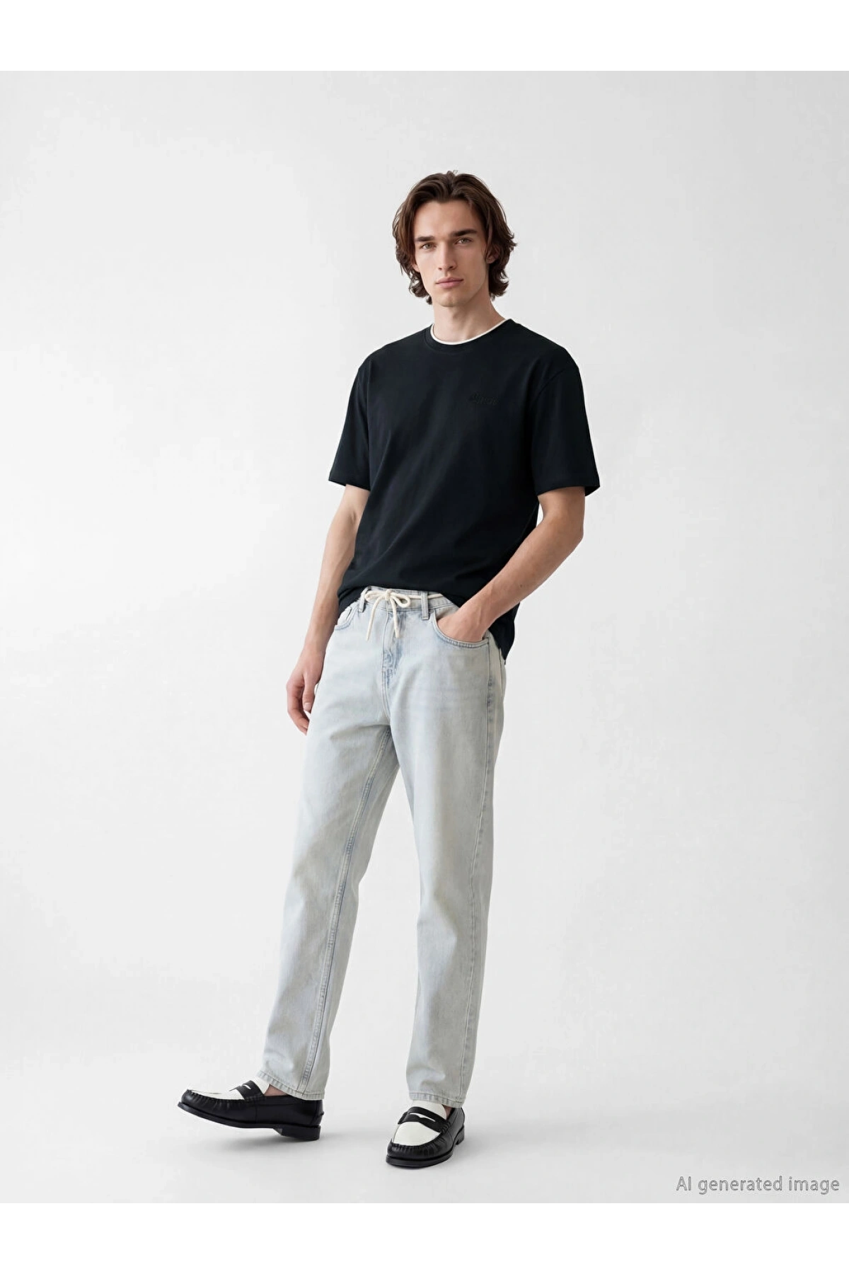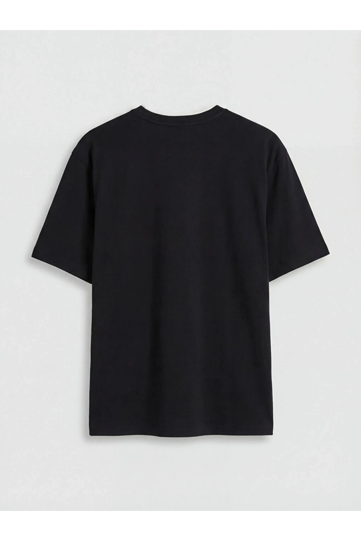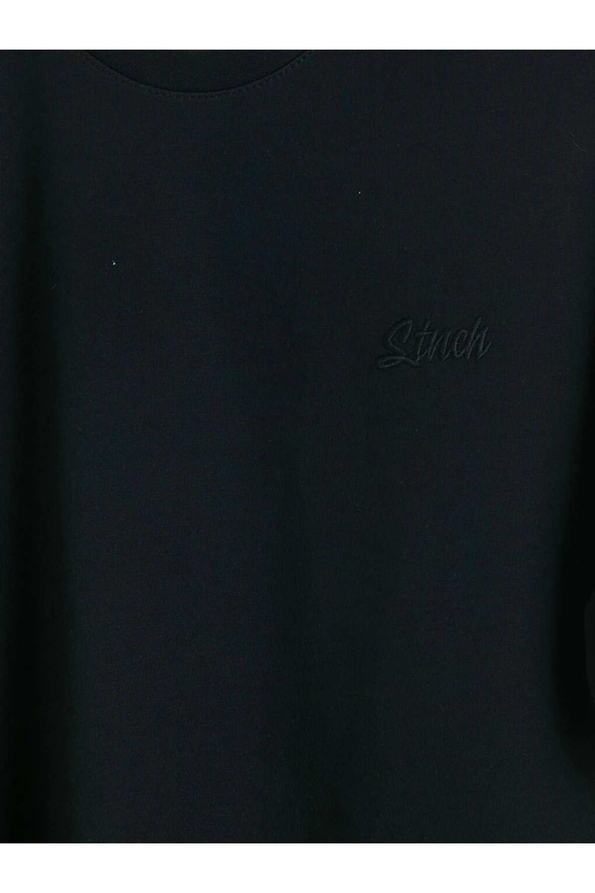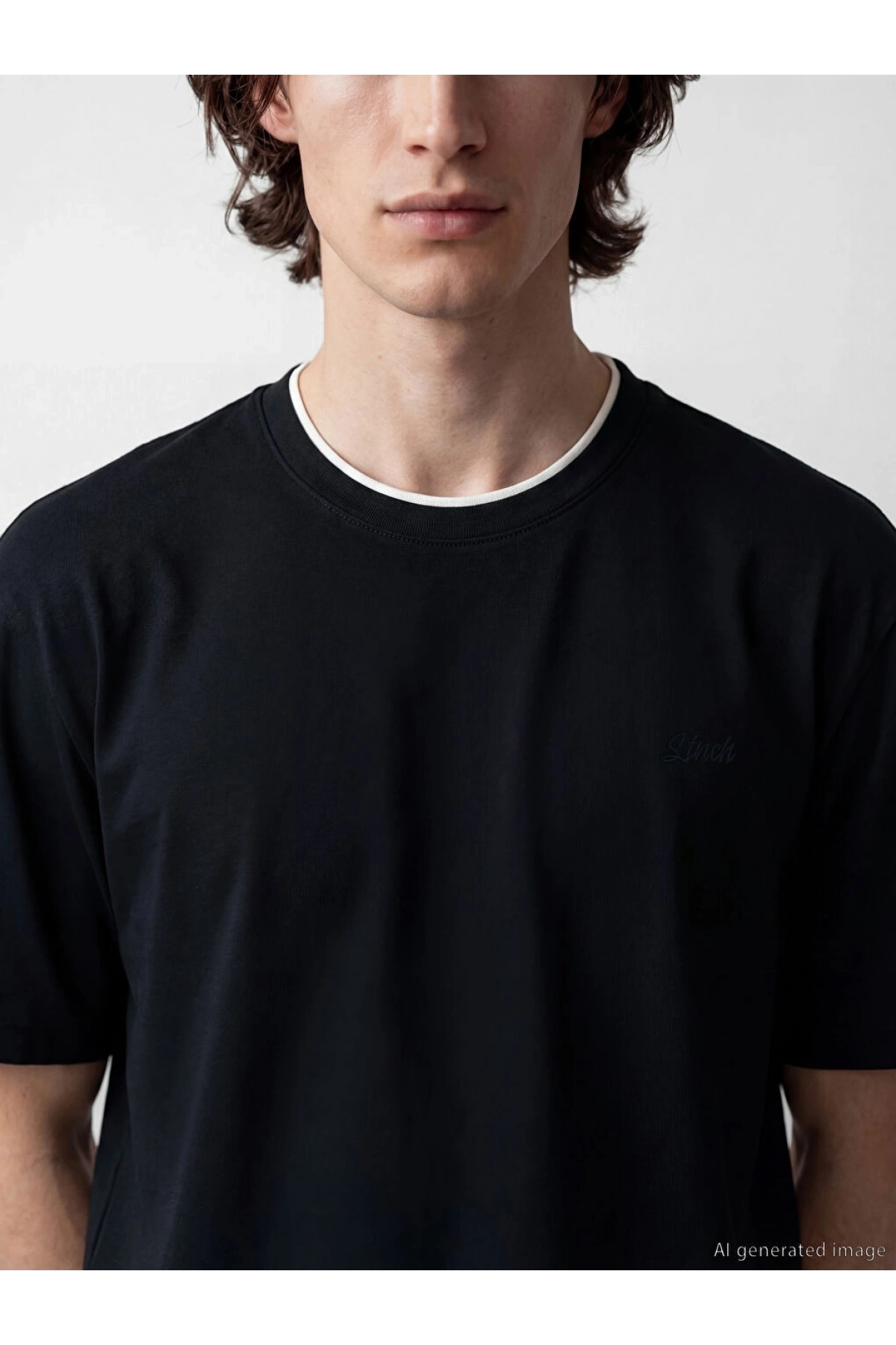 XSIDE Siyah Bisiklet Yaka Nakışlı Erkek Tişört