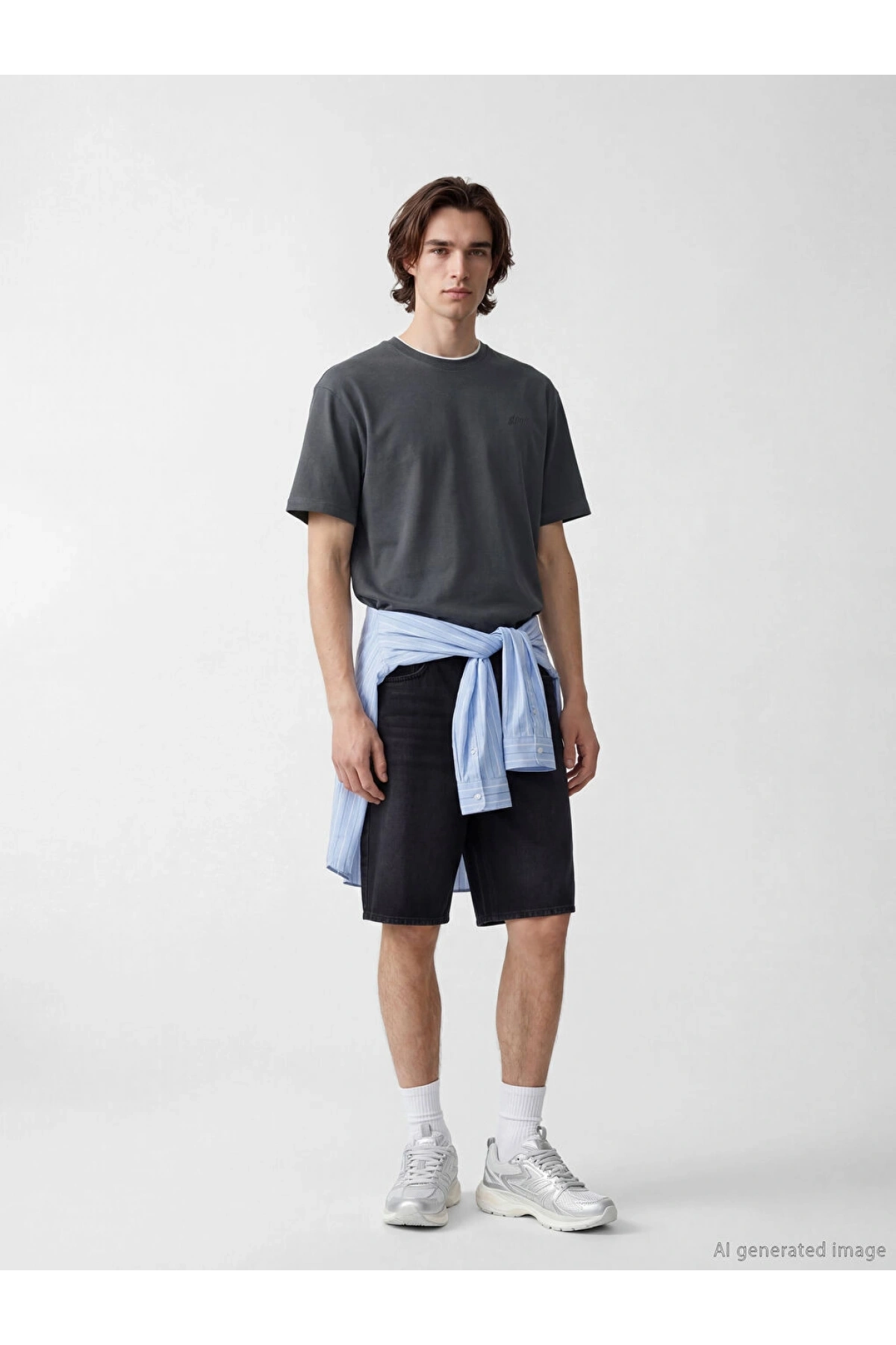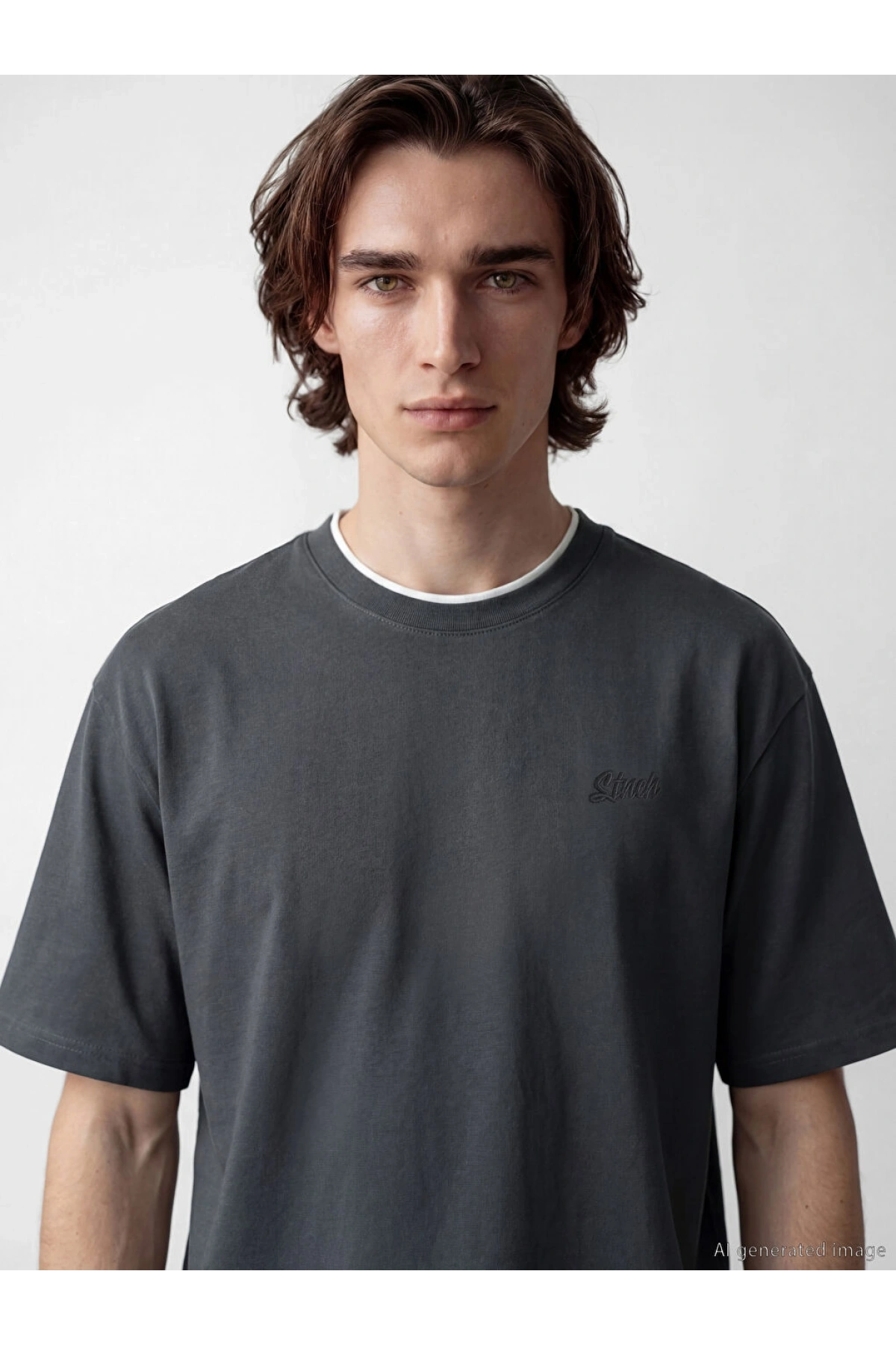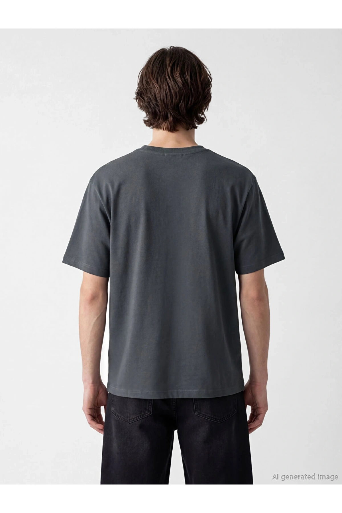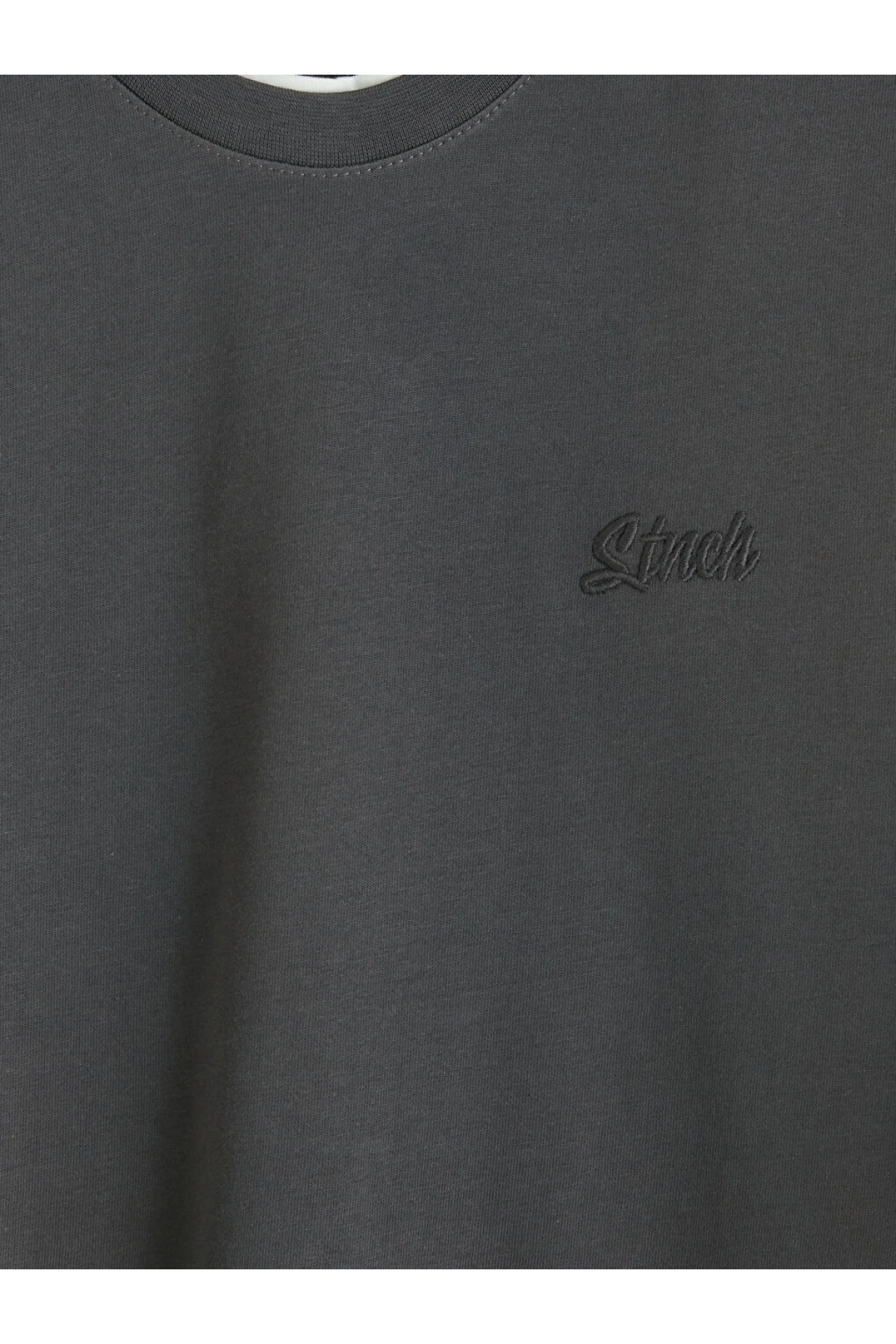 XSIDE Antrasit Bisiklet Yaka Nakışlı Erkek Tişört