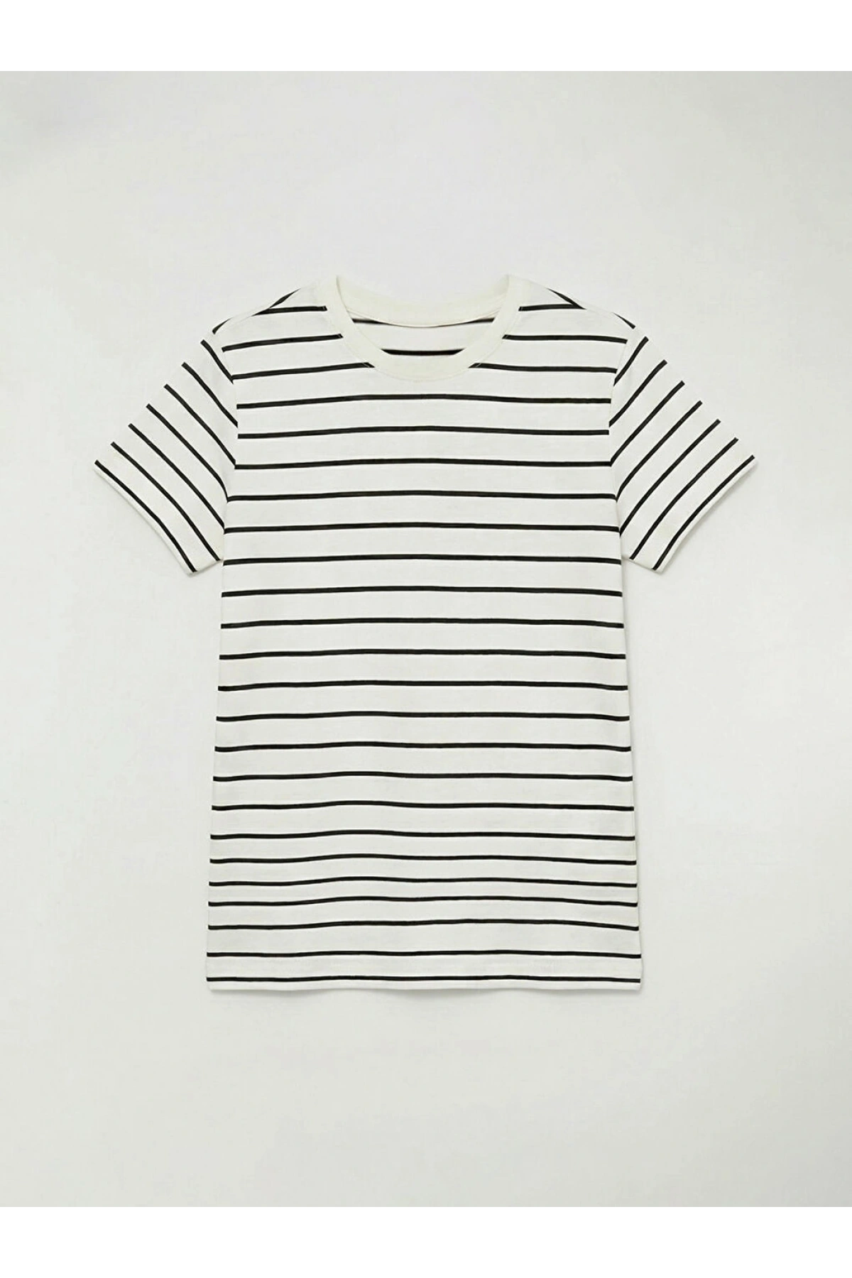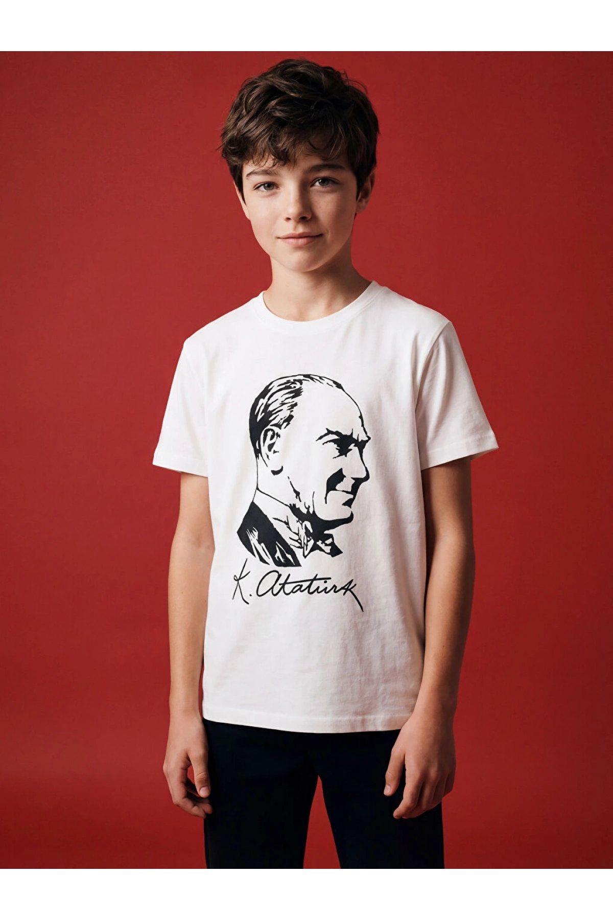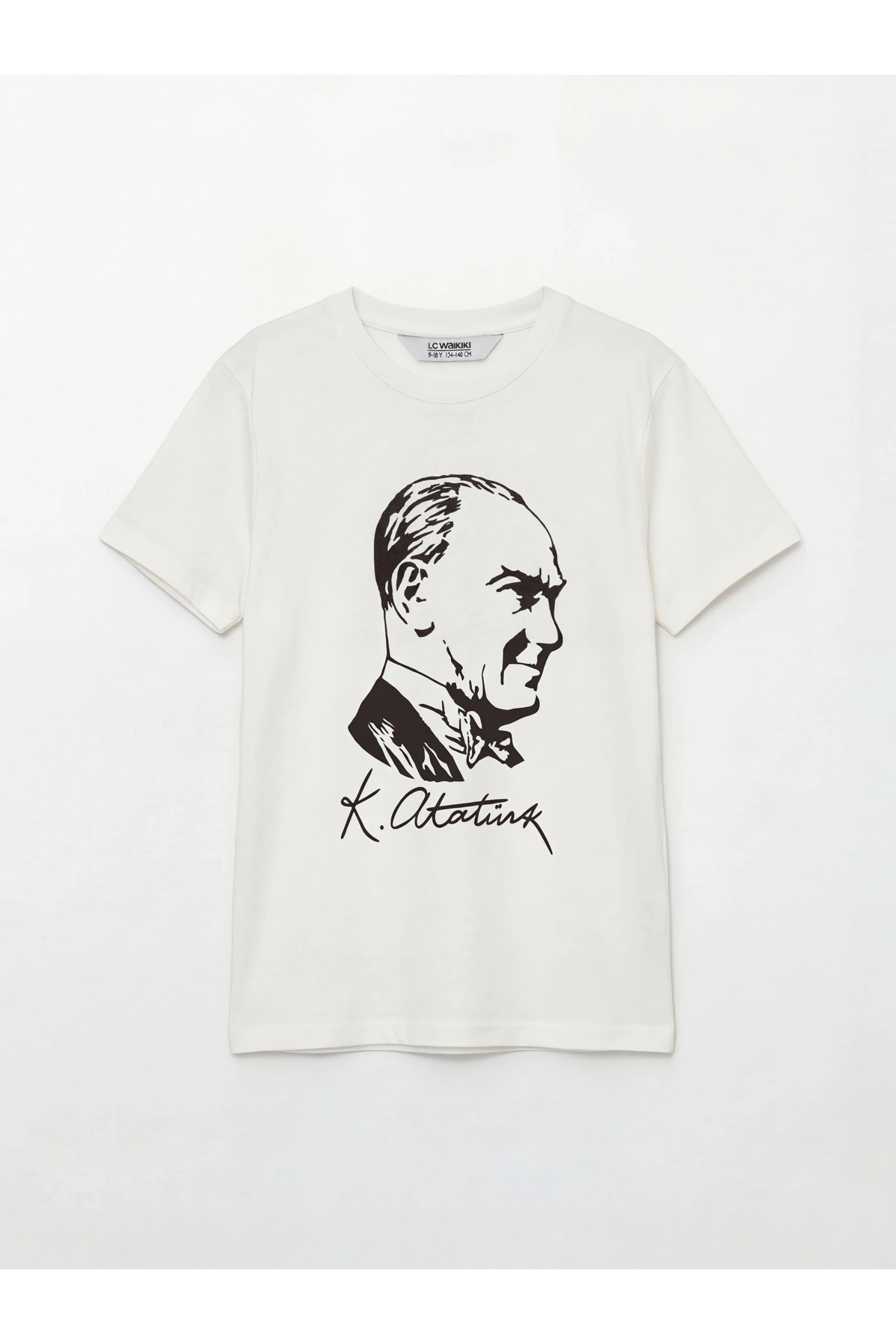 LCW Kids Ekru Bisiklet Yaka Atatürk Baskılı Erkek Çocuk Tişört