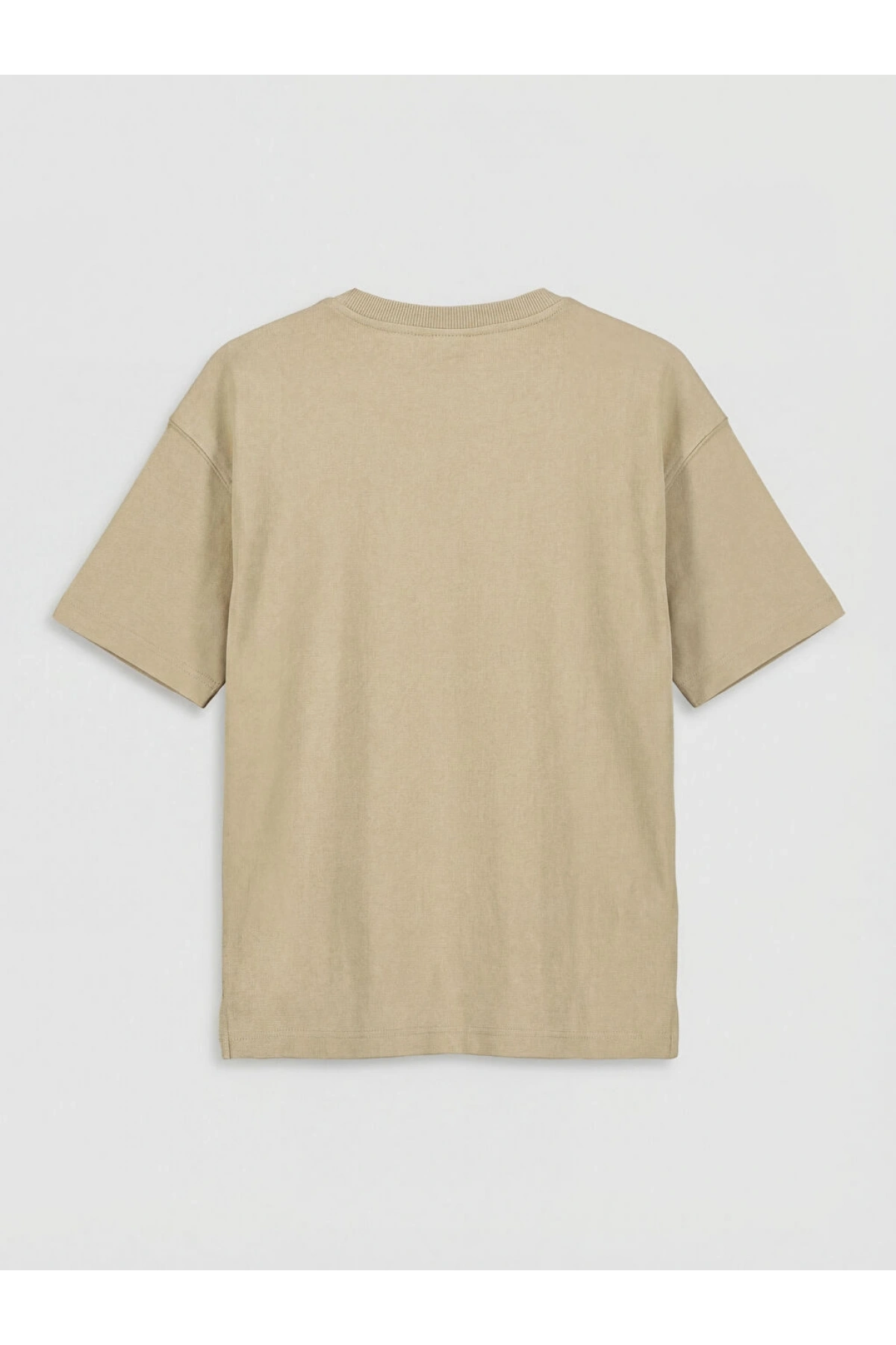 LCW Kids Bej Bisiklet Yaka Baskılı Erkek Çocuk Tişört