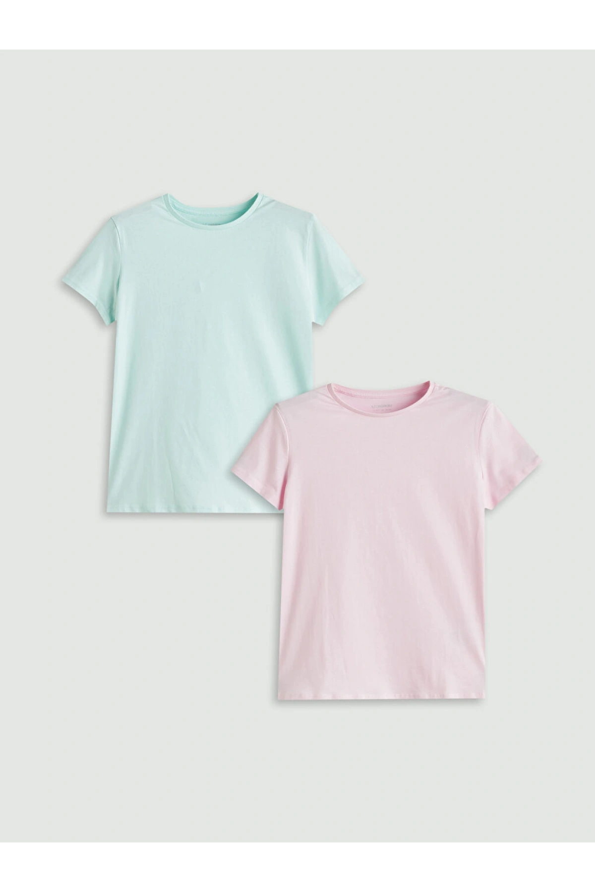 LCW Kids Pembe Bisiklet Yaka Kız Çocuk Tişört 2'li