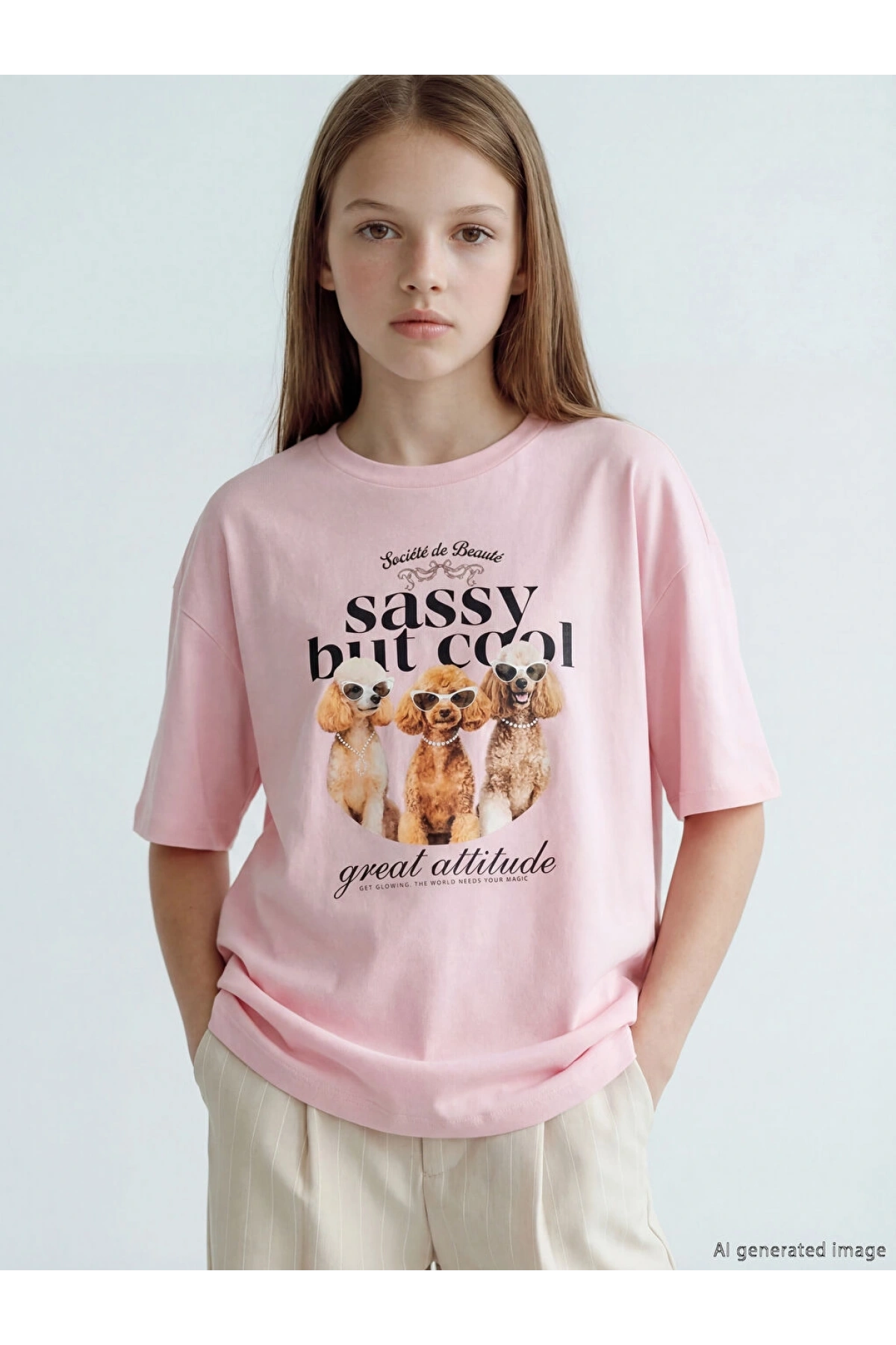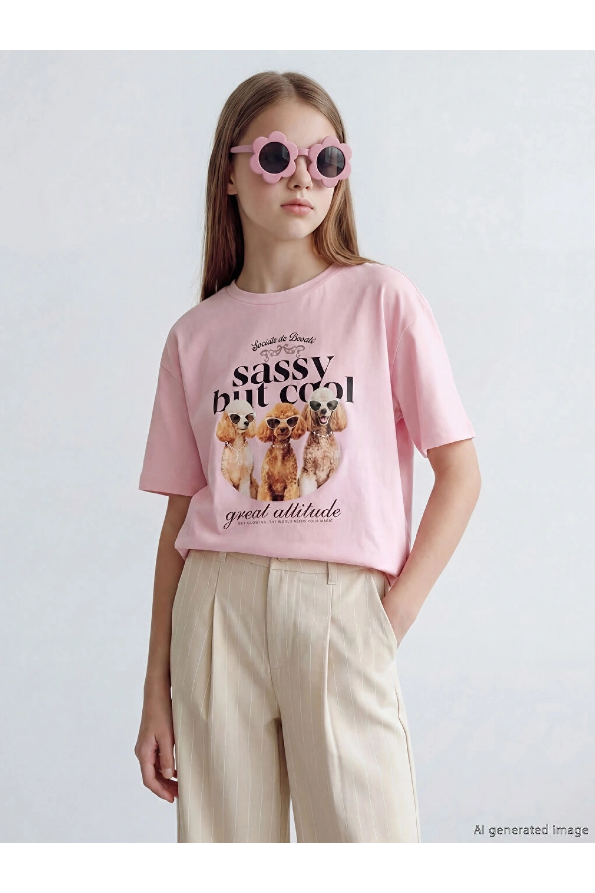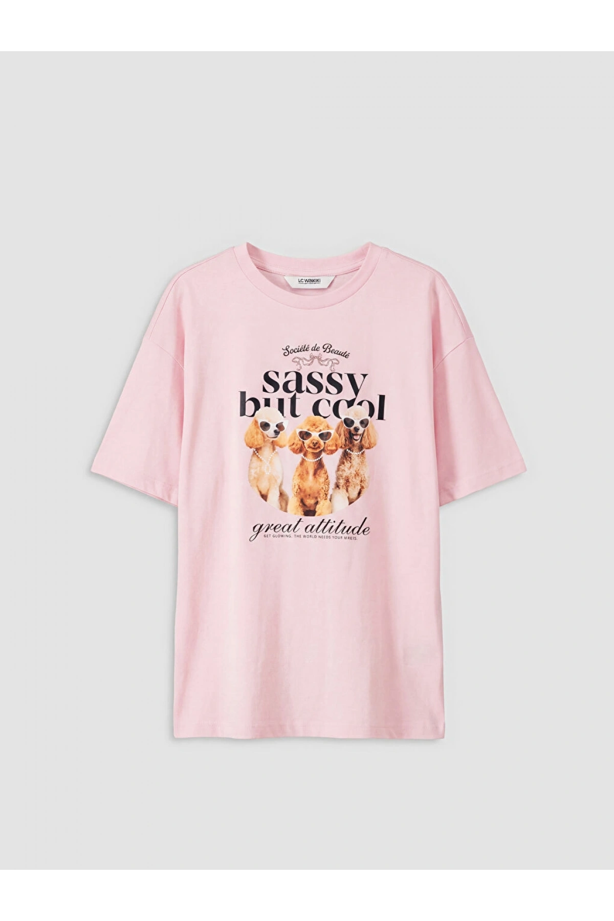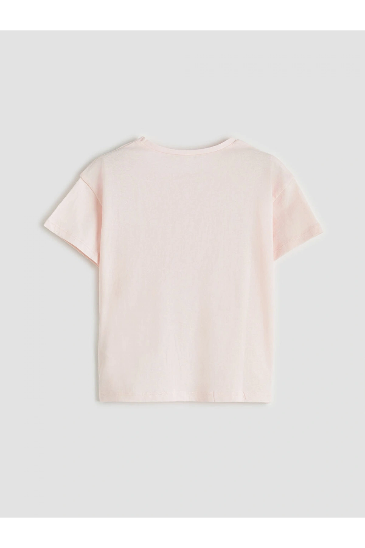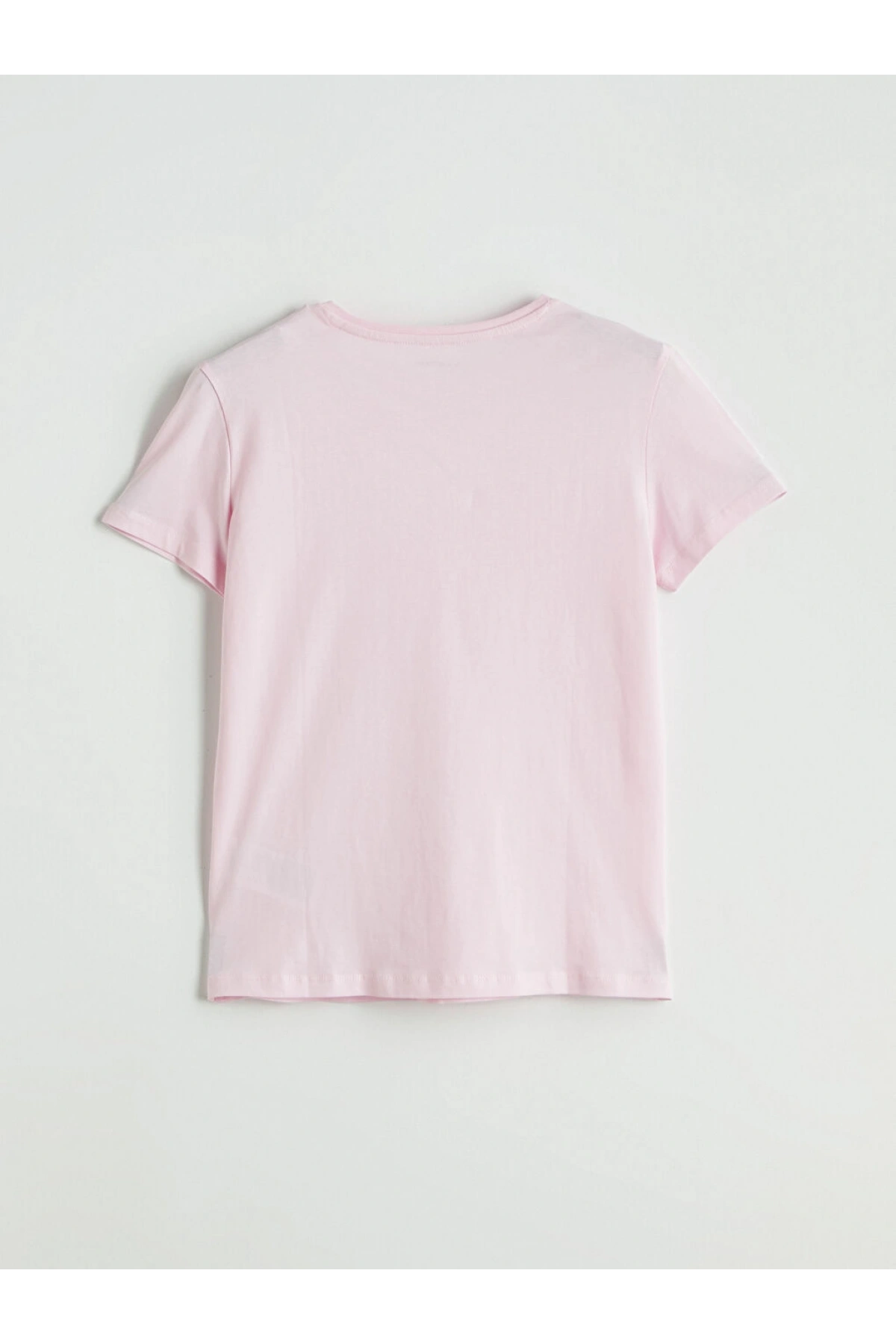LCW Kids Pembe Bisiklet Yaka Baskılı Kız Çocuk Tişört