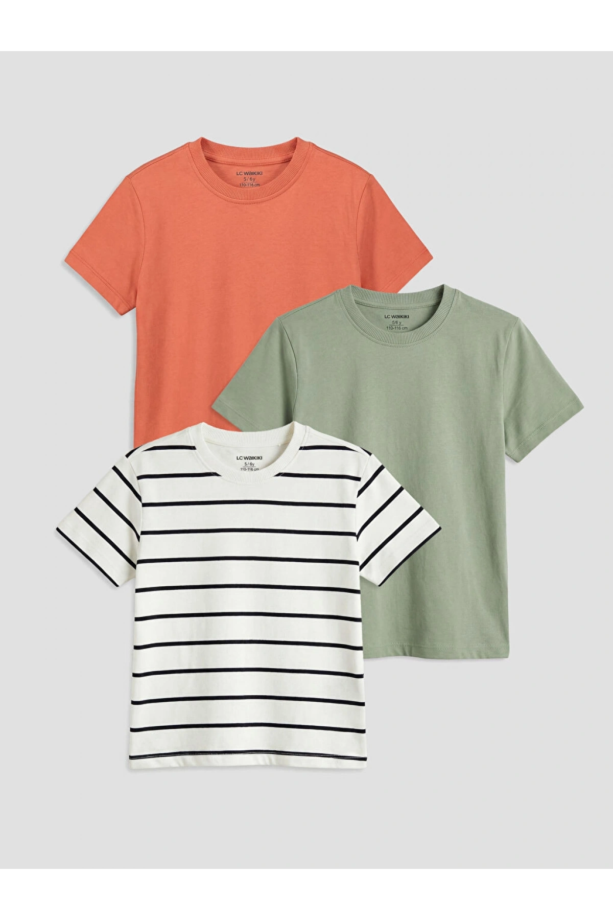 LCW Kids Yeşil Bisiklet Yaka Erkek Çocuk Tişört 3'lü