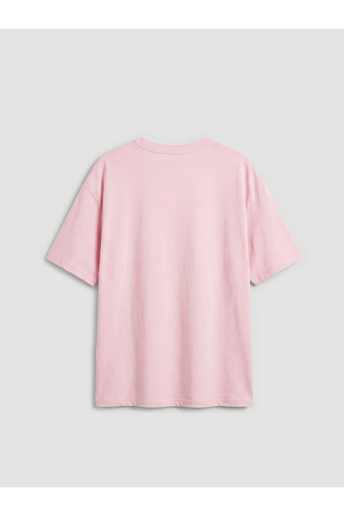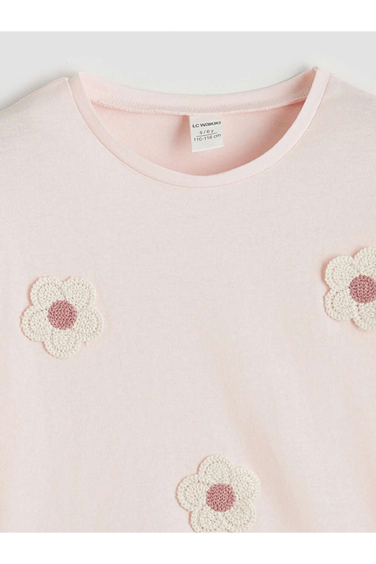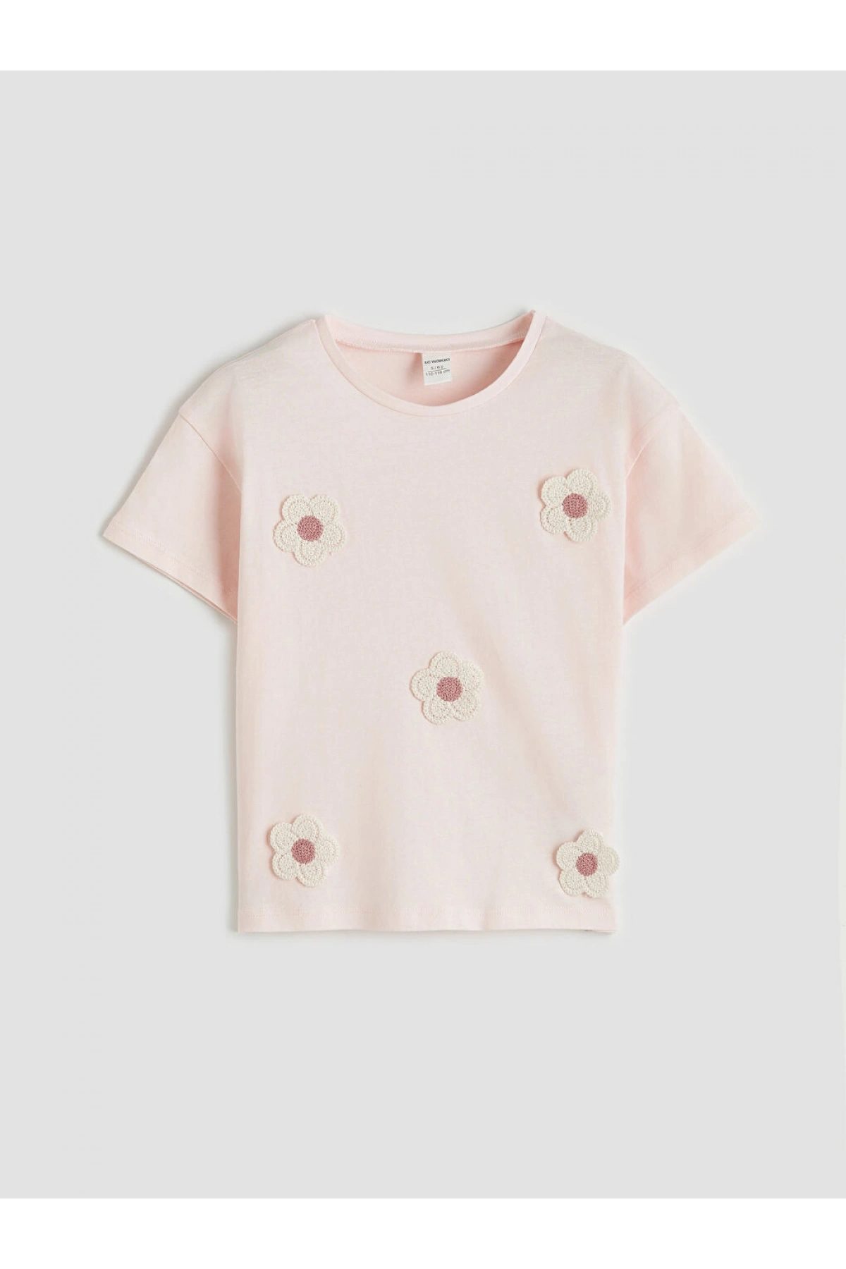 LCW Kids Pembe Bisiklet Yaka Nakışlı Kız Çocuk Tişört