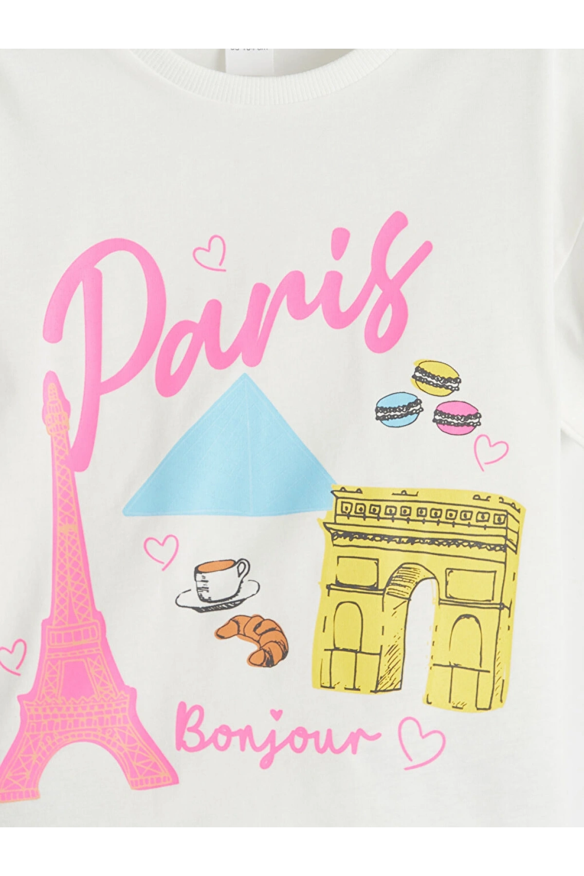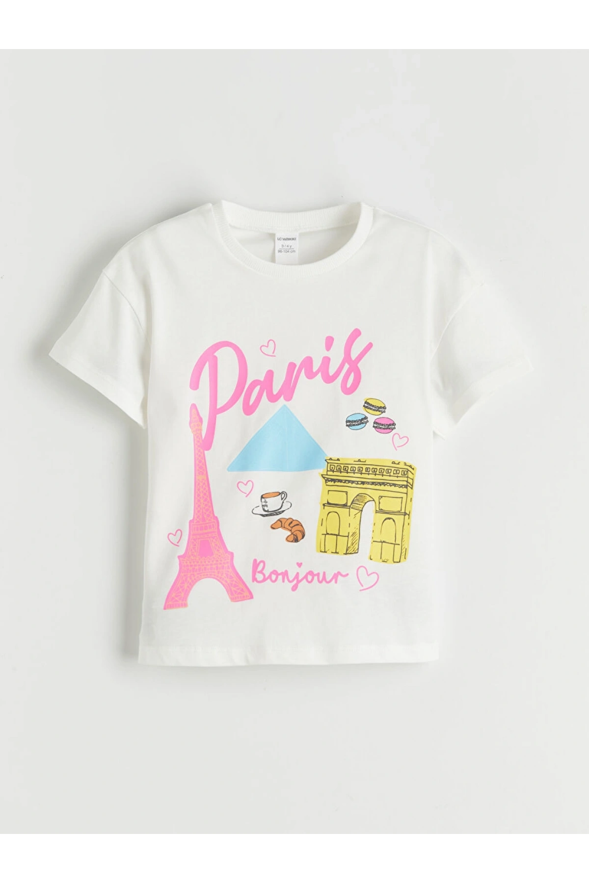 LCW Kids Ekru Paris Baskılı Kız Çocuk Tişört