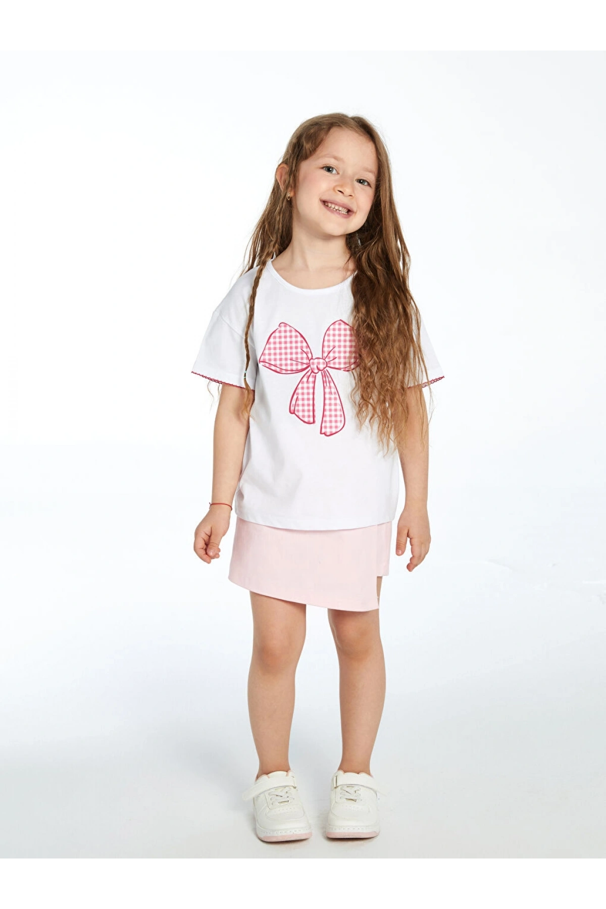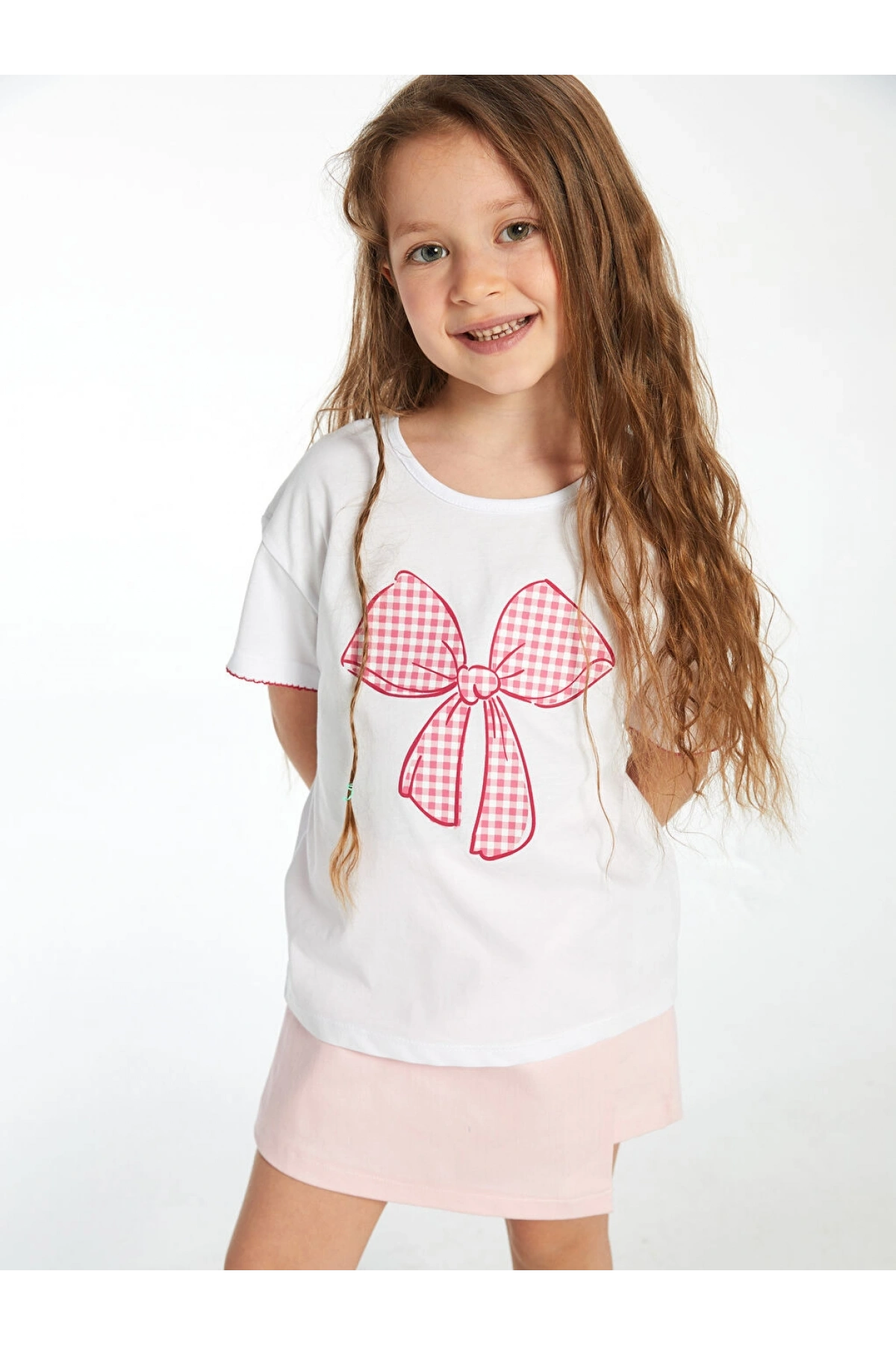LC Waikiki LCW Kids Ekru Bisiklet Yaka Kurdele Baskılı Kız Çocuk Tişört