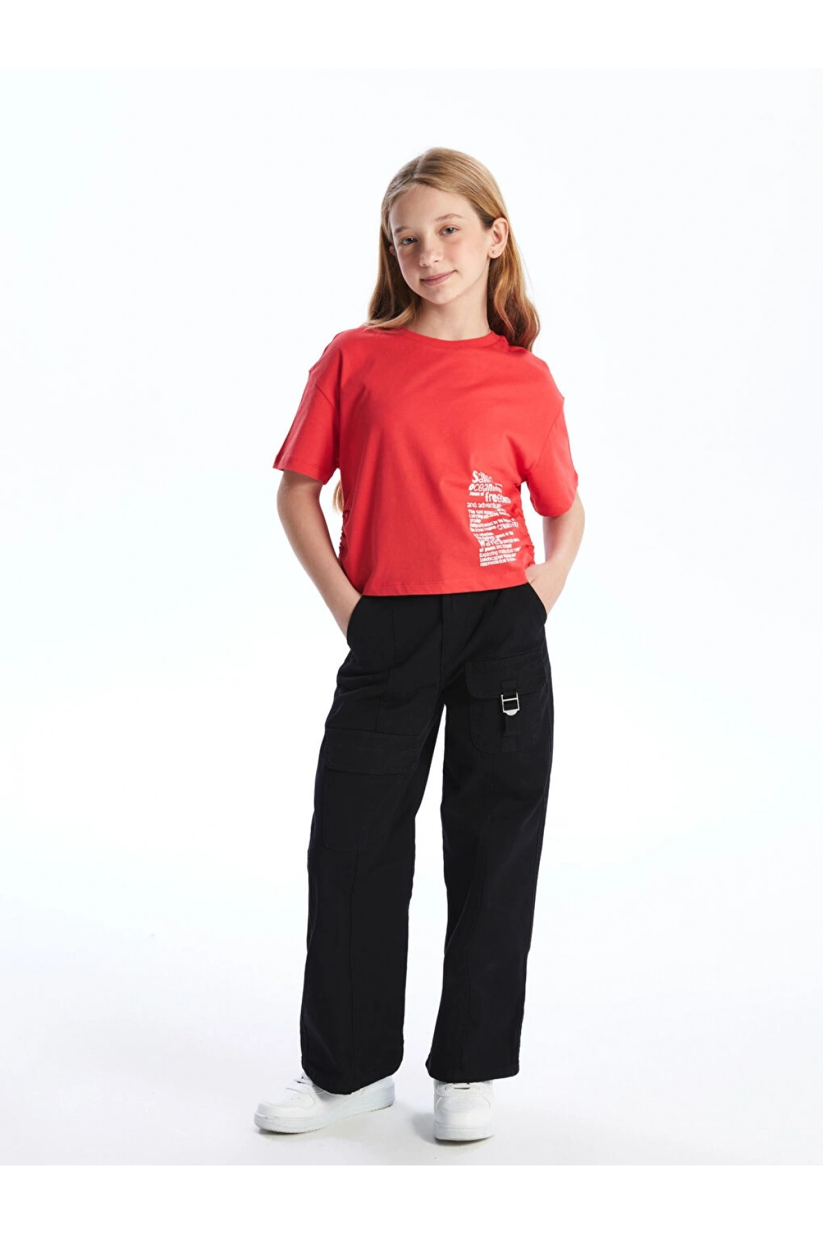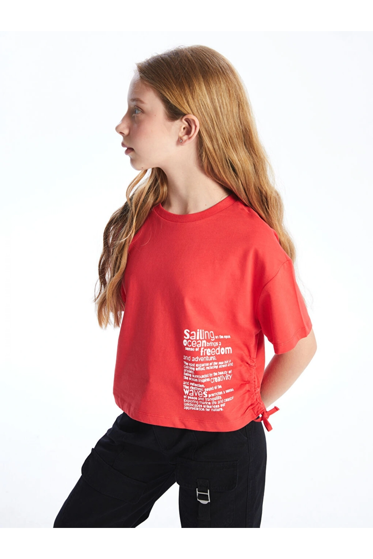 LC Waikiki Bisiklet Yaka Kız Çocuk Crop Tişört