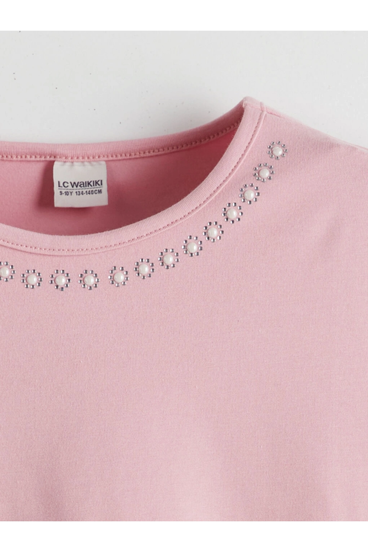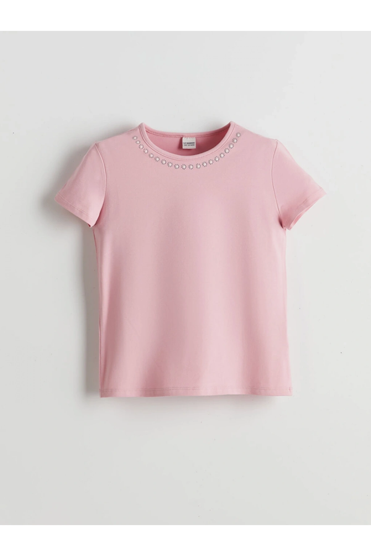 LC Waikiki LCW Kids Bisiklet Yaka Taşlı Kız Çocuk Tişört