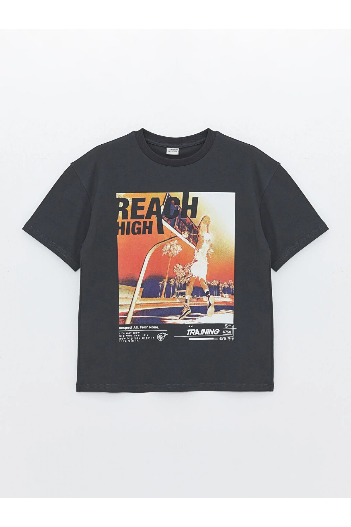 LCW Kids Antrasit Oversize Bisiklet Yaka Erkek Çocuk Tişört